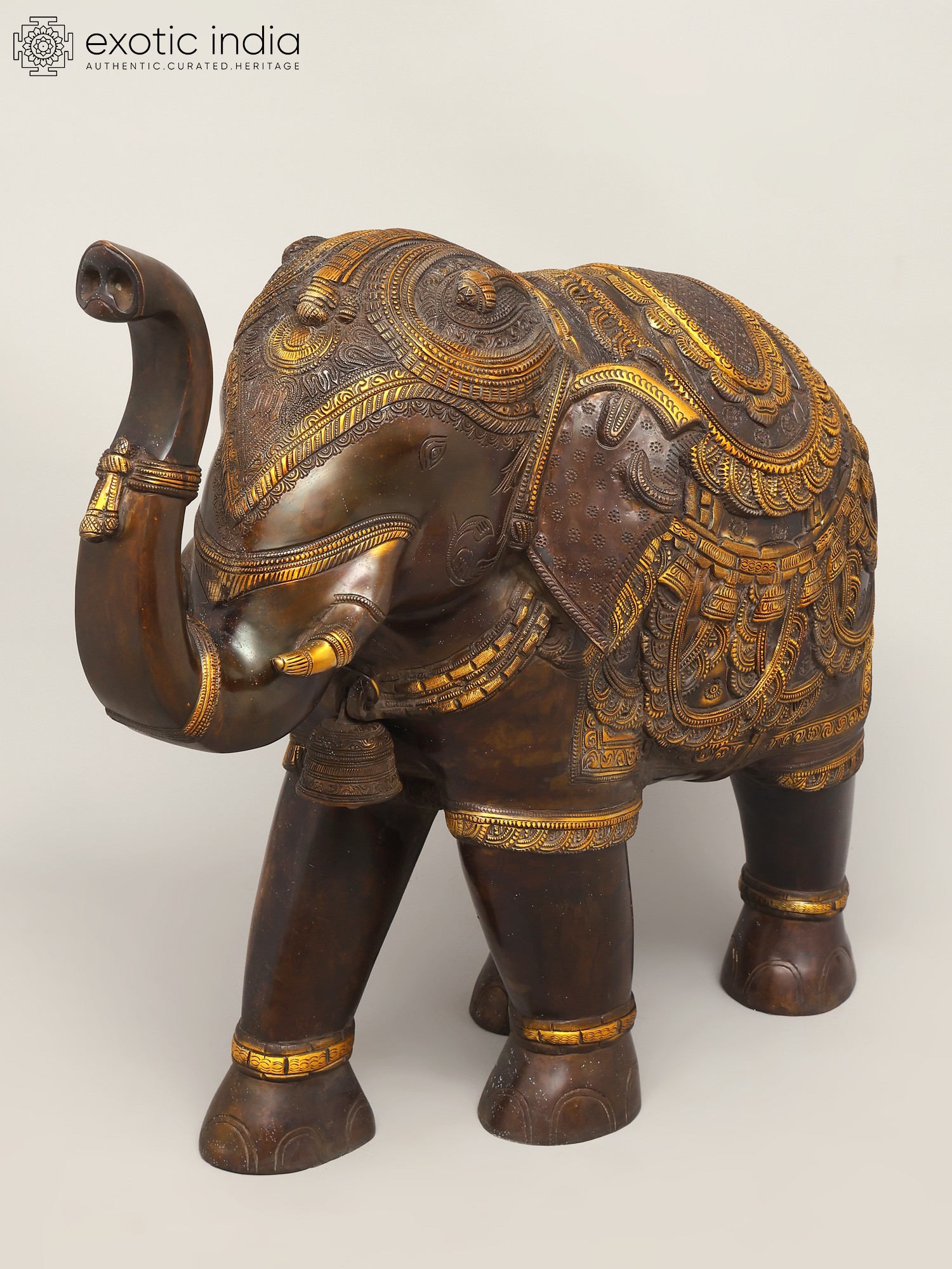 14" Pair of Elephant Design Urli Stands | Madhuchista Vidhana (Lost-Wax) | Panchaloha Bronze from Swamimalai
