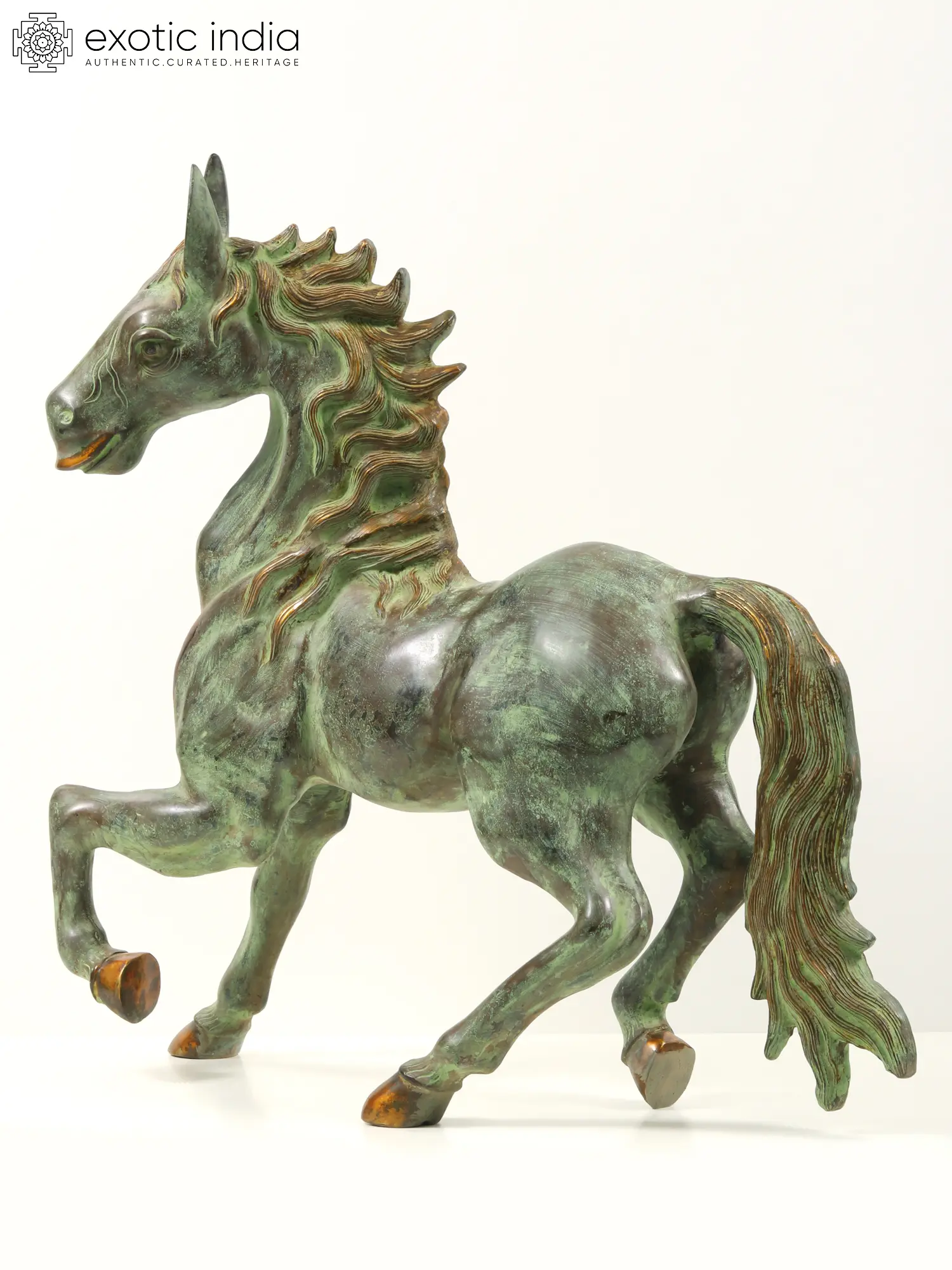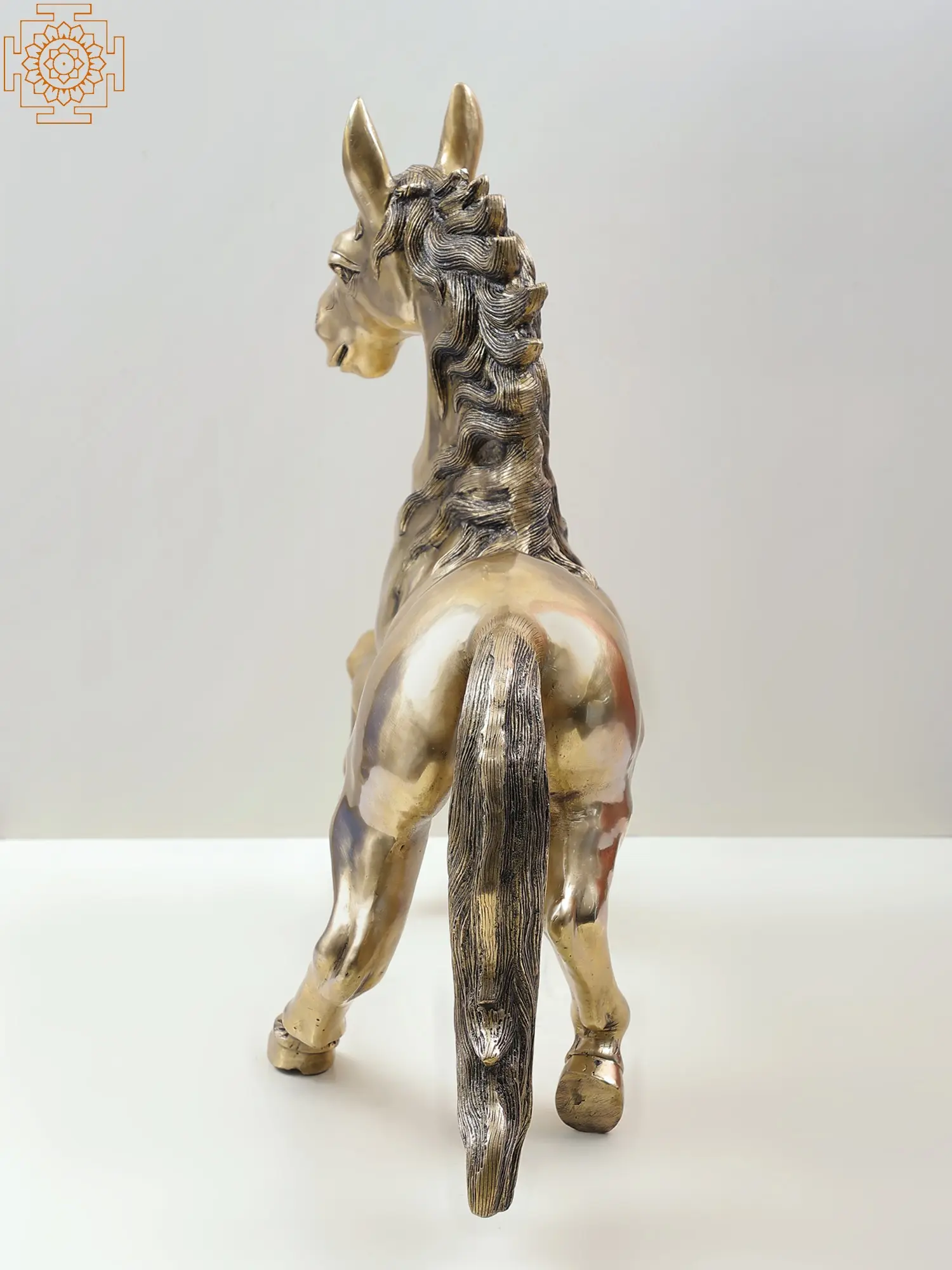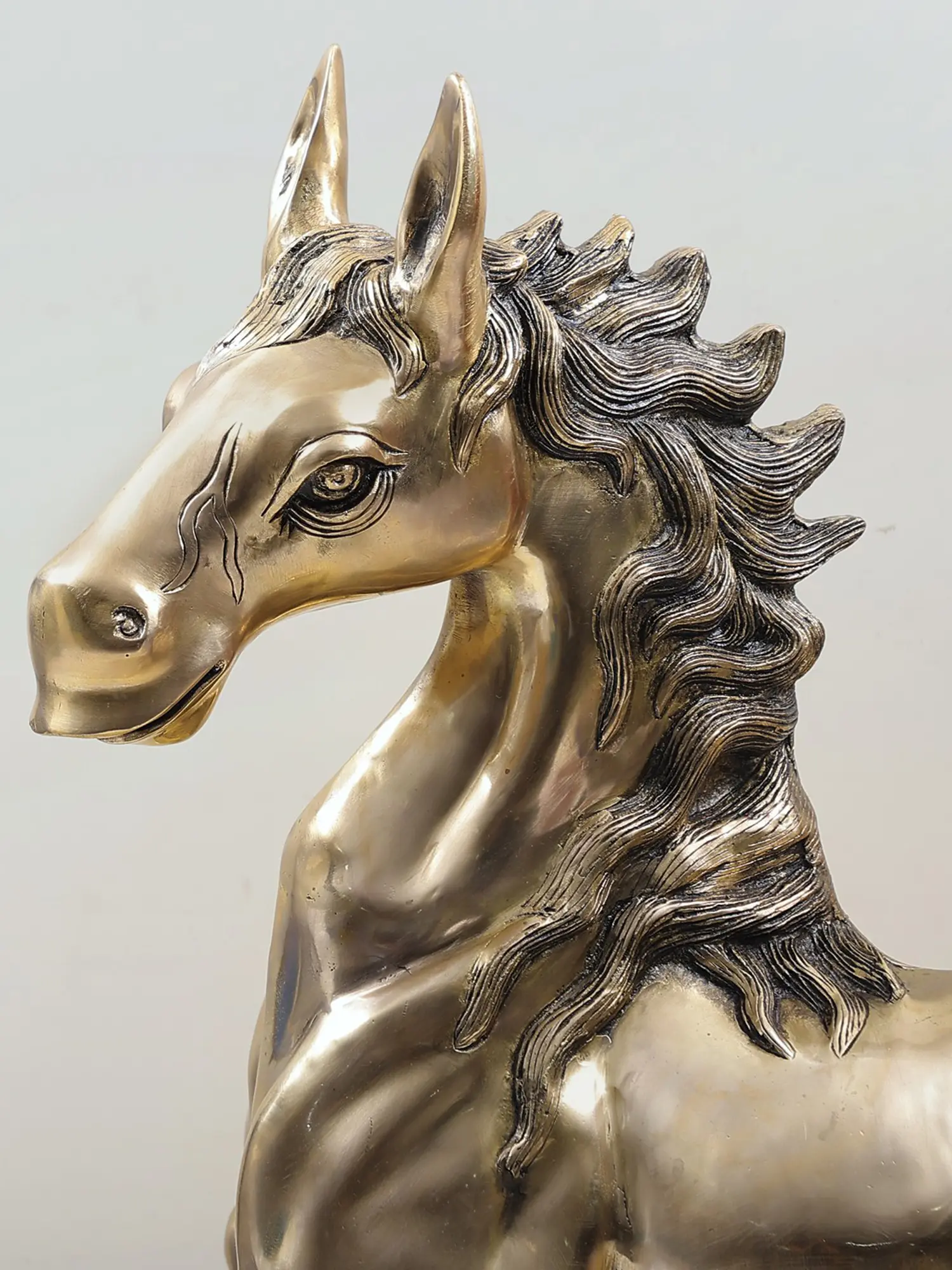 Forged in brass, this decorative piece emanates an eternal aura, adding a touch of splendour and class to your decor, inviting admiration and awe from all who behold it. Let this stunning horse gallop into your home and ignite your imagination with its timeless allure.
