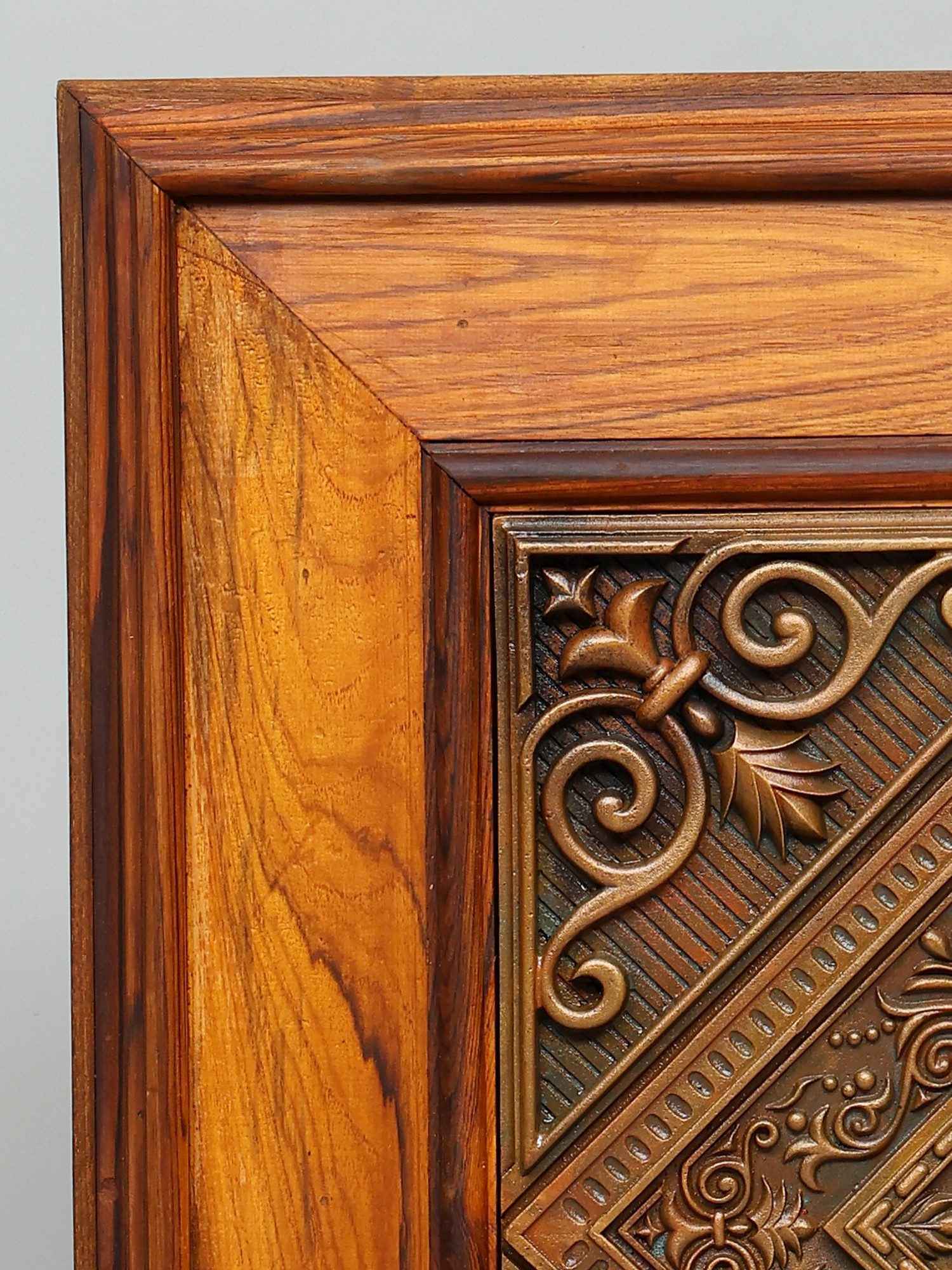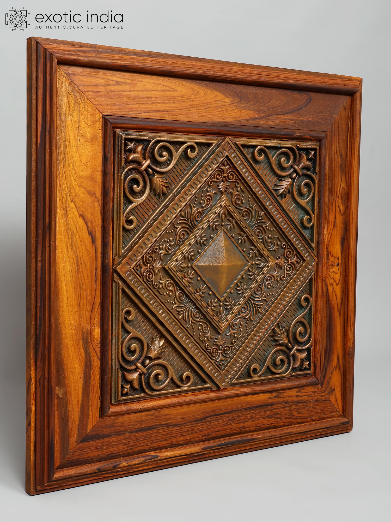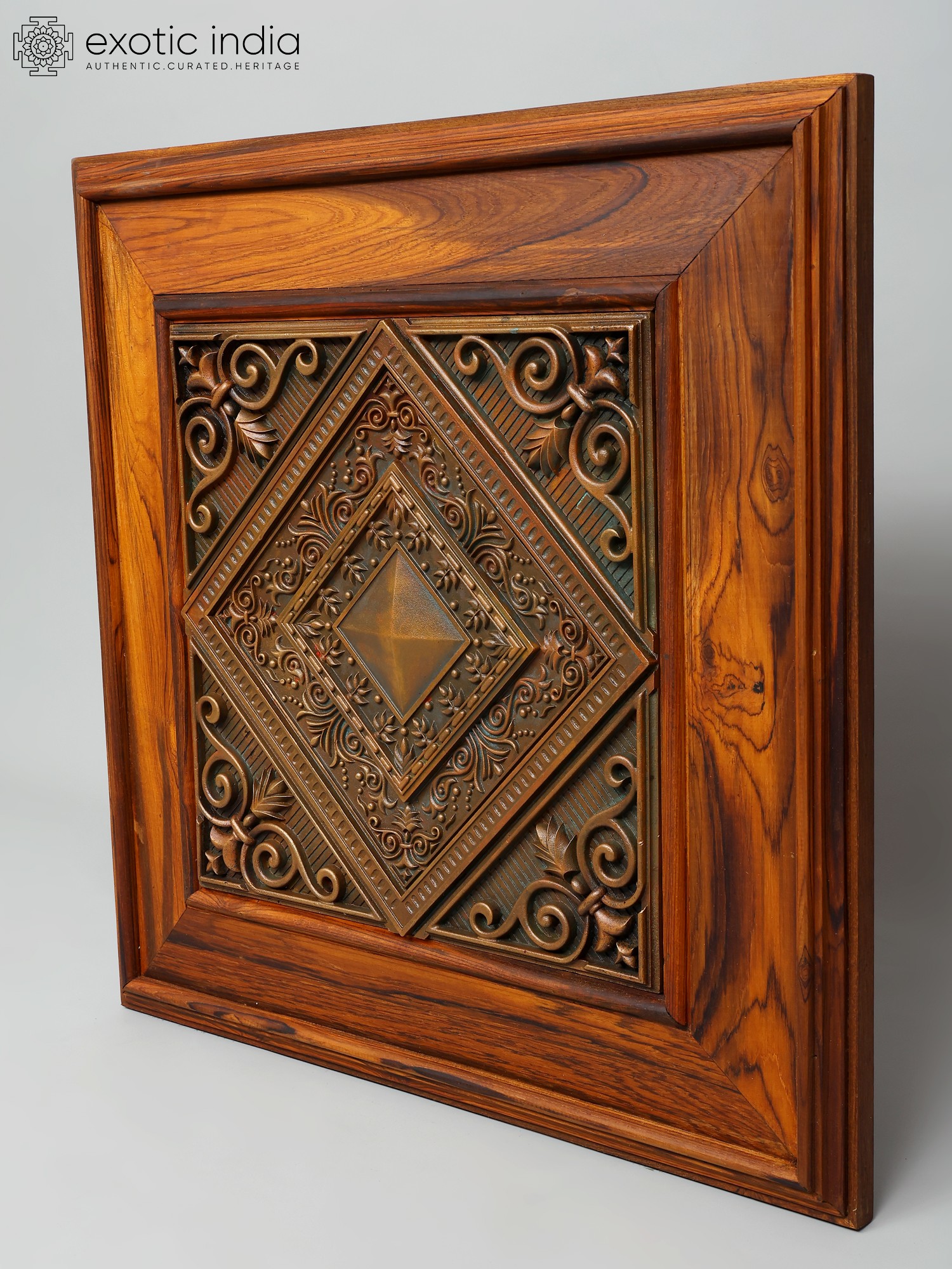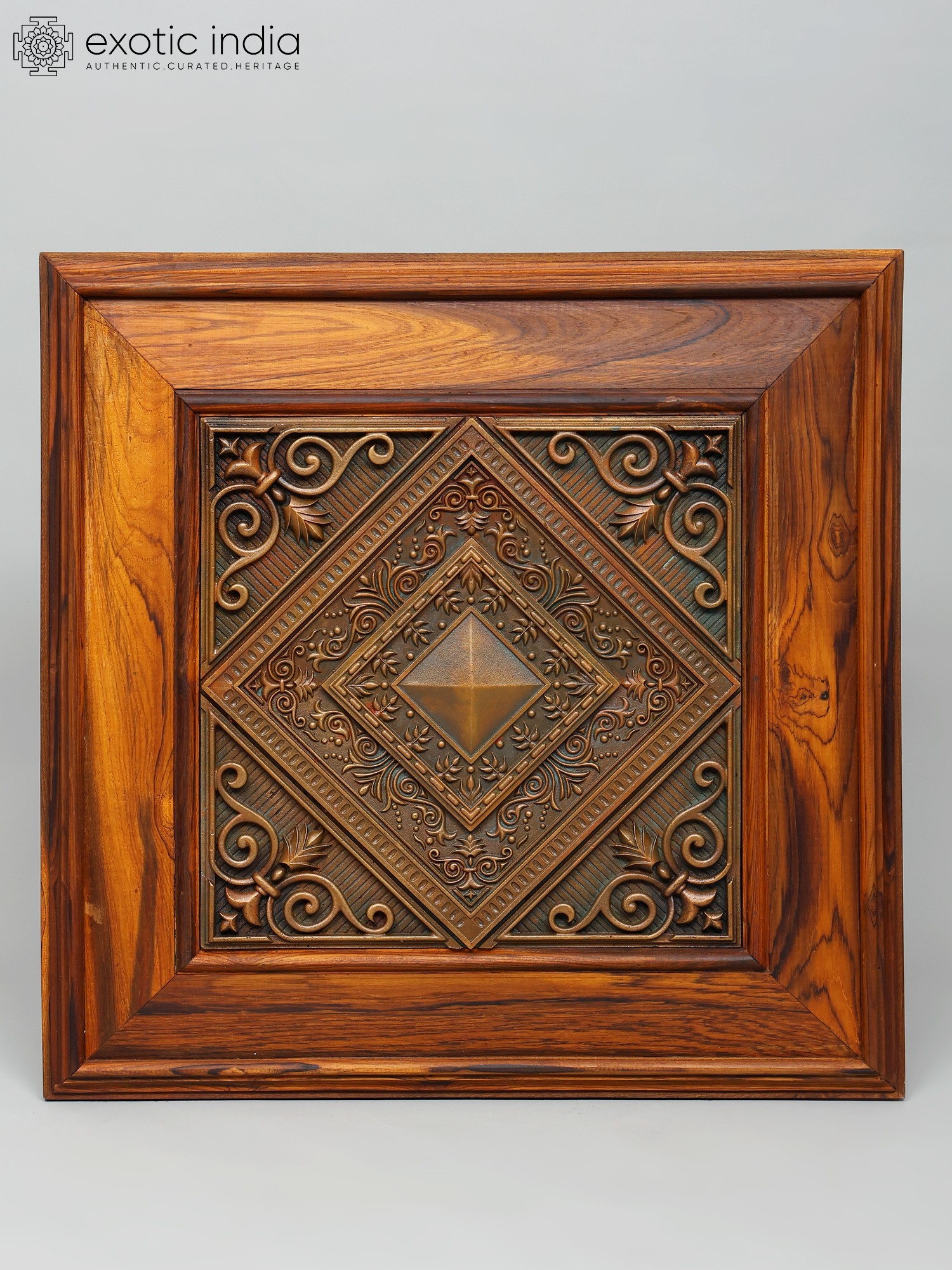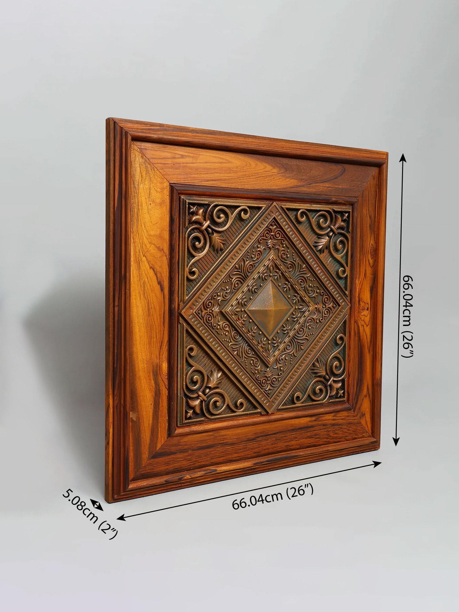 17" Wood Framed Designer Brass Urli | Wall Hanging