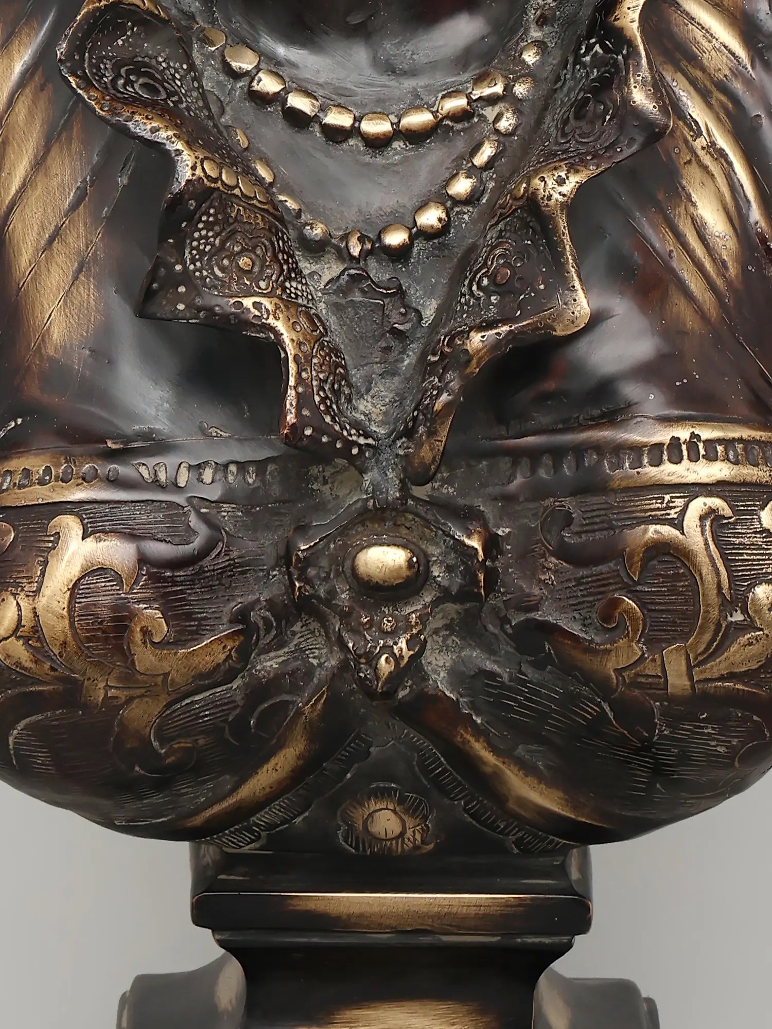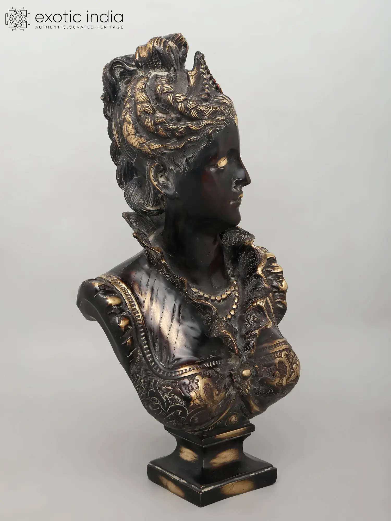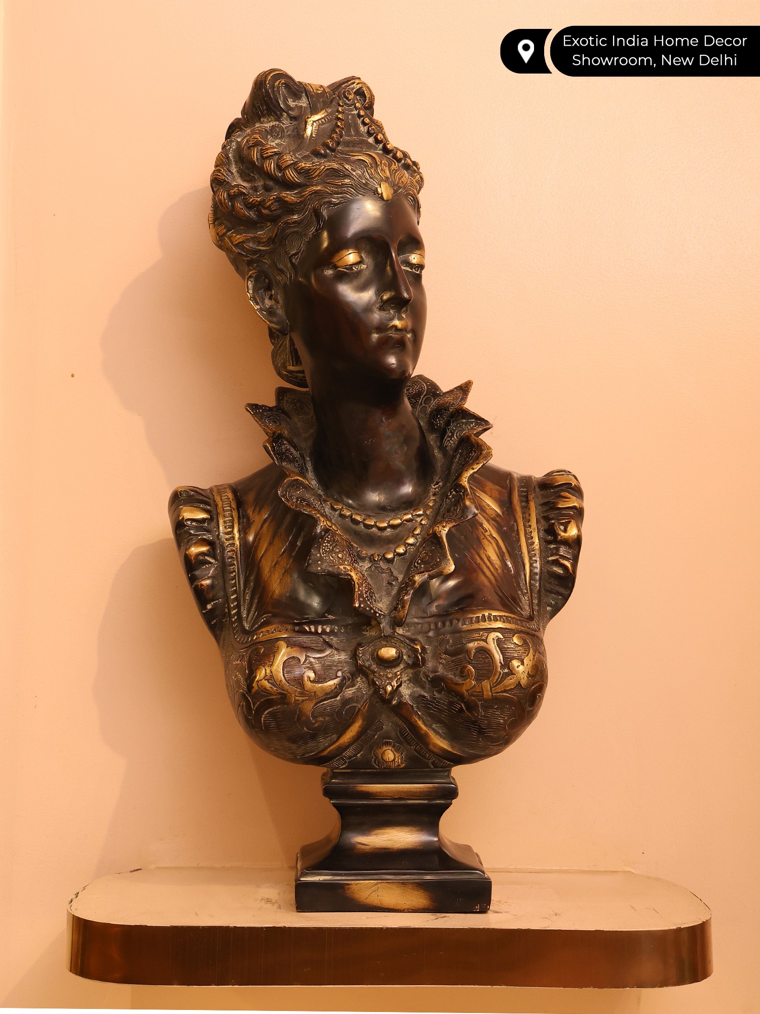 Grace your home with a touch of classical elegance. This striking sculpture is more than just a decorative item; it's a conversation starter, a statement piece that exudes sophistication and timeless beauty. The meticulous details, from the intricate hairstyle to the delicately sculpted features, capture a sense of regal bearing and refined taste. The rich finish adds depth and character, lending an air of history and grandeur to any room it graces. Whether placed on a console table, a bookshelf, or a mantelpiece, it will undoubtedly become the focal point, drawing the eye and inviting admiration.