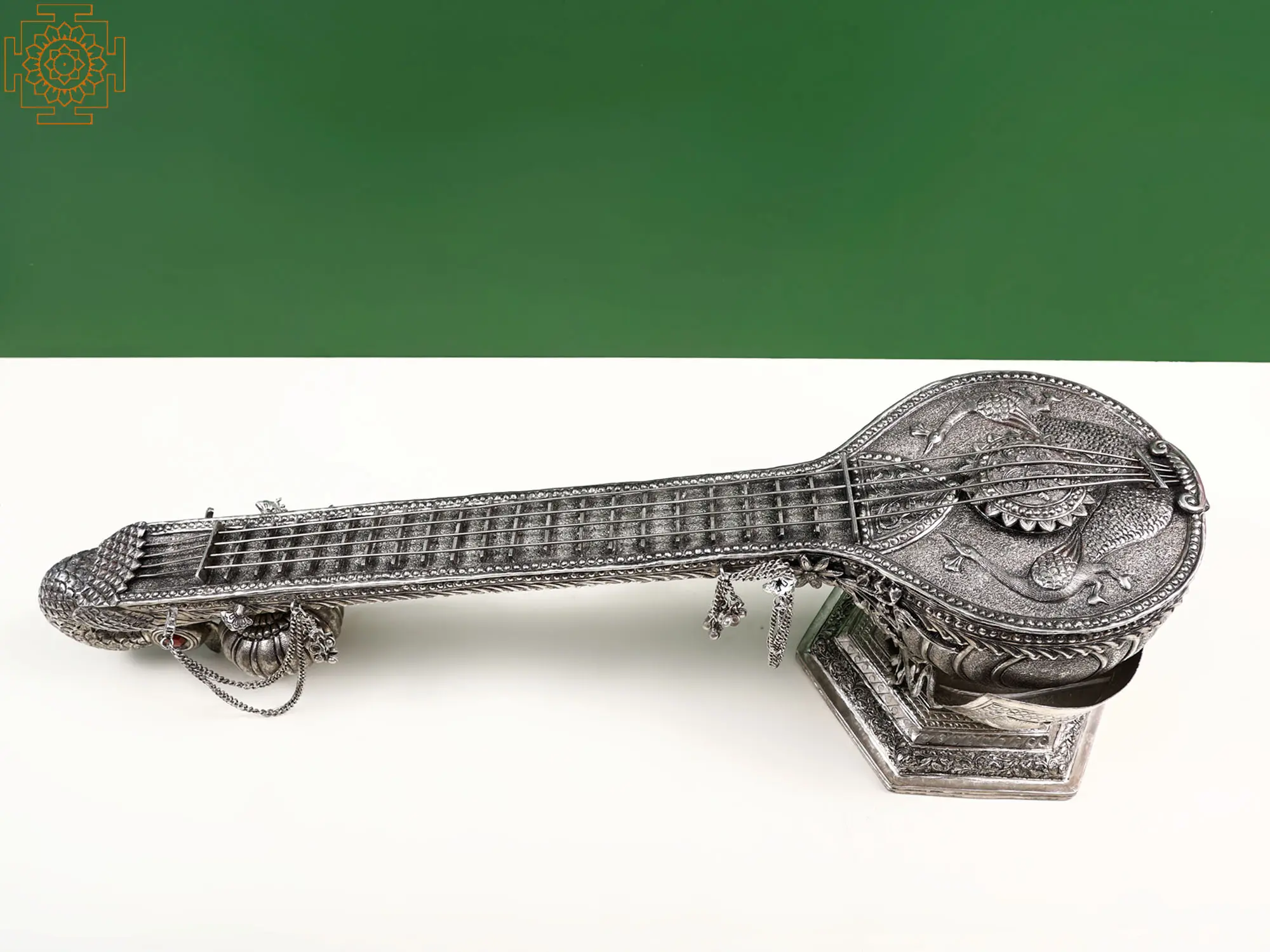 This exquisite 27-inch copper decorative sitar box is more than just a container; it's a statement piece, a captivating blend of artistry and functionality that will elevate the aesthetic of any space. Meticulously crafted from high-quality copper, this stunning box is a testament to skilled craftsmanship and a celebration of Indian musical heritage. The intricate detailing, from the ornate carvings to the delicately rendered sitar design, speaks volumes about the dedication poured into its creation. It's a showstopper, designed to capture attention and spark conversation. Imagine it gracing your living room, adding a touch of exotic elegance to your home decor.
