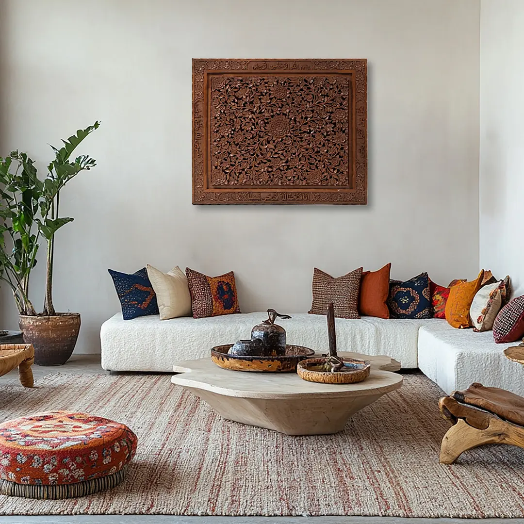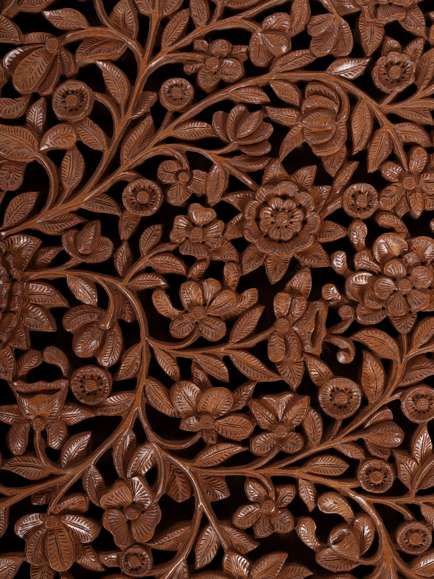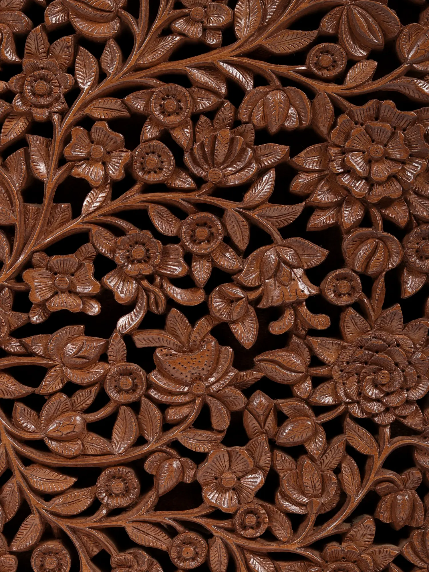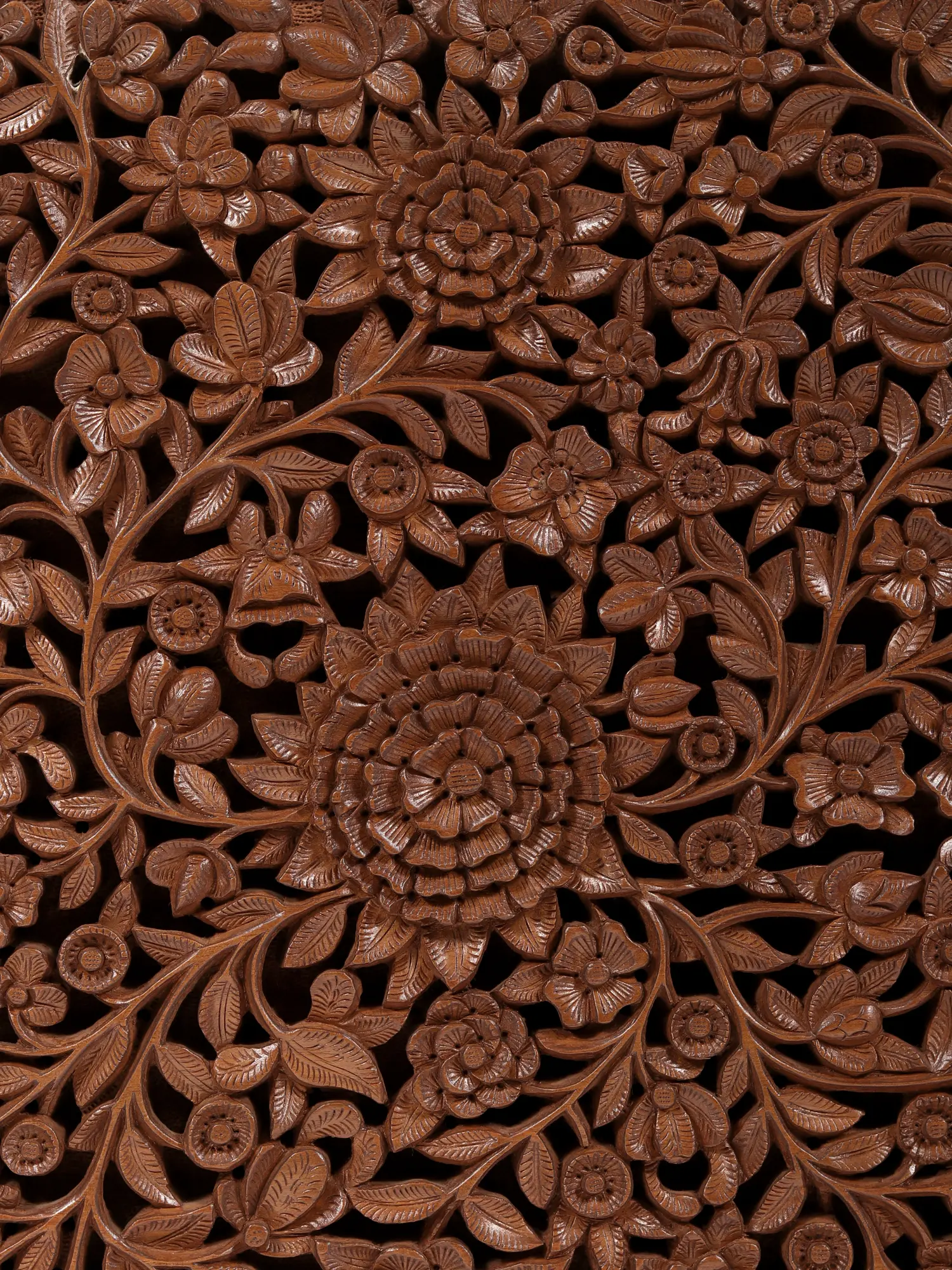 An amazing work of art and craftsmanship is the Kashmiri walnut wood carved sunflower design wall panel. This wall panel, which showcases an exquisite sunflower design and is handcrafted from walnut wood, pays homage to the rich legacy of Kashmiri woodworking. Any area is enhanced by the natural beauty and touch of elegance provided by the warm and dark tones of walnut wood. The elaborate carving of the sunflower design, which displays the skill and accuracy of Kashmiri artisans, is a monument to their talent.