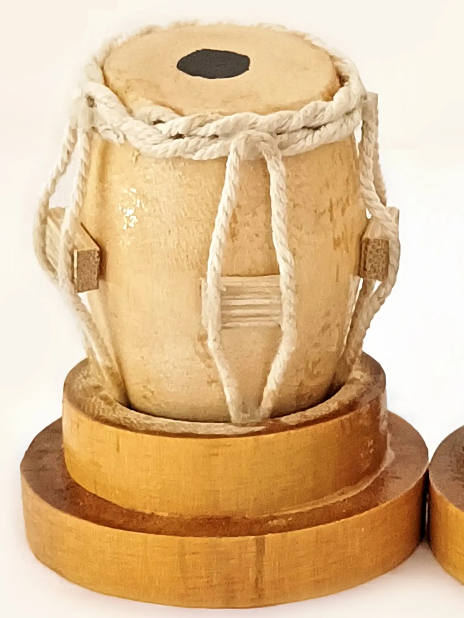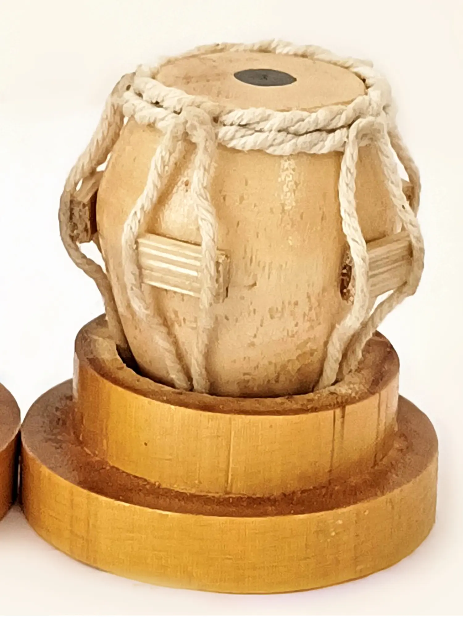 Crafted from unpolished wood, this handmade bamboo mini-Tabla set is a unique and musical addition to your space. A beautiful miniature version of the Indian instrument, the bamboo tabla set is placed in a bamboo base with strings adding realism to the composition. Reminders of the beats of the instrument, this bamboo tabla is a quirky yet classic decor piece, perfect for tables and corners.
