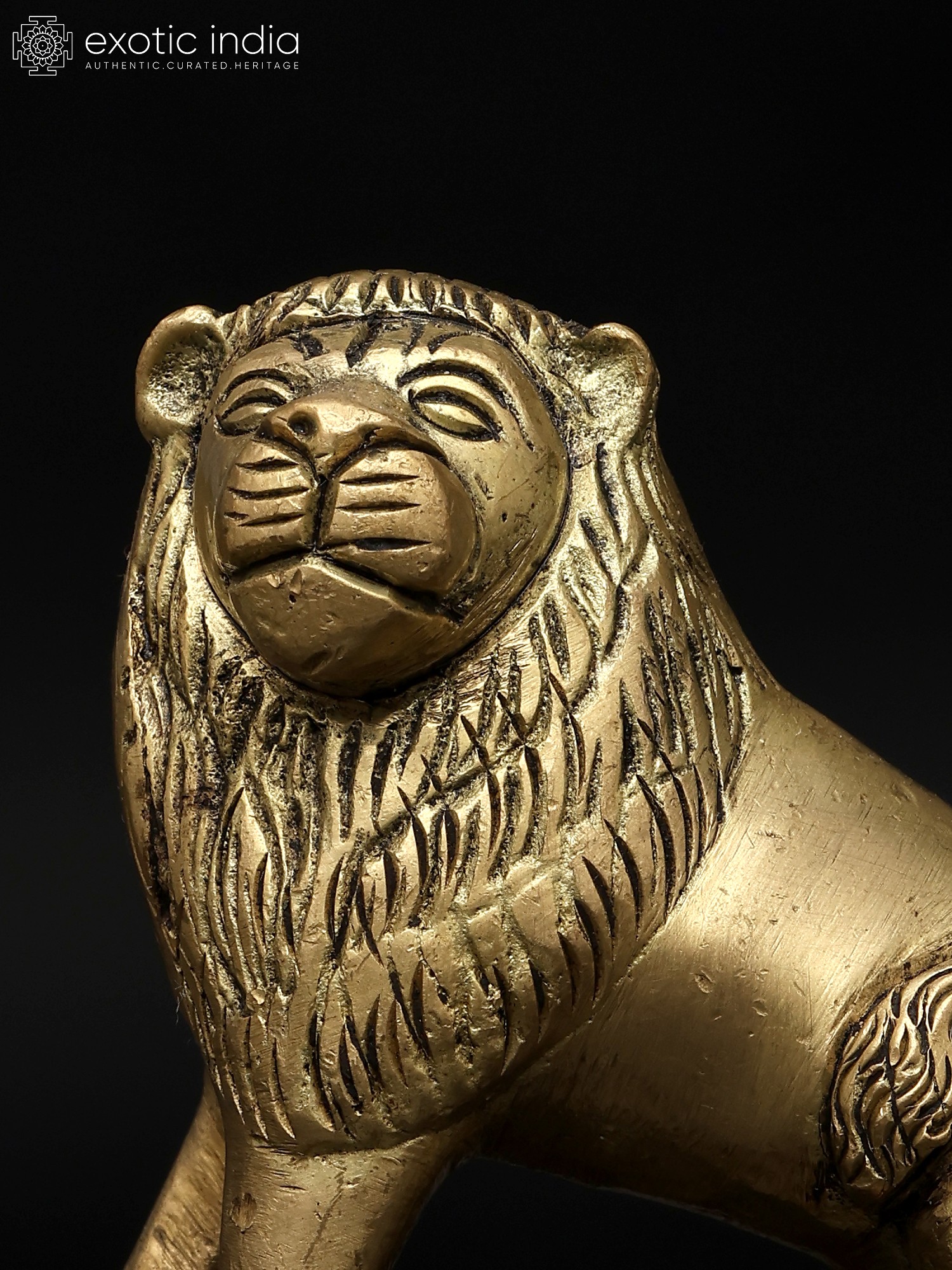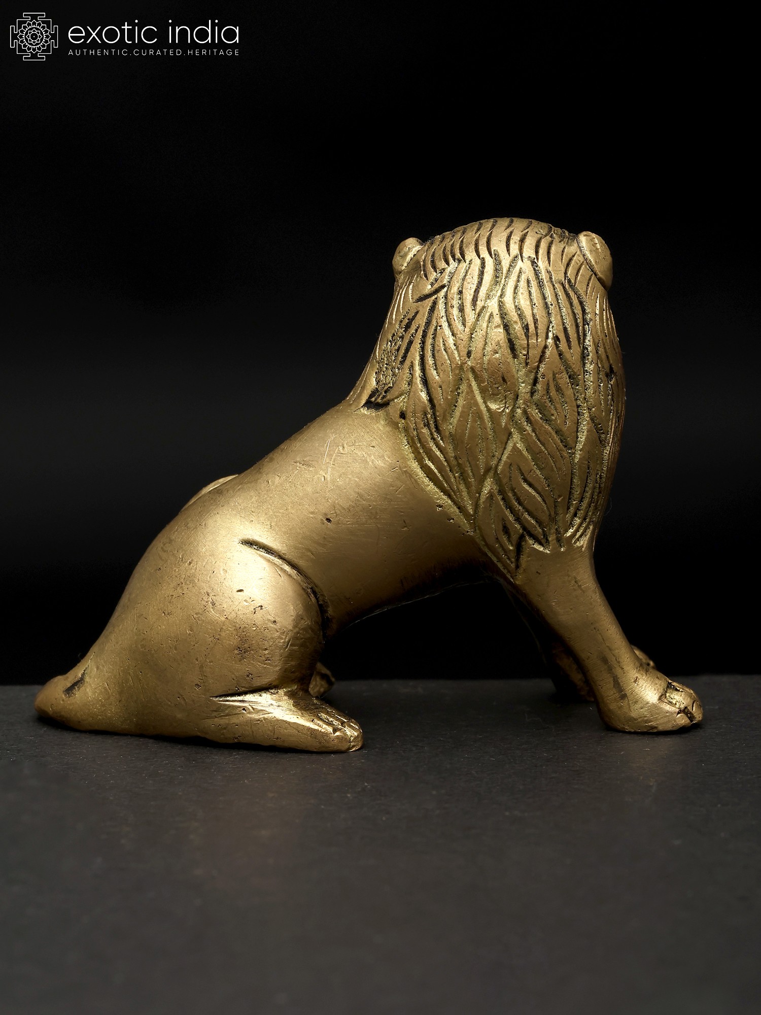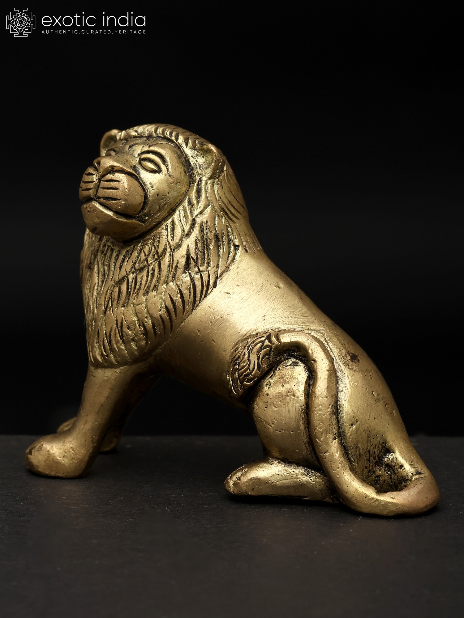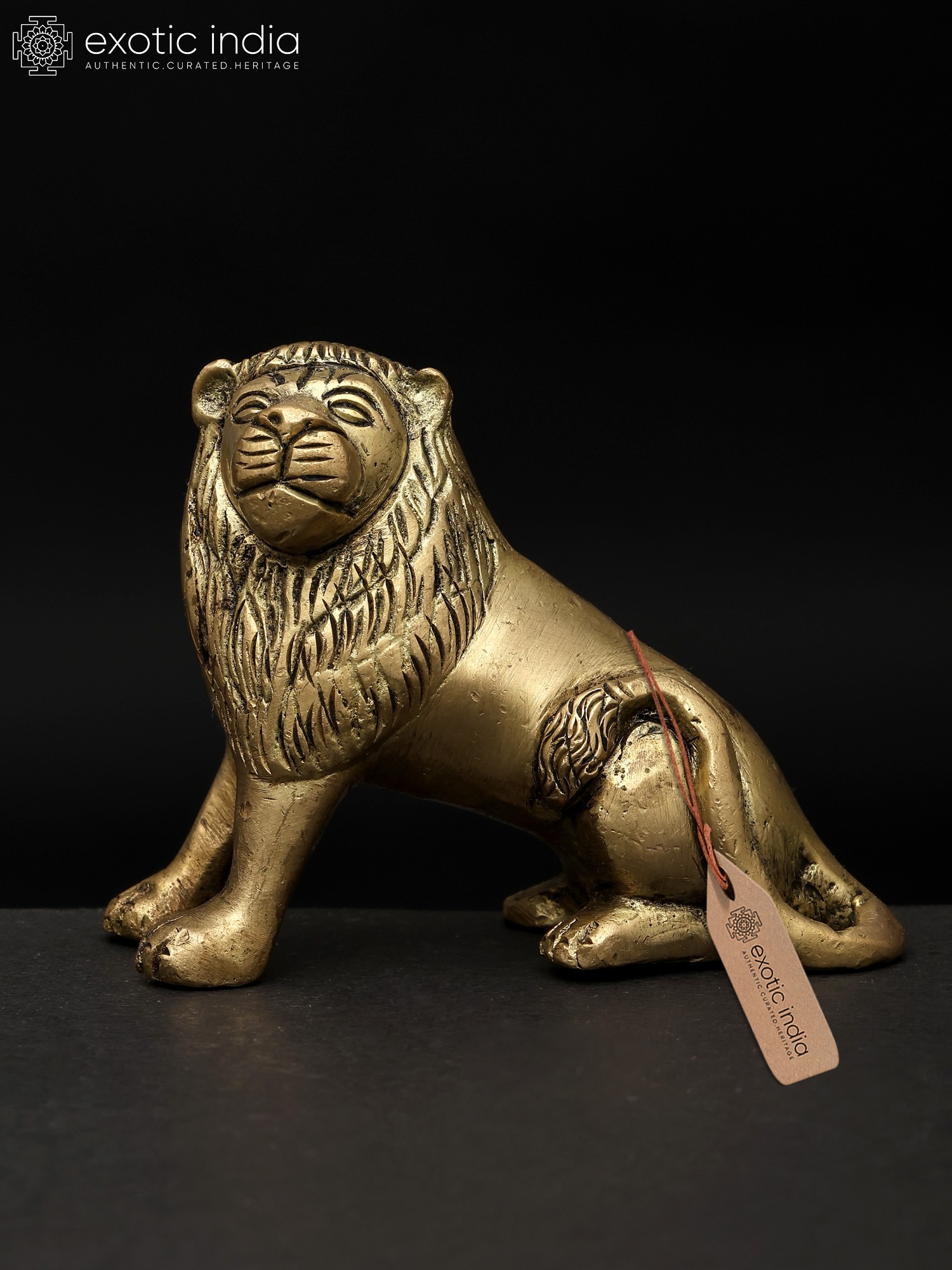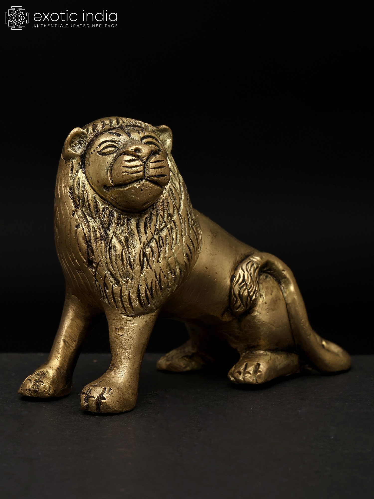 Furious Lion Statue Seated | Gold-Plated Brass Idol