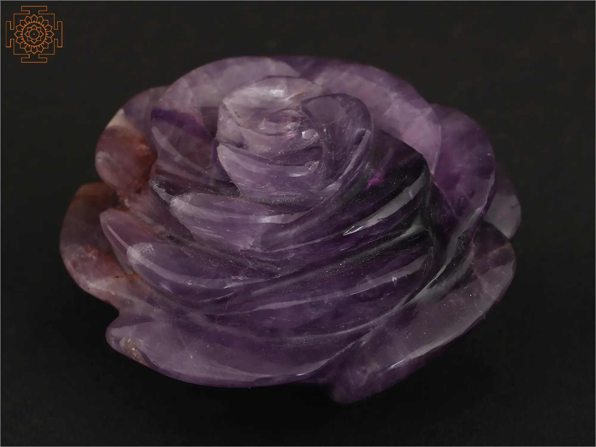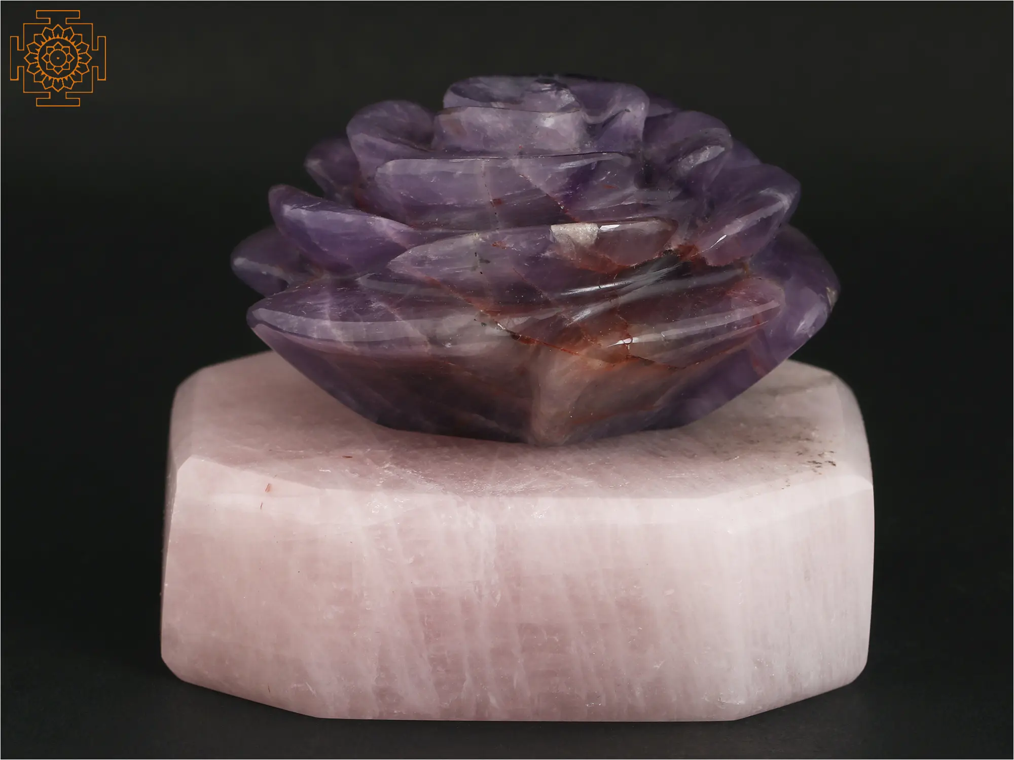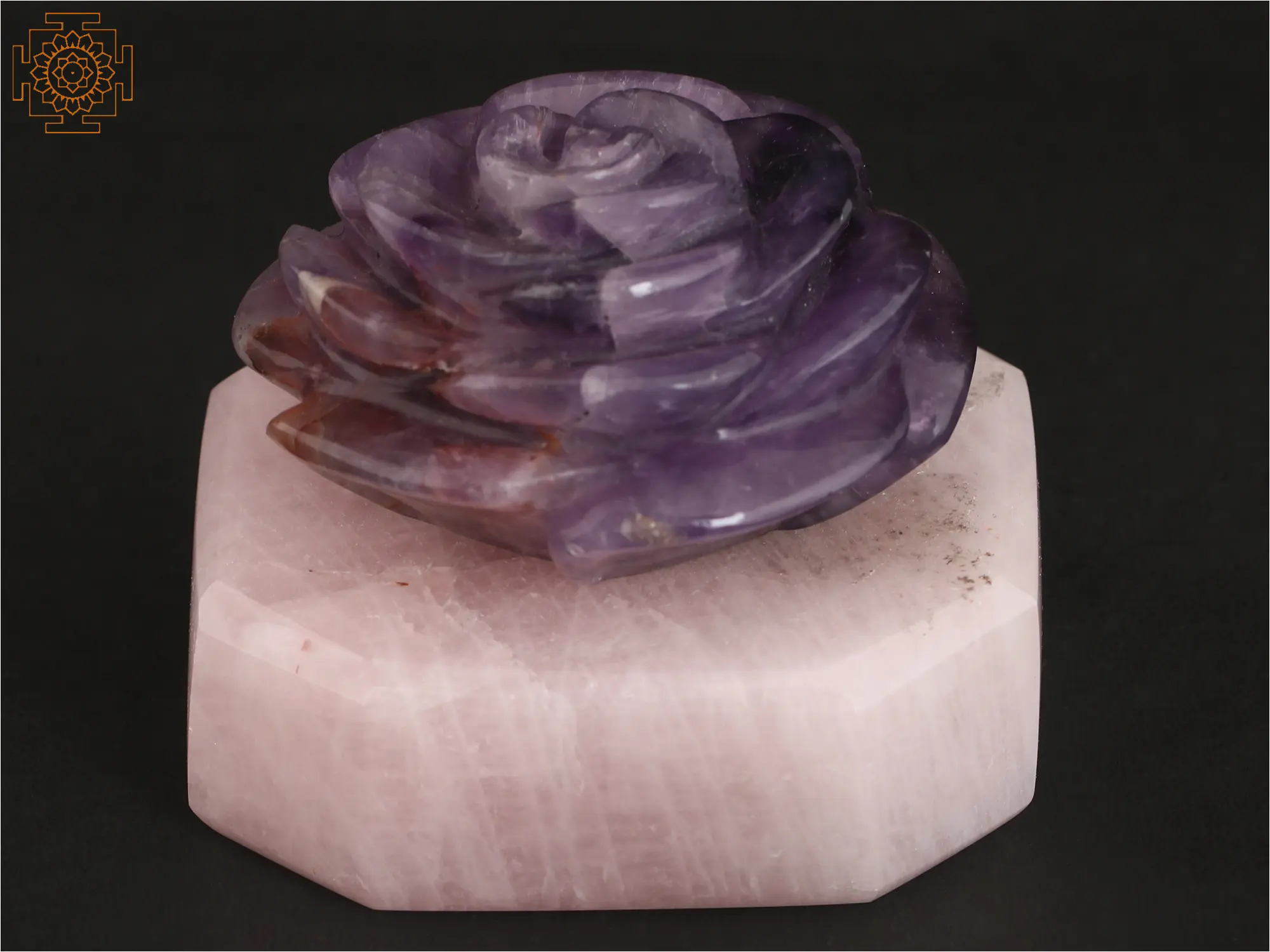 Roses symbolize love and surrender. Despite having thorns, they are considered beautiful and approachable. This Small Rose Flower is crafted from Amethyst stone, elegantly anchored on a Rose Quartz stone base that pays tribute to the flower of love. The delicate petals of the rose, meticulously carved from the soothing purple hues of Amethyst, embody nature's grace. Resting on a base of Rose Quartz, known for its gentle energy, the union of these two precious stones infuses the piece with tranquility and love. This intricately crafted miniature captures the essence of beauty and positive energy, making it a perfect adornment for any space, while the amalgamation of Amethyst and Rose Quartz adds a touch of serenity to its captivating allure.