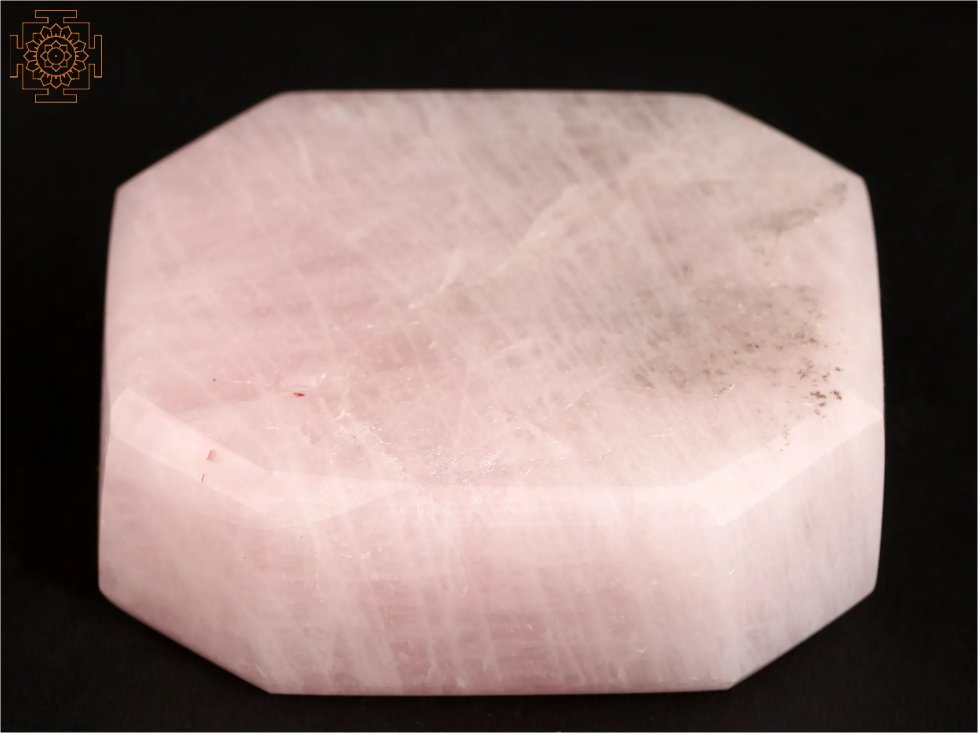 The combination of the two gemstones creates a captivating contrast of colors and energies. It rests gracefully upon a solid, rose quartz base. The soft, blush-pink tones of the base provide a gentle foundation, creating a pleasing visual balance. The rose quartz not only enhances the overall aesthetic appeal but also adds a layer of symbolic significance, representing love, compassion, and emotional healing. This beautiful gemstone combination helps promote a sense of calm, balance, and well-being.