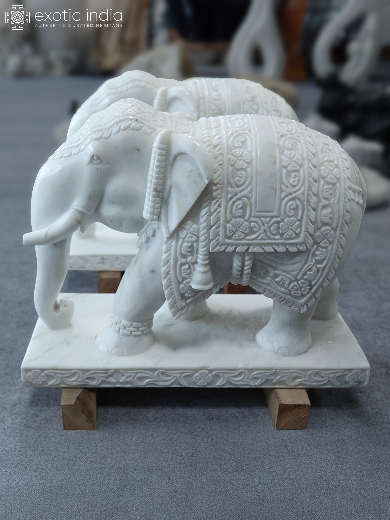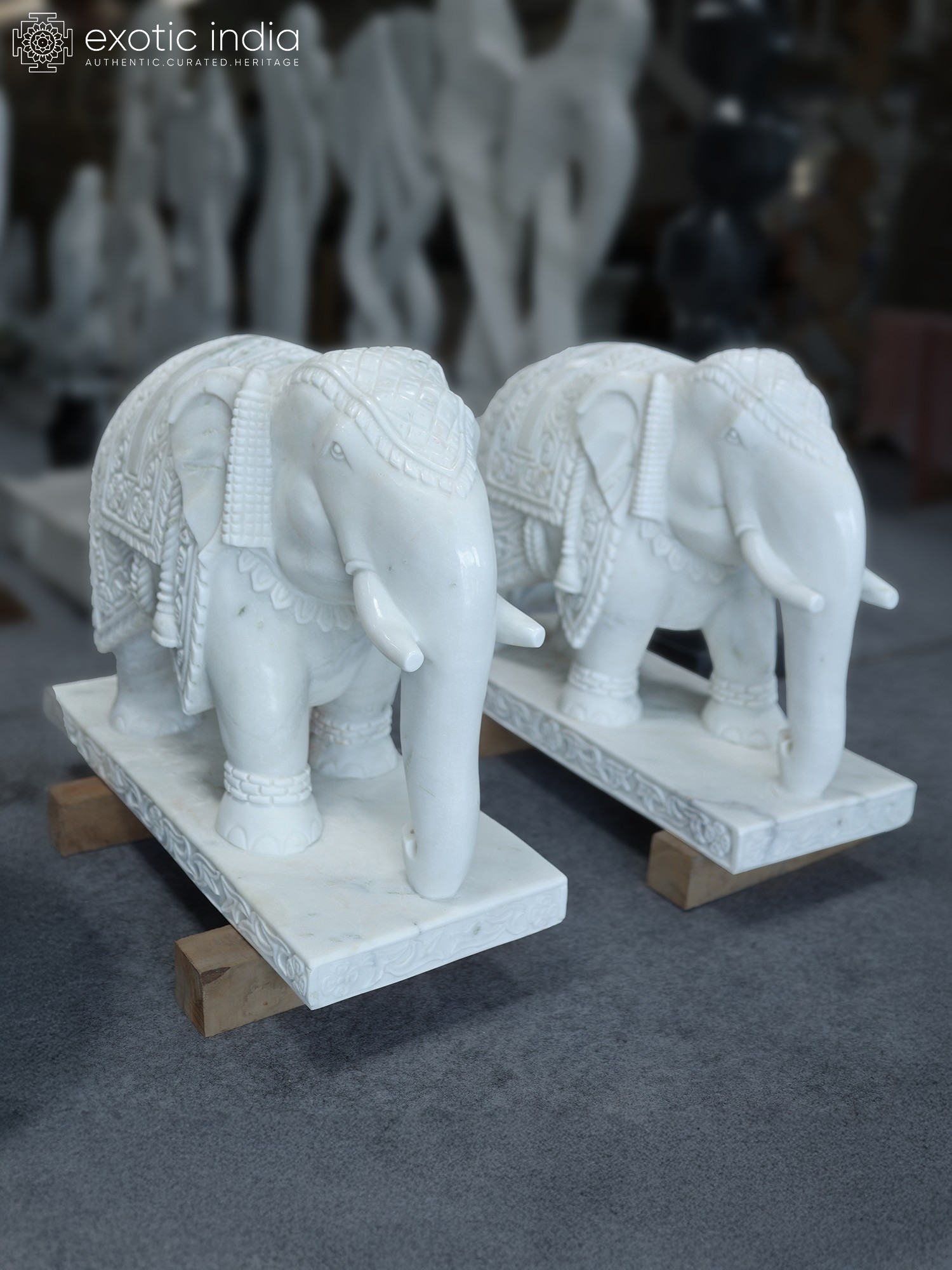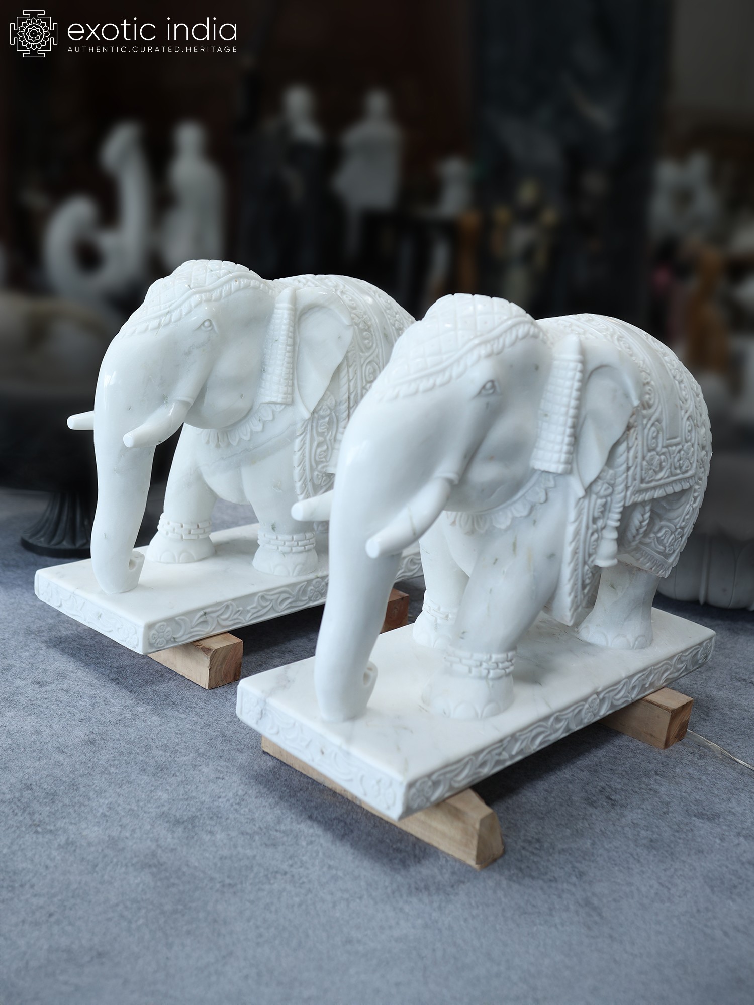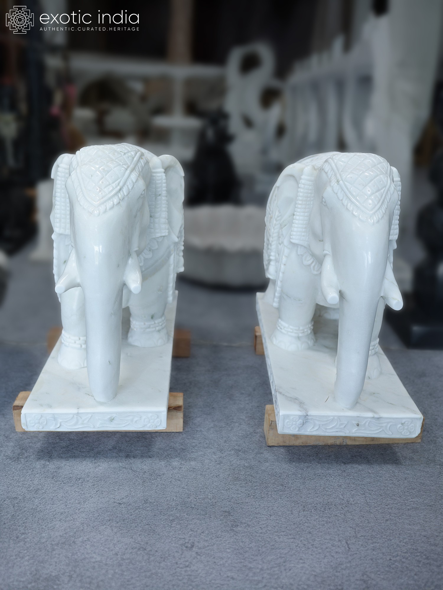 27" Pair of Elephants | Marble Sculpture | Home Decor | Exquisite Indian Art