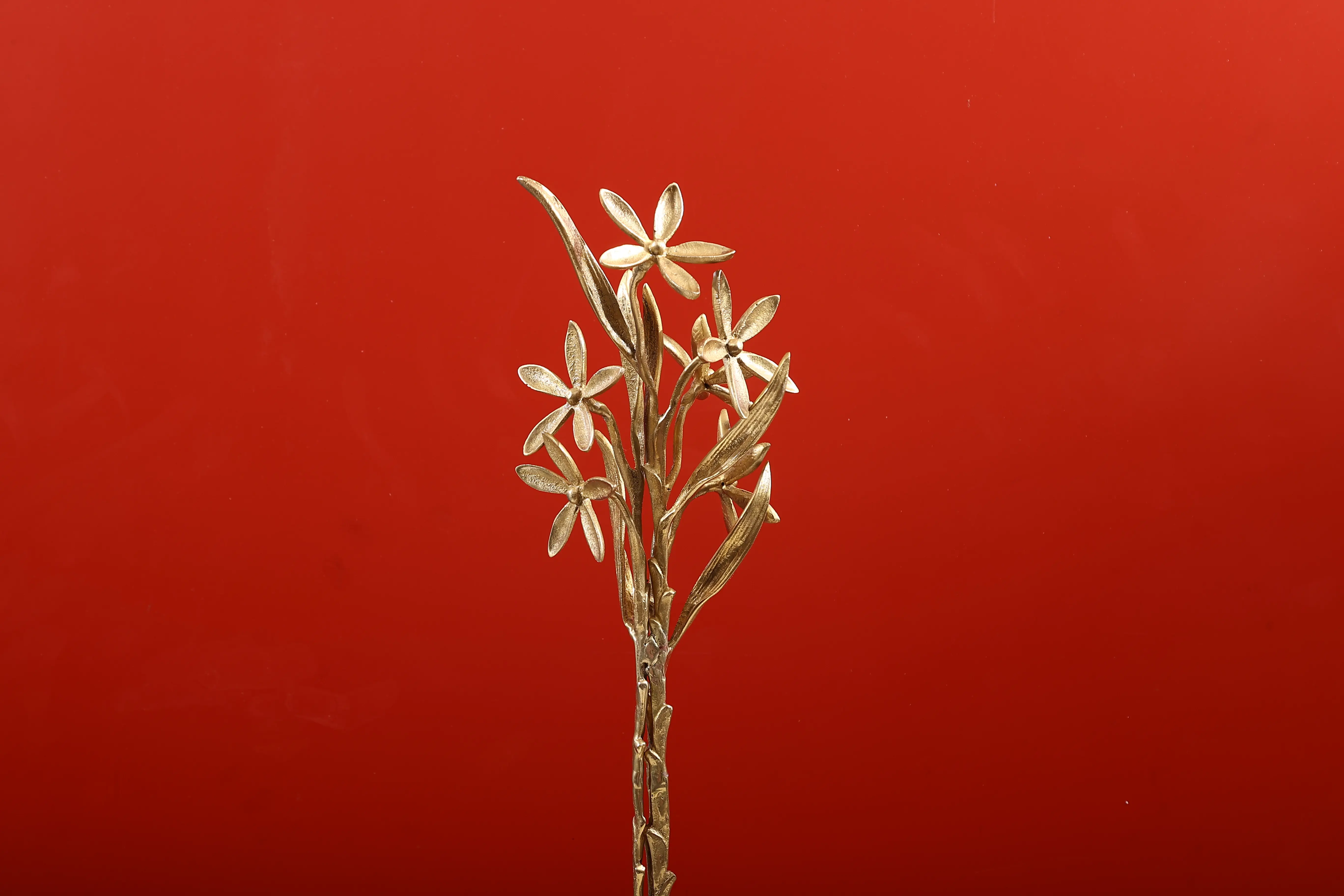 Constructed from high-quality brass, this decorative item promises not only visual appeal but also durability and longevity. Brass is known for its inherent strength and resistance to tarnishing, ensuring that this piece will maintain its lustrous sheen for years to come with minimal care. The intricate craftsmanship is evident in every curve and detail, from the delicately formed petals that seem to unfurl before your eyes, to the textured stem that mimics the organic growth of a plant. This commitment to quality ensures that this floral accent is more than just a decorative item; it is a lasting investment in your home's aesthetic. Its presence adds a subtle yet significant element of refinement, transforming ordinary spaces into showcases of enduring style and natural inspiration.