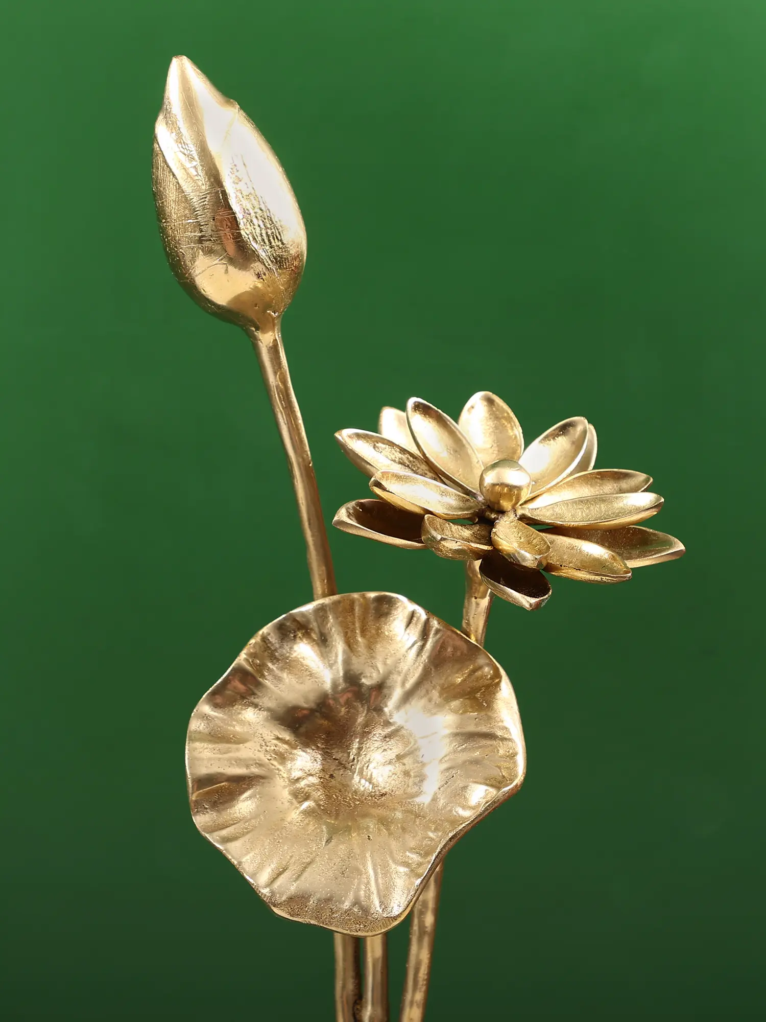 Symbols of life, beauty, and nature’s eternal bloom, these brass decorative flower branches are an aesthetic addition to your home decor, to give it a charming touch of metallic luster and finesse. Sprouting naturally from a single branch, the flowers depicted are lilies, with one fully bloomed and one bud, paired with a lilypad- each piece sculpted and finished with stunning natural details. Molding brass into the supple floral branches, artists have crafted a contemporary piece of decor, worthy of being the center of attraction in any space.
