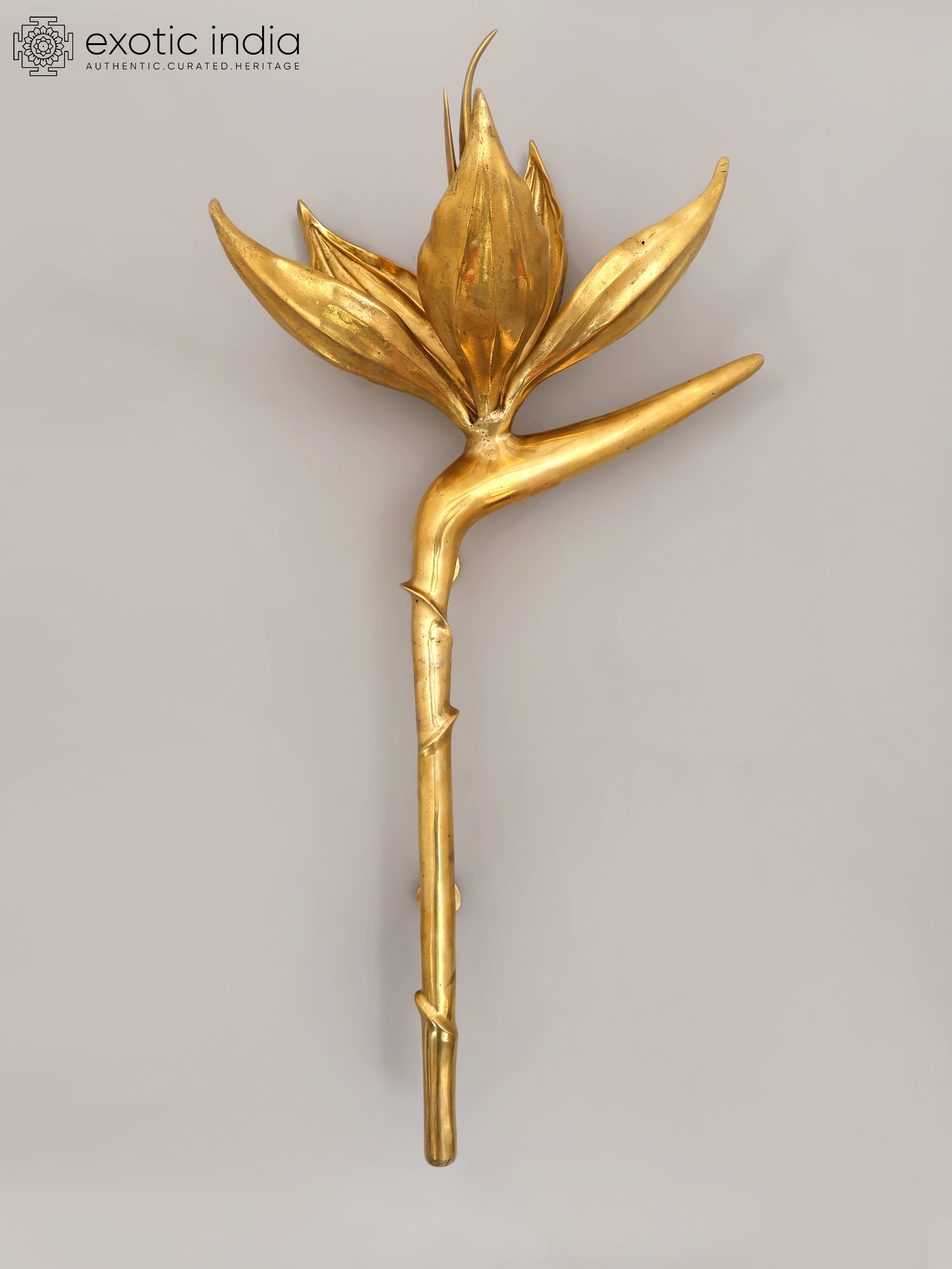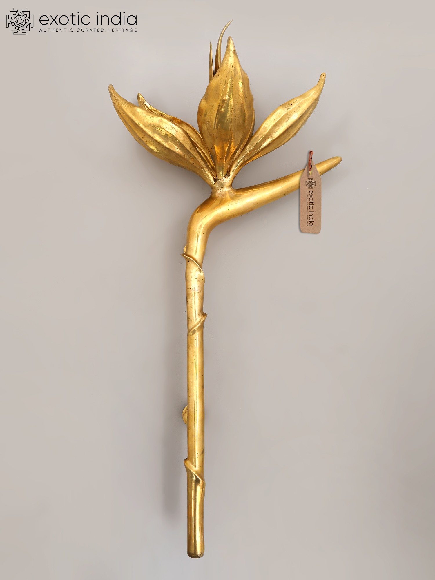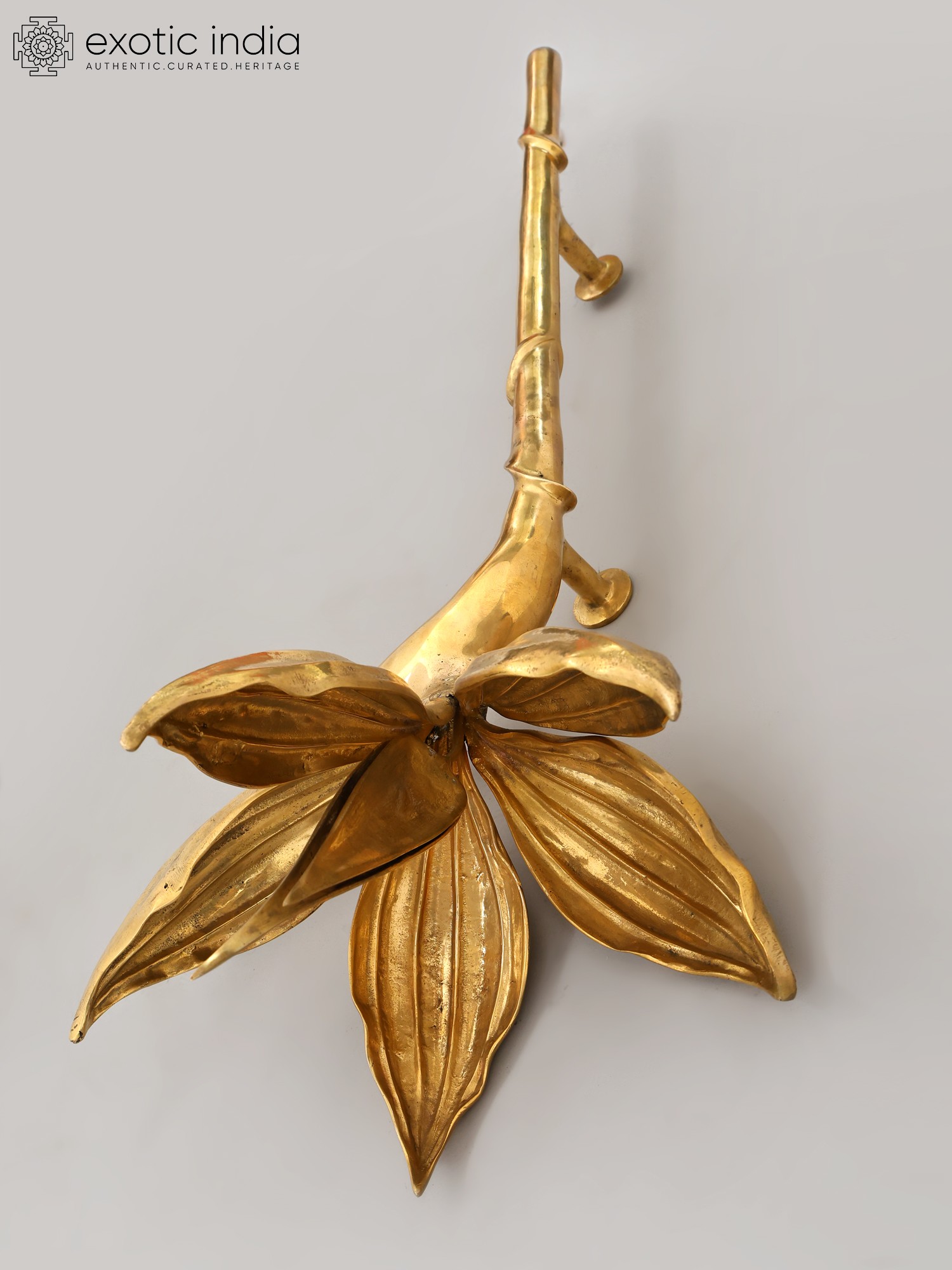 32" Handcrafted Brass Lotus Door Handle - Designer Architectural Hardware
