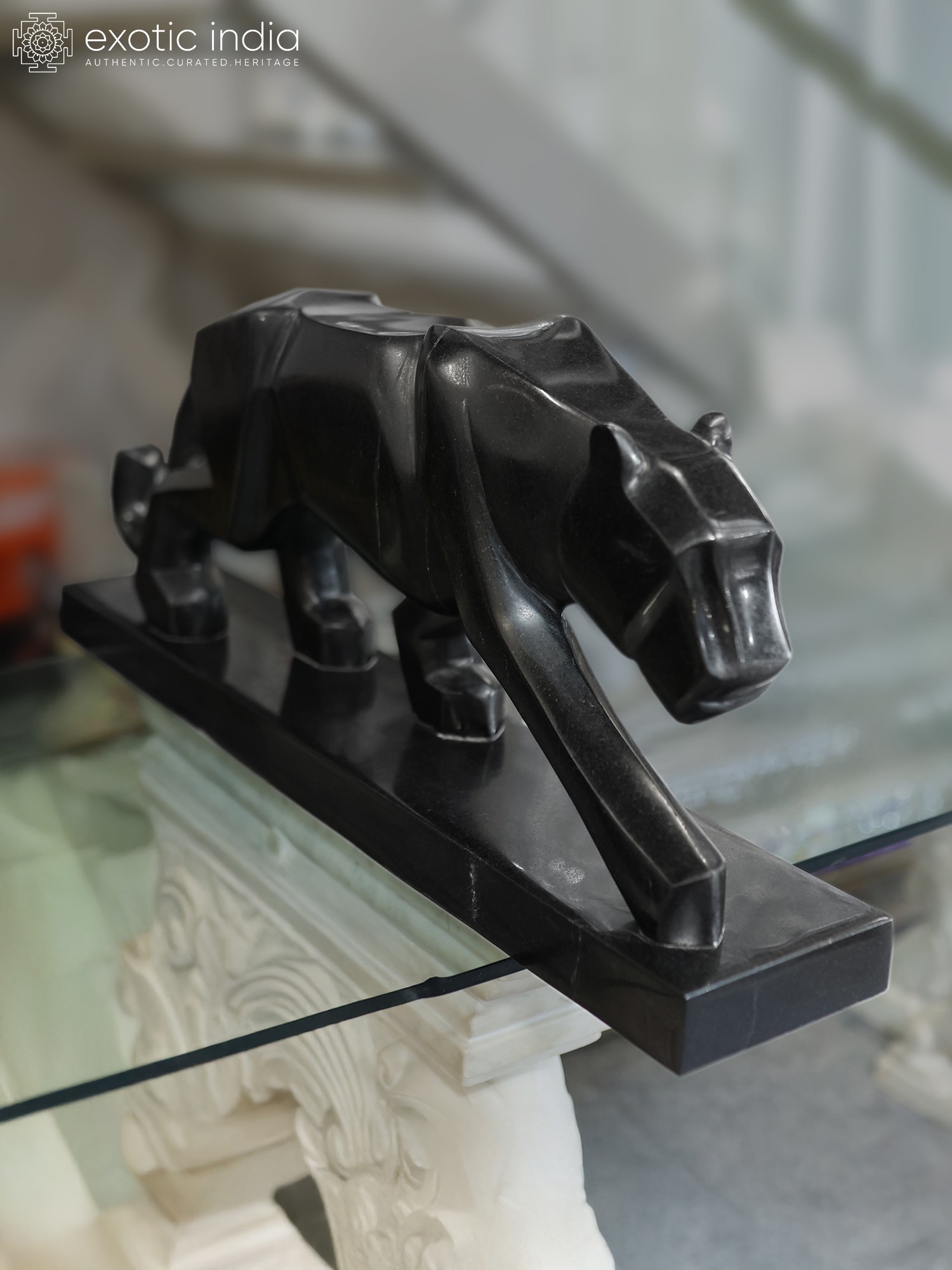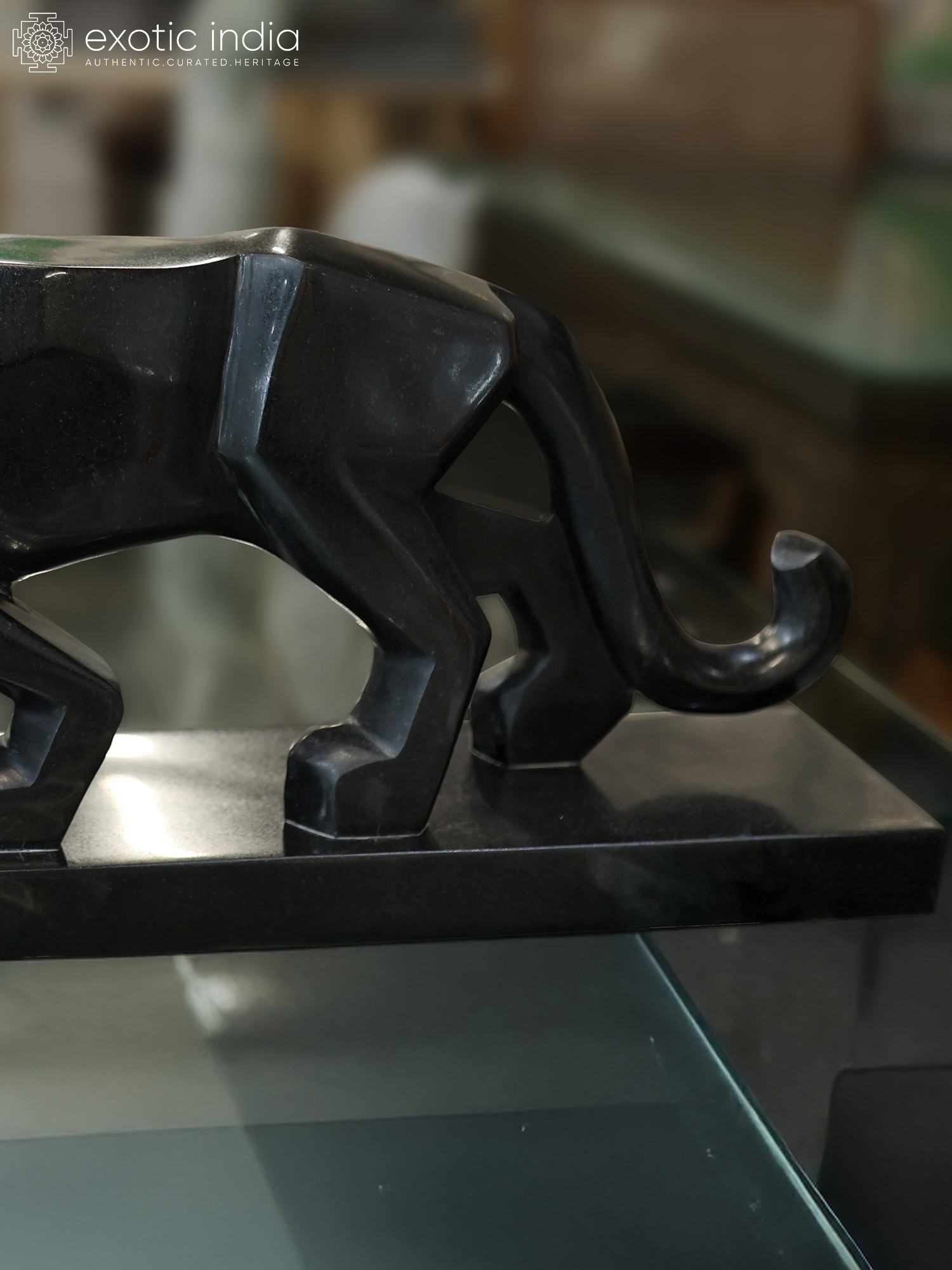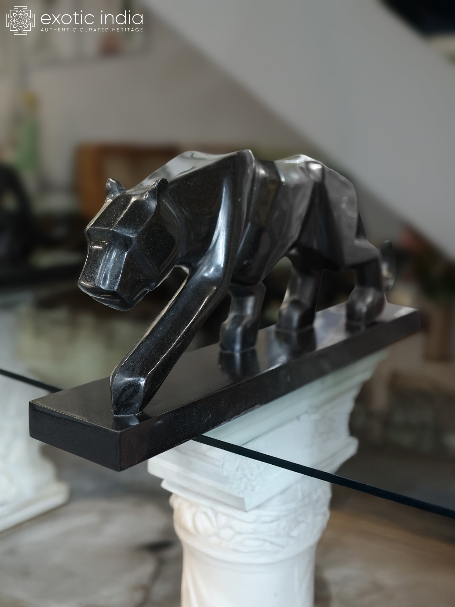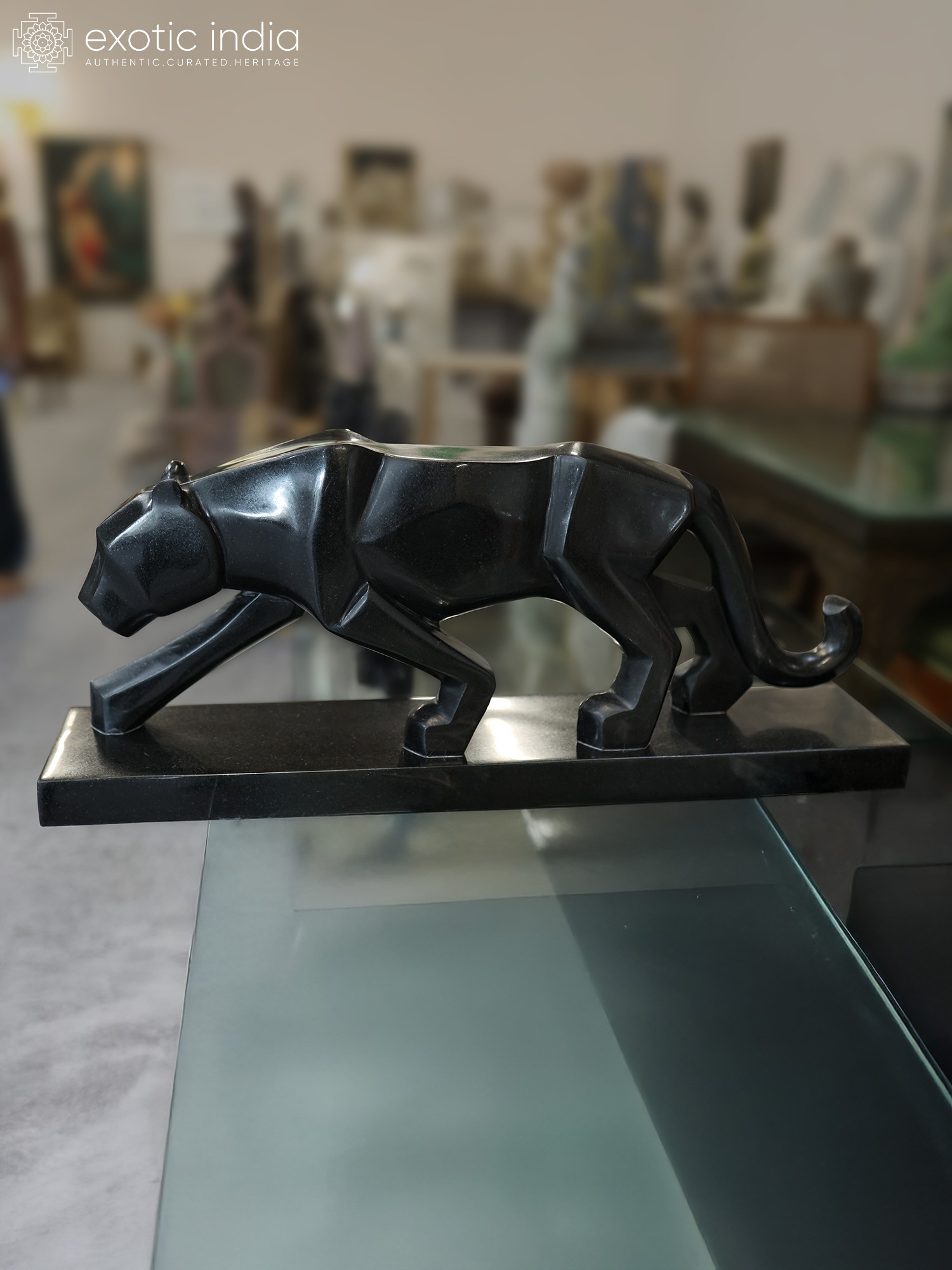 33" The Watchful Hunter: Black Panther Statue in Brass | Home Decor