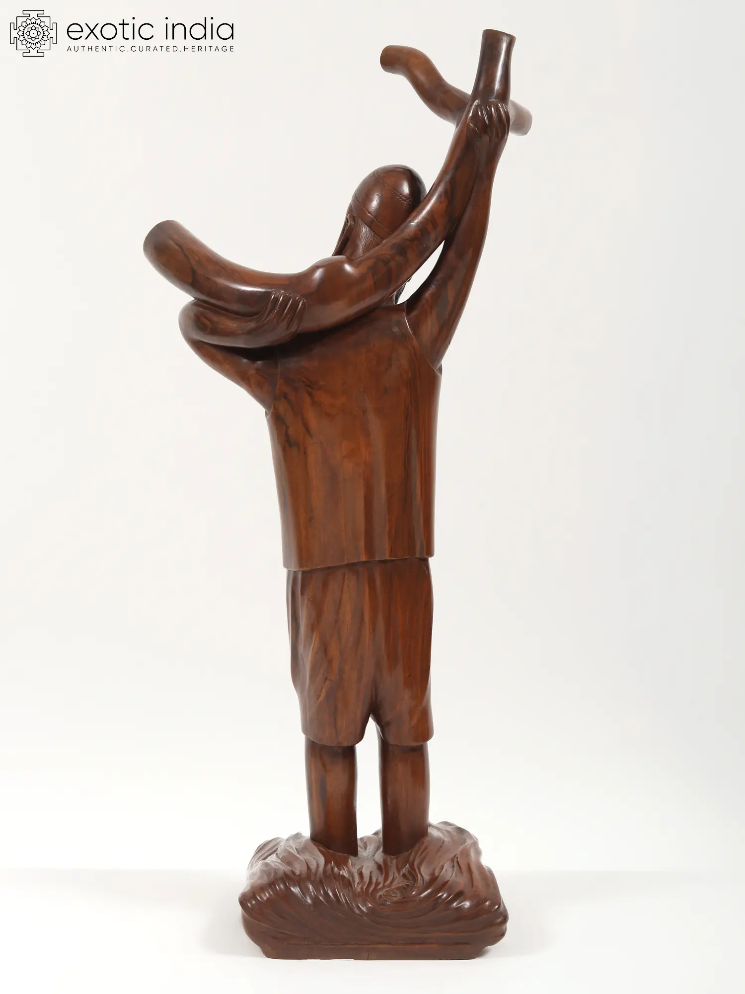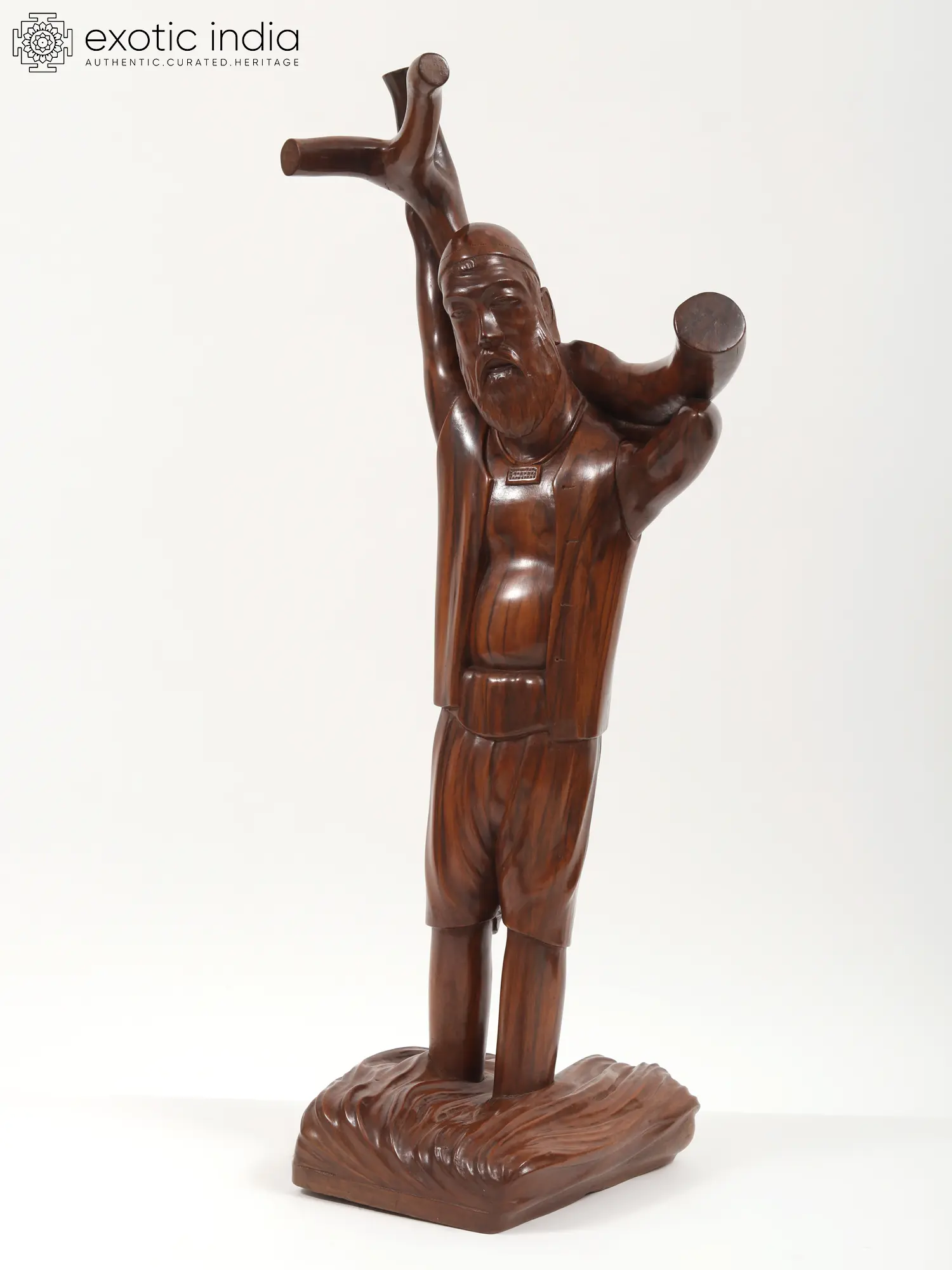 Celebrate the industrious spirit and timeless artistry of the Kashmiri people with our Large Kashmiri Woodcutter Sculpture. Carved from exquisite walnut wood, this sculpture pays homage to the skilled woodcutters of the region, who have been shaping the wood of the majestic Kashmiri forests for generations. This sculpture embodies the profound philosophy of sustainable living and the balance between human activity and nature. The woodcutter's resolute posture and the intricate details in his tools remind us of the harmony that can be achieved between human industry and environmental preservation. As a striking addition to your home decor, this piece serves as a reminder of the dedication and respect for nature that underlies the life and culture of the Kashmiri people.