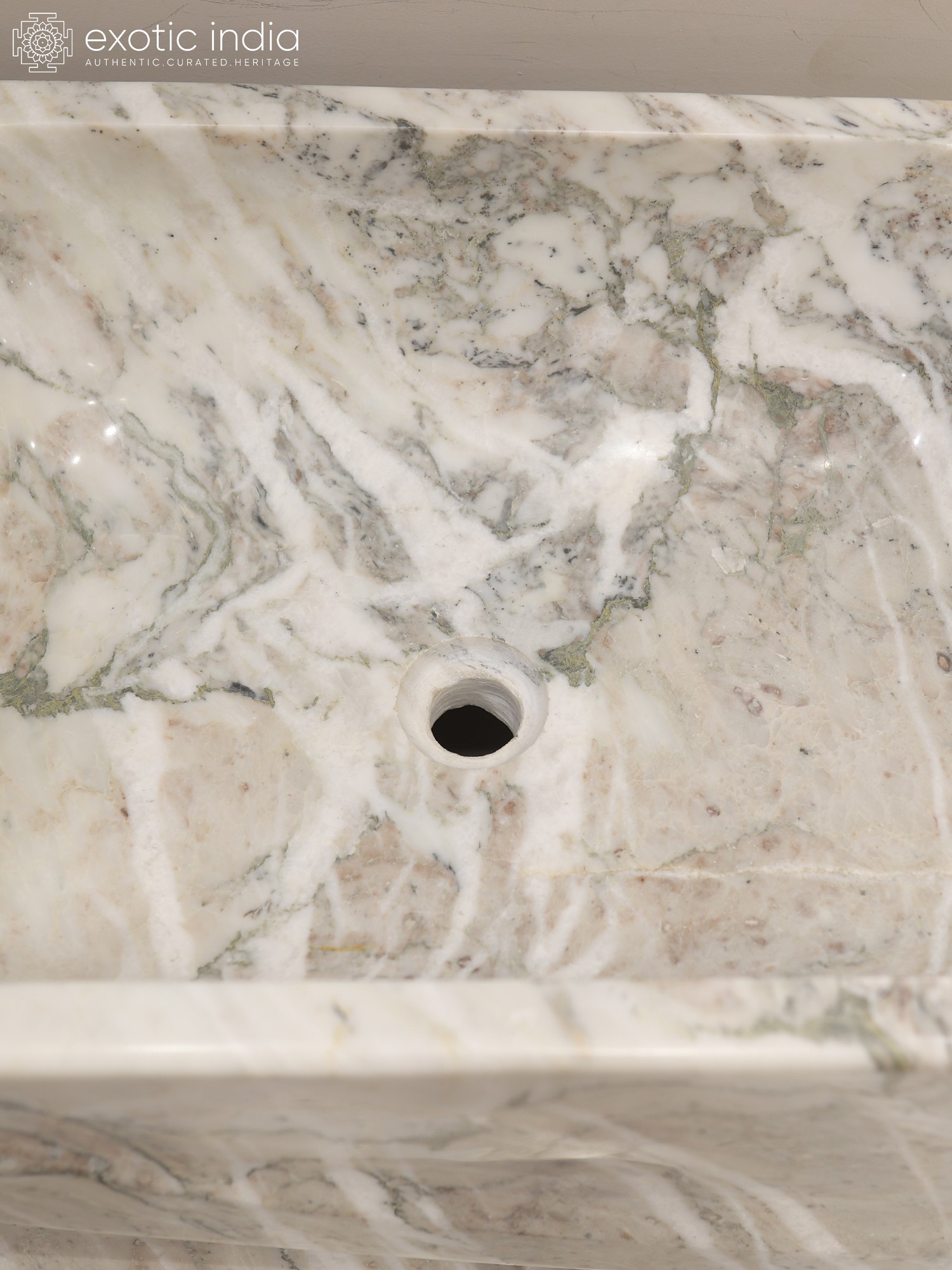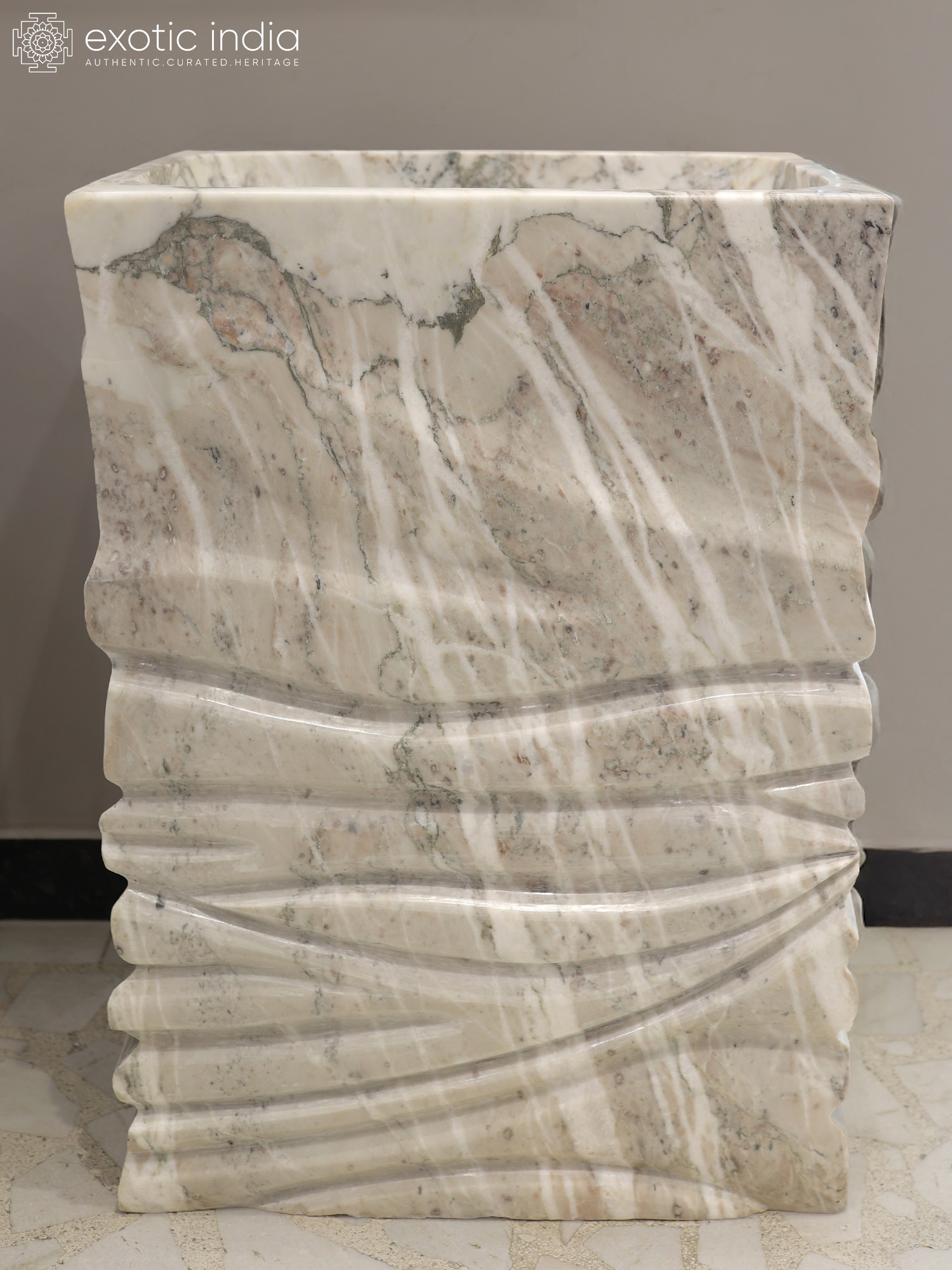 This wash basin is a proud representation of exquisite Indian art and craftsmanship. Indian artisans have long been celebrated for their mastery over stone carving, transforming humble materials into objects of profound beauty and cultural significance. This basin carries that legacy forward, showcasing a sophisticated aesthetic that is both contemporary and deeply rooted in tradition. The choice of natural marble and the intricate carving techniques employed speak to a heritage of excellence. It is more than just a wash basin; it is a cultural artifact, a functional sculpture that brings a touch of the exotic and the authentic into your home. Its presence enriches the environment, inviting admiration and conversation.