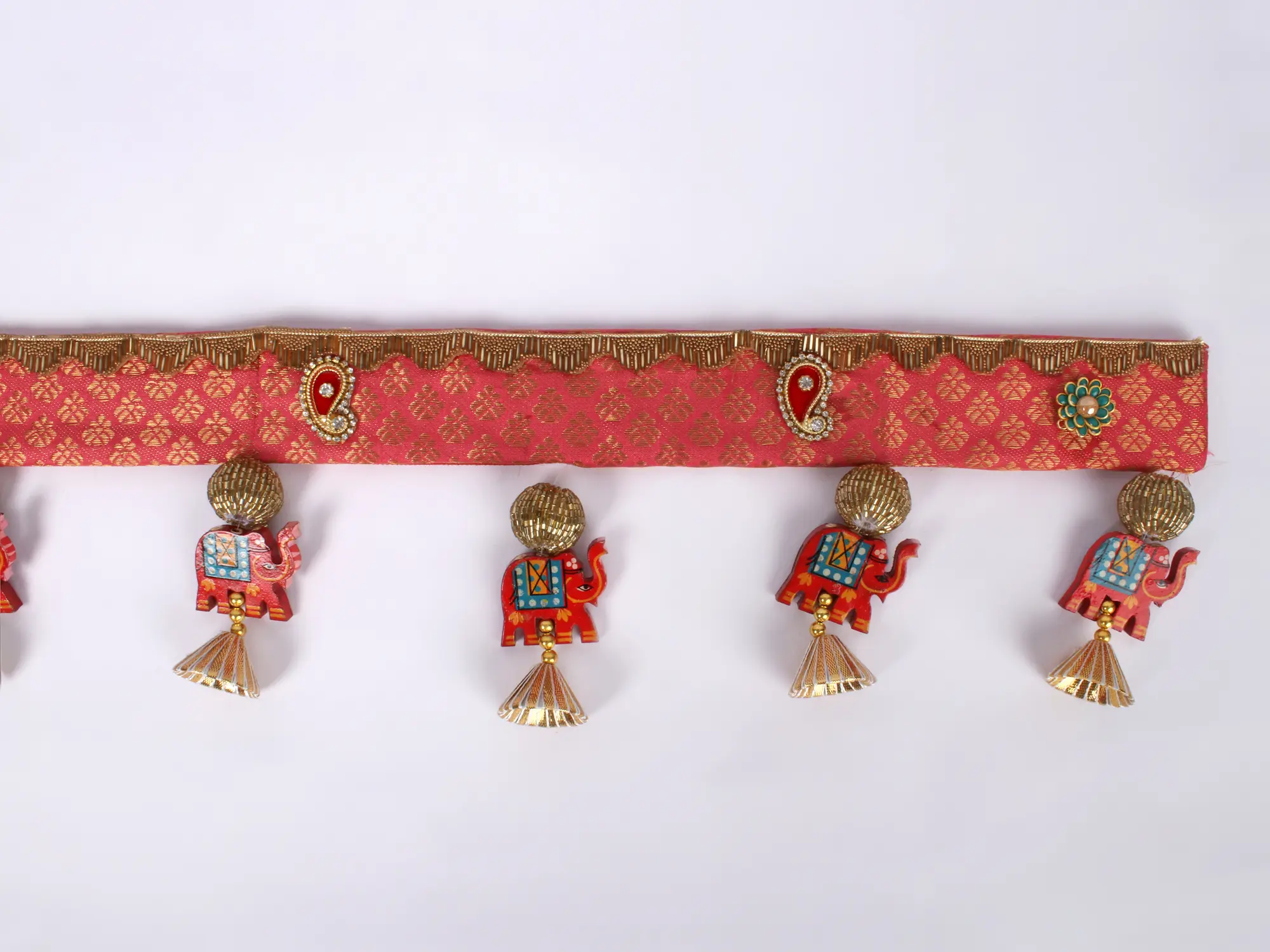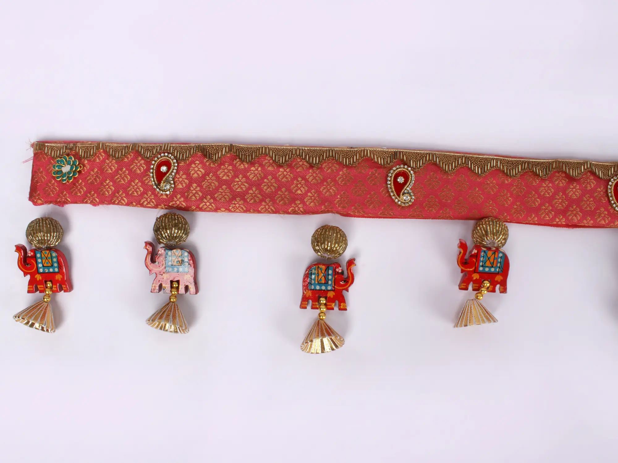 The handmade craftsmanship of the Toran further emphasizes the value placed on tradition and artisanal skills within the community. By incorporating elephant motifs, this toran not only adds a decorative touch to the home but also serves as a powerful symbol of cultural heritage, spirituality, and prosperity.