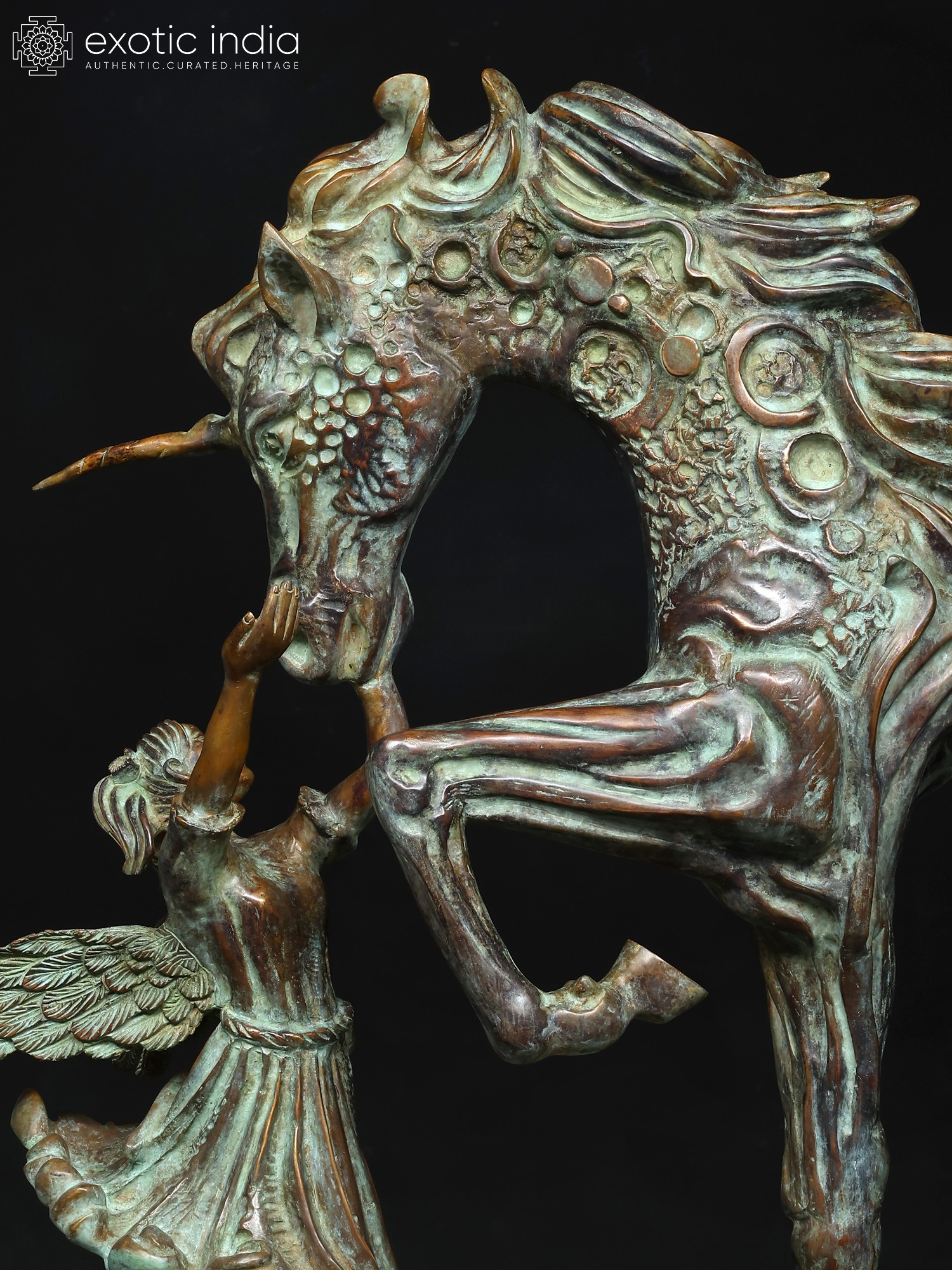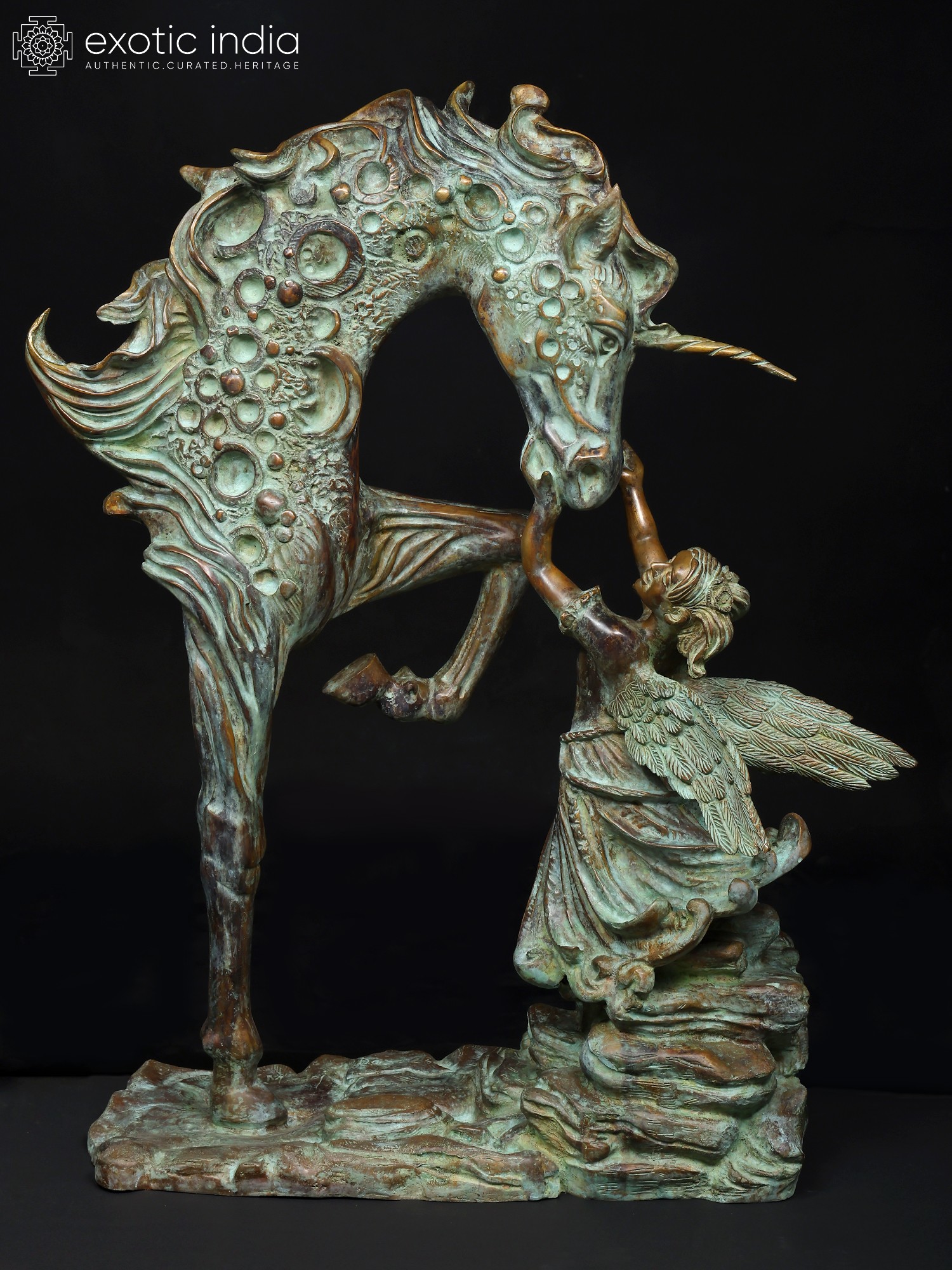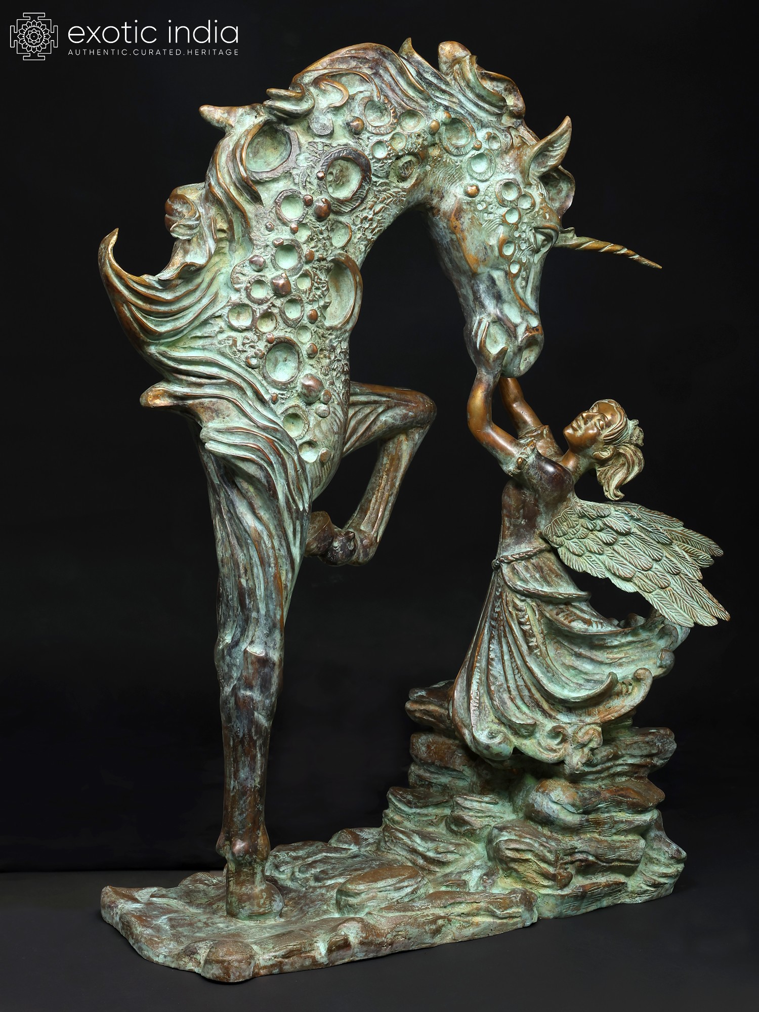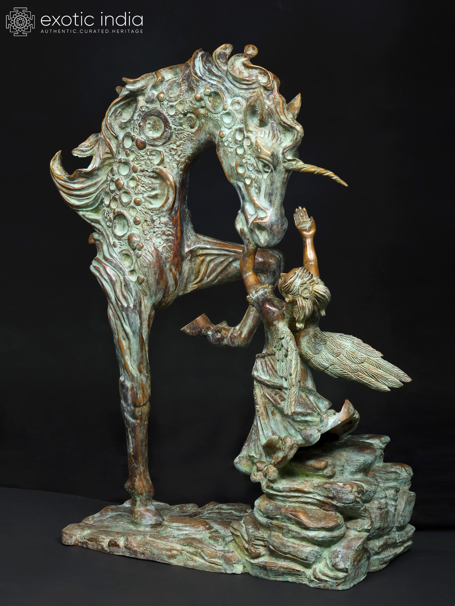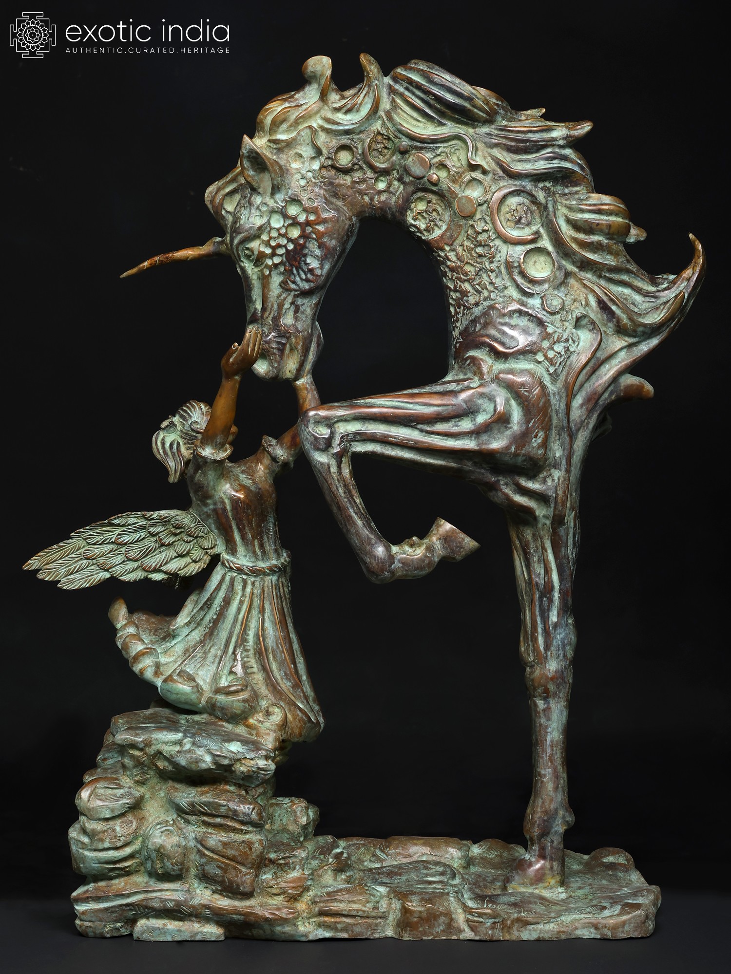 36" The Graceful Bond : Angel and Unicorn Sculpture | Home Decor