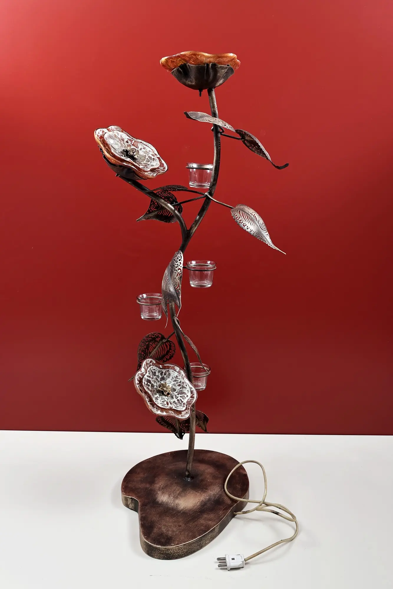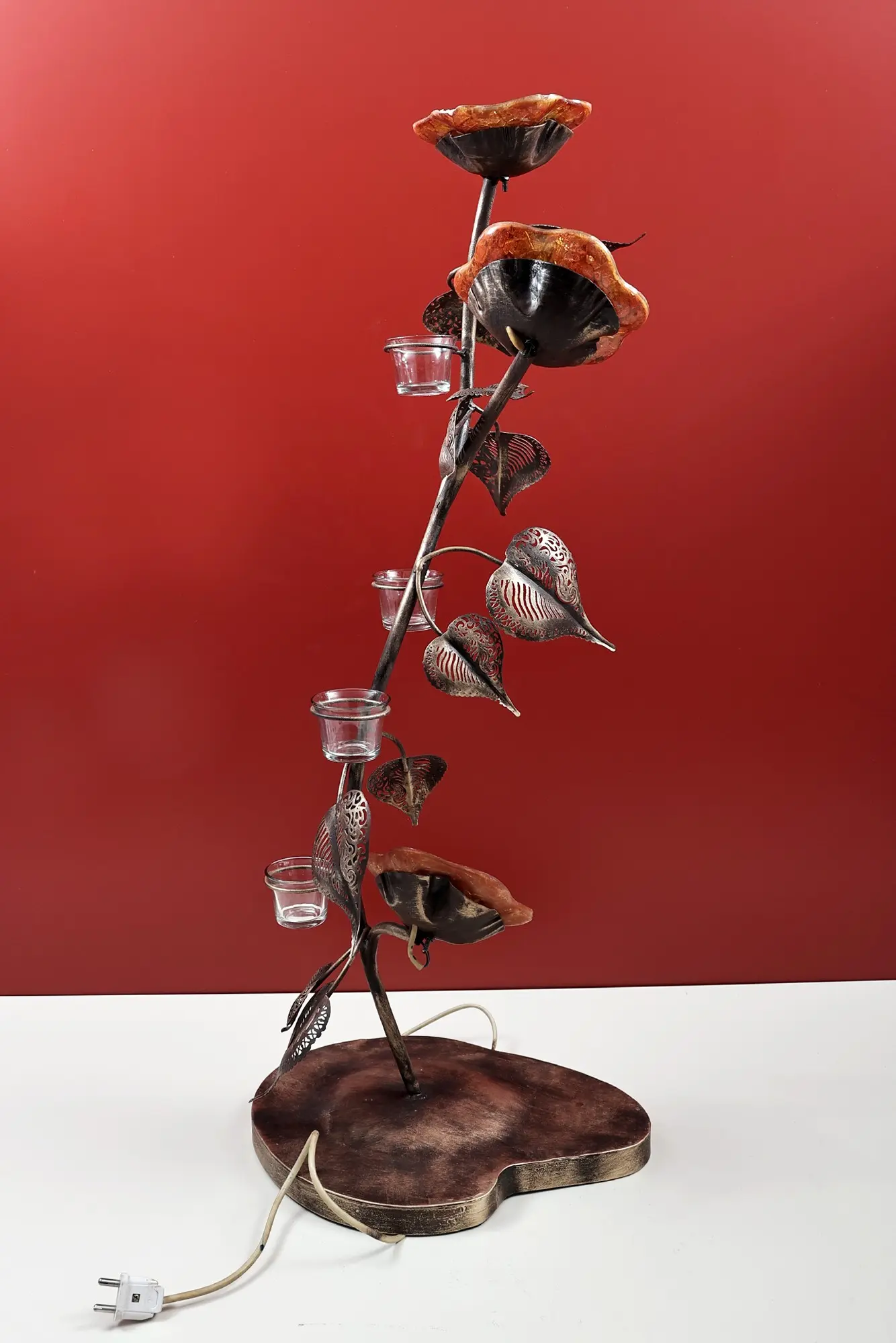 13" Wood Carved Designer Candle Stand with Brass Bells | Home Decor