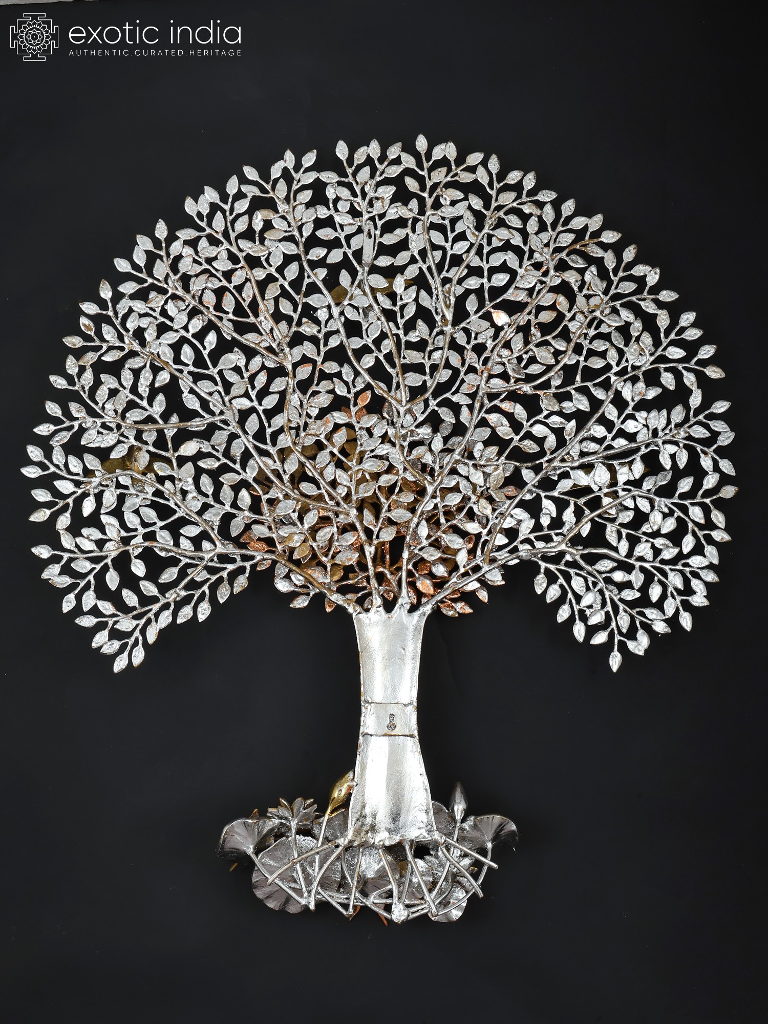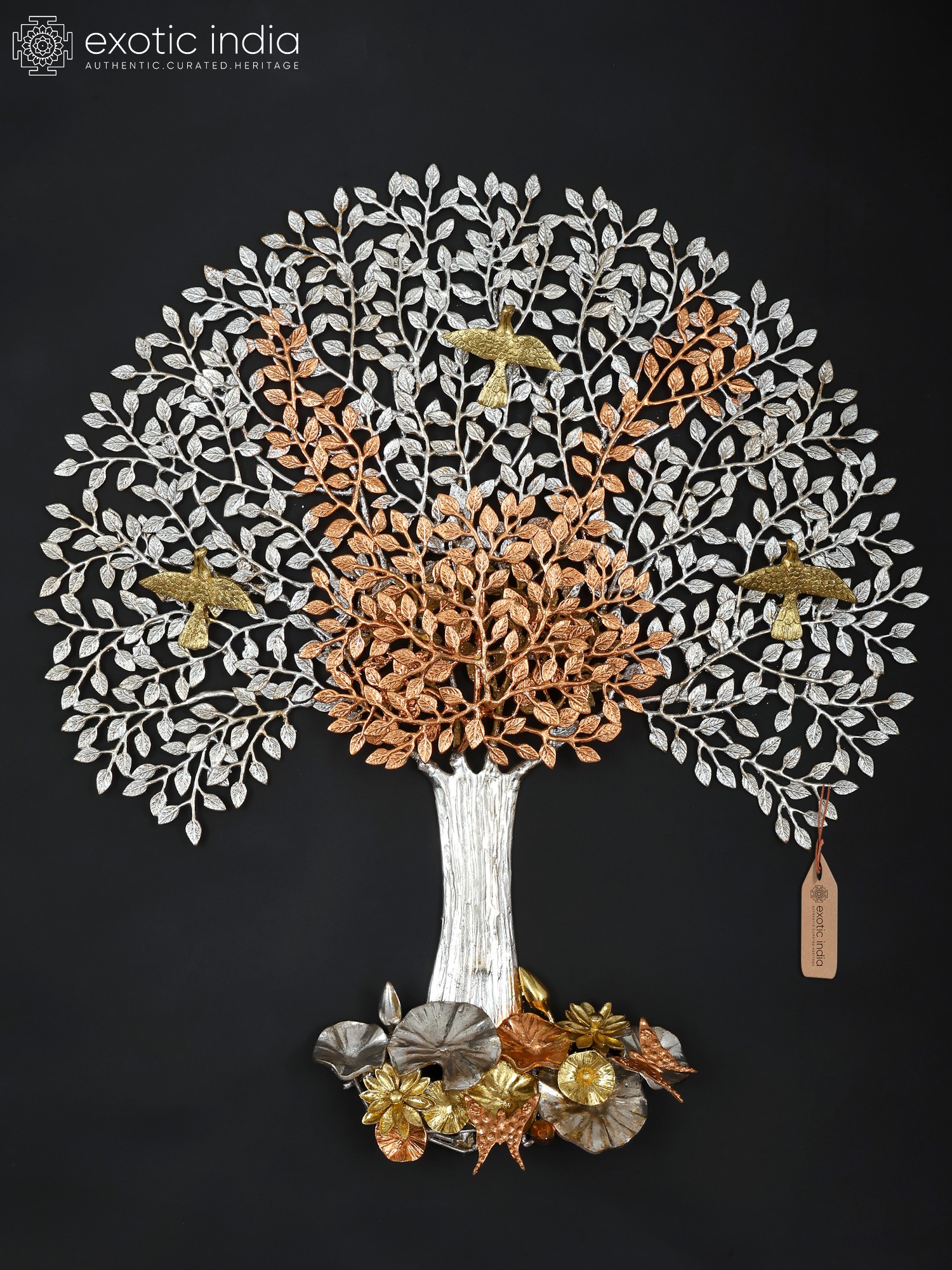 51" Large Wall Hanging Tree of Life with Beautiful Birds | Brass with Inlay Work