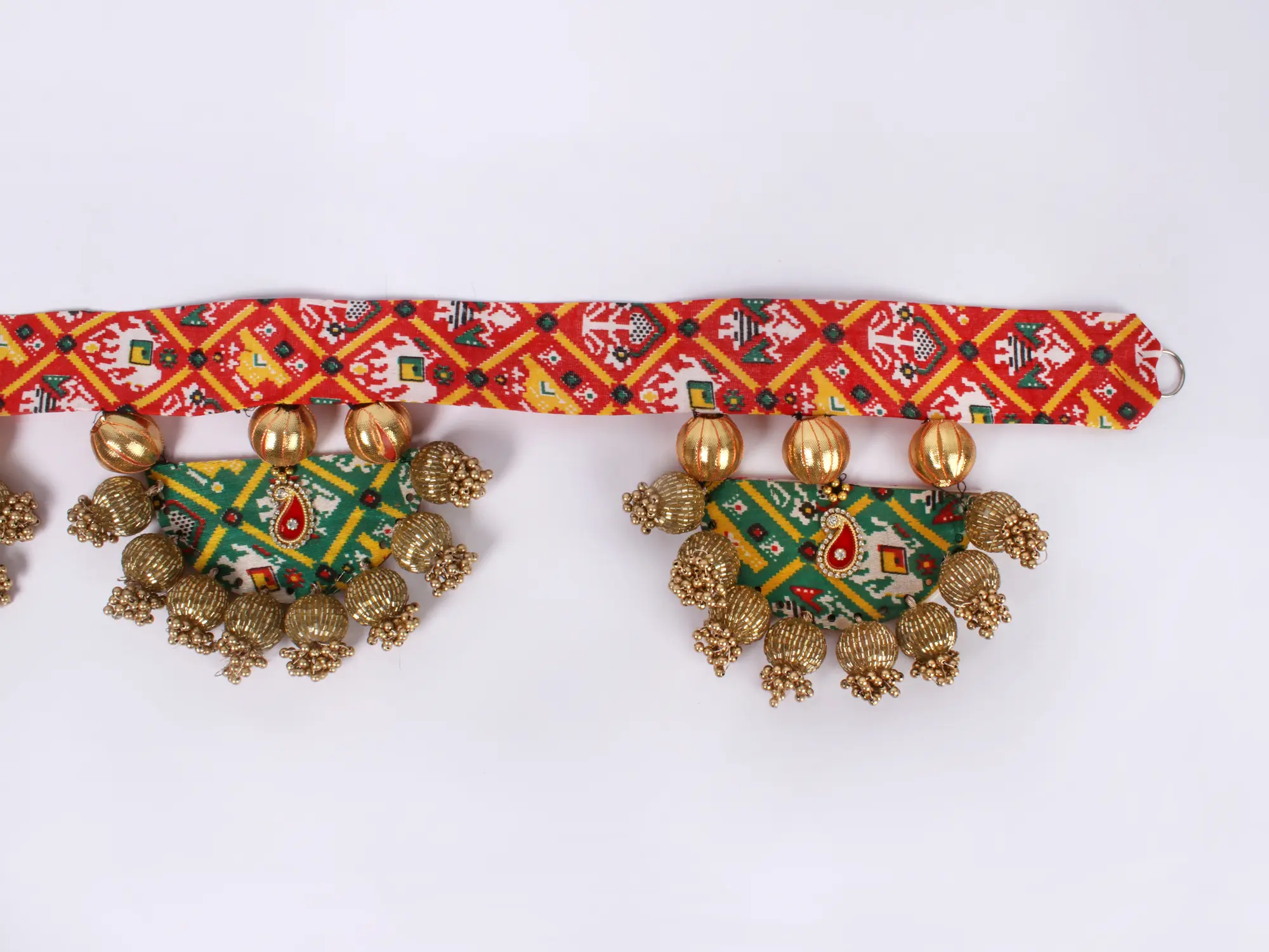 From the vibrant state of Gujarat comes this handmade toran—a doorway embellishment that transcends aesthetics. The beadwork and colourful threads celebrate festivity, positivity, and community. Hang it during festivals, weddings, or simply as a year-round adornment. As guests cross your threshold, let the toran shower blessings upon them. It’s more than decoration; it’s a bridge between homes and hearts.