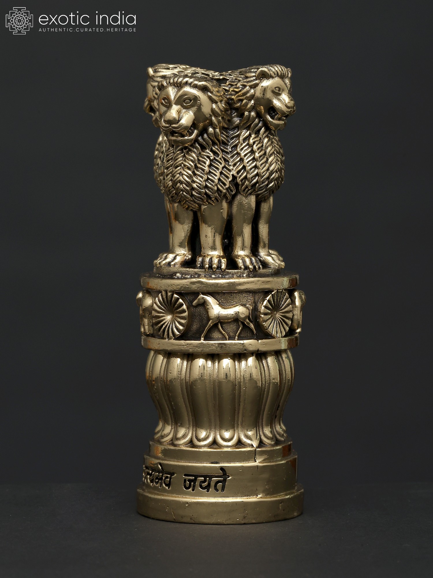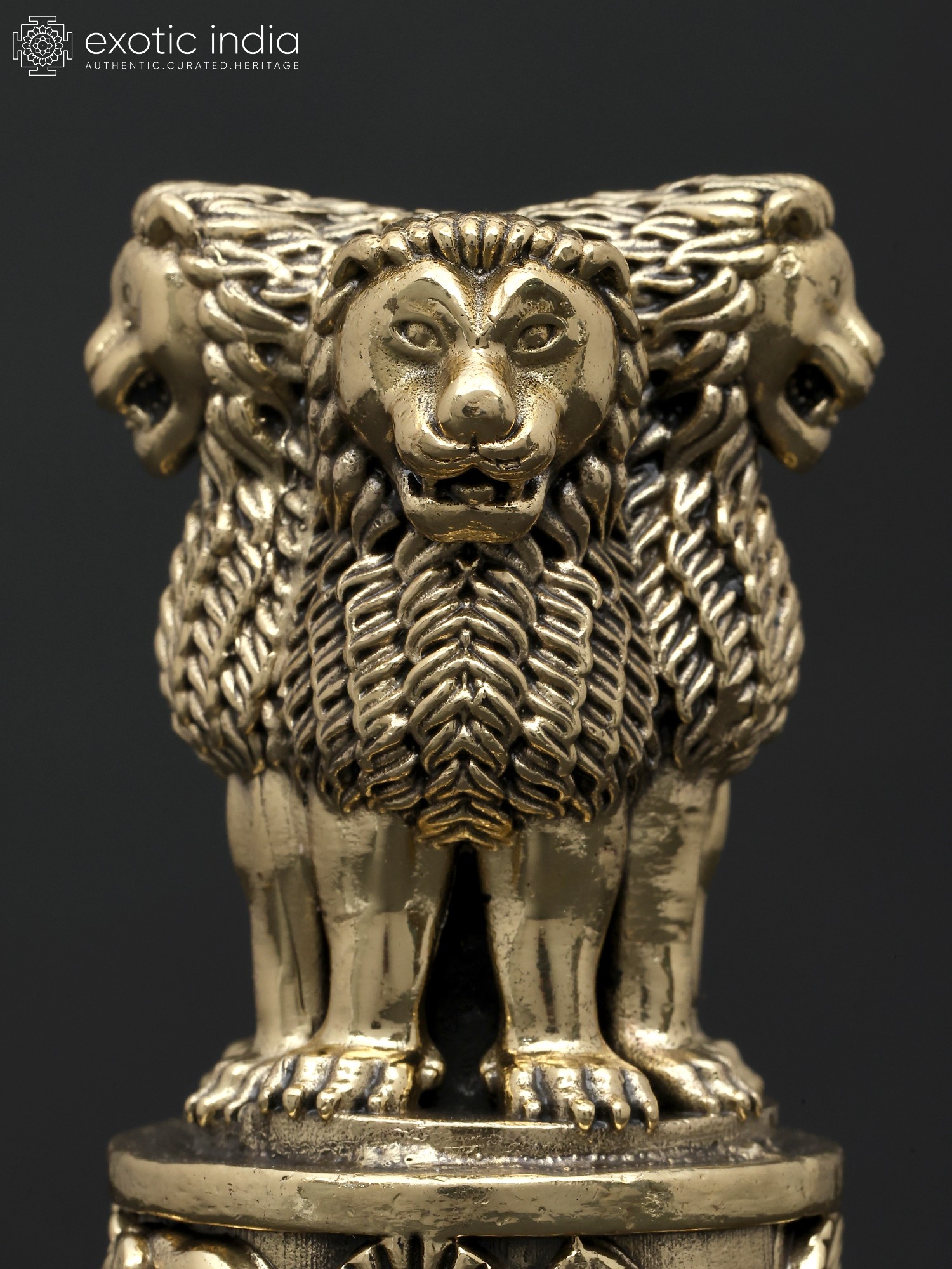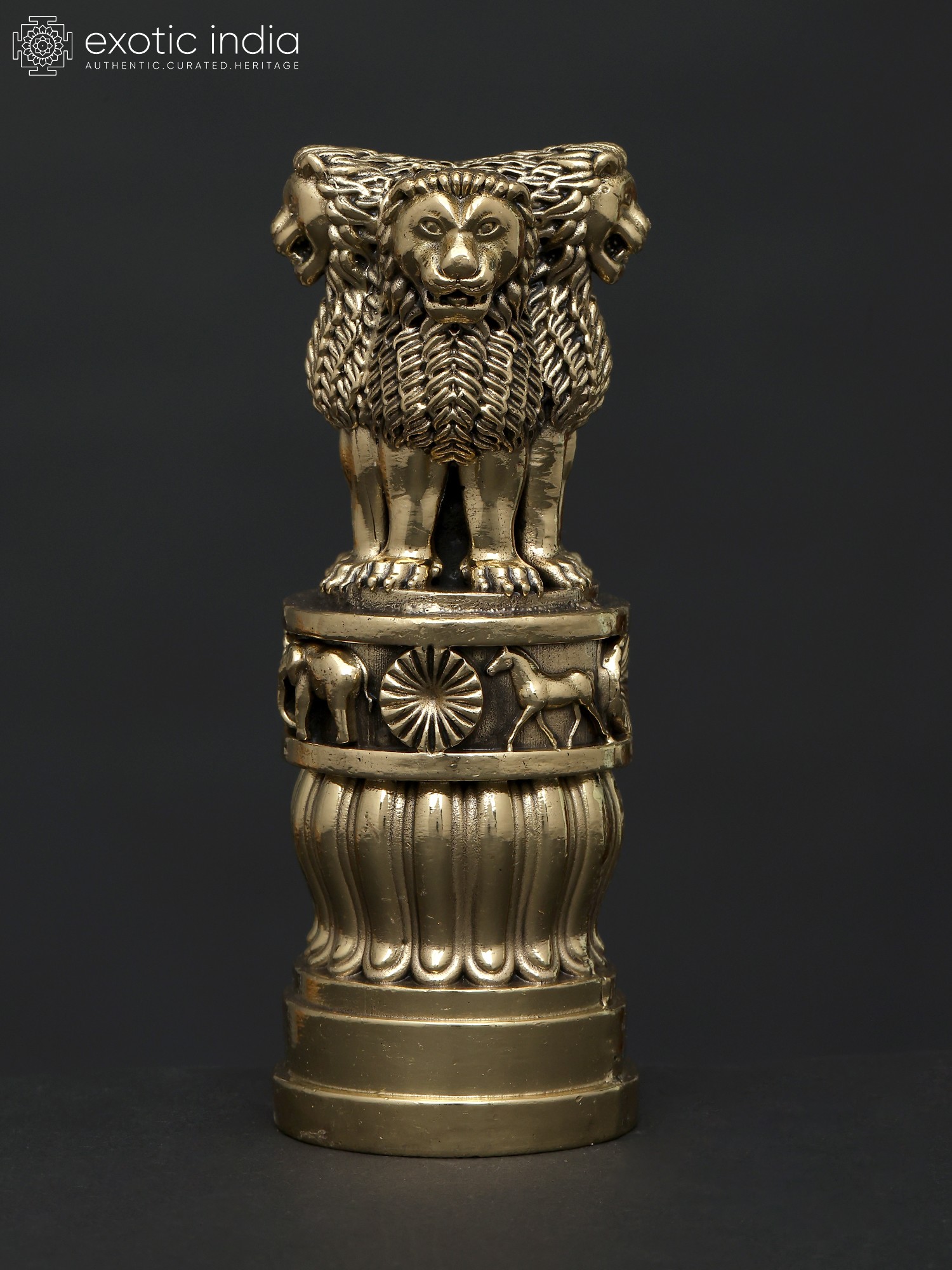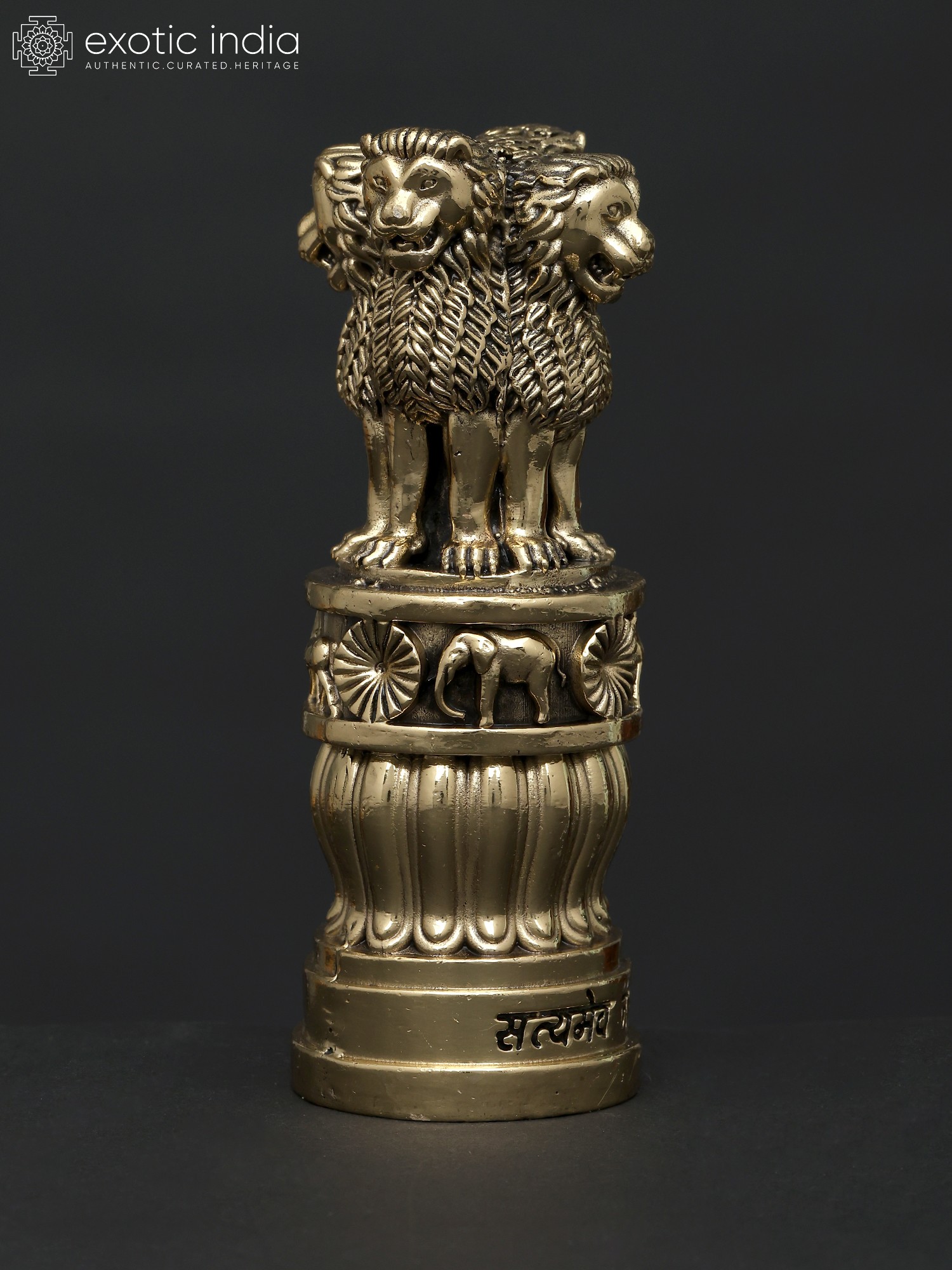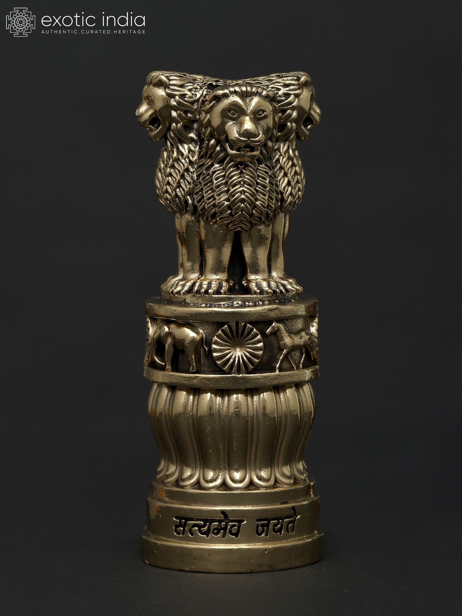 9" Ashoka Stambh - The National Emblem of India | Brass and Wood