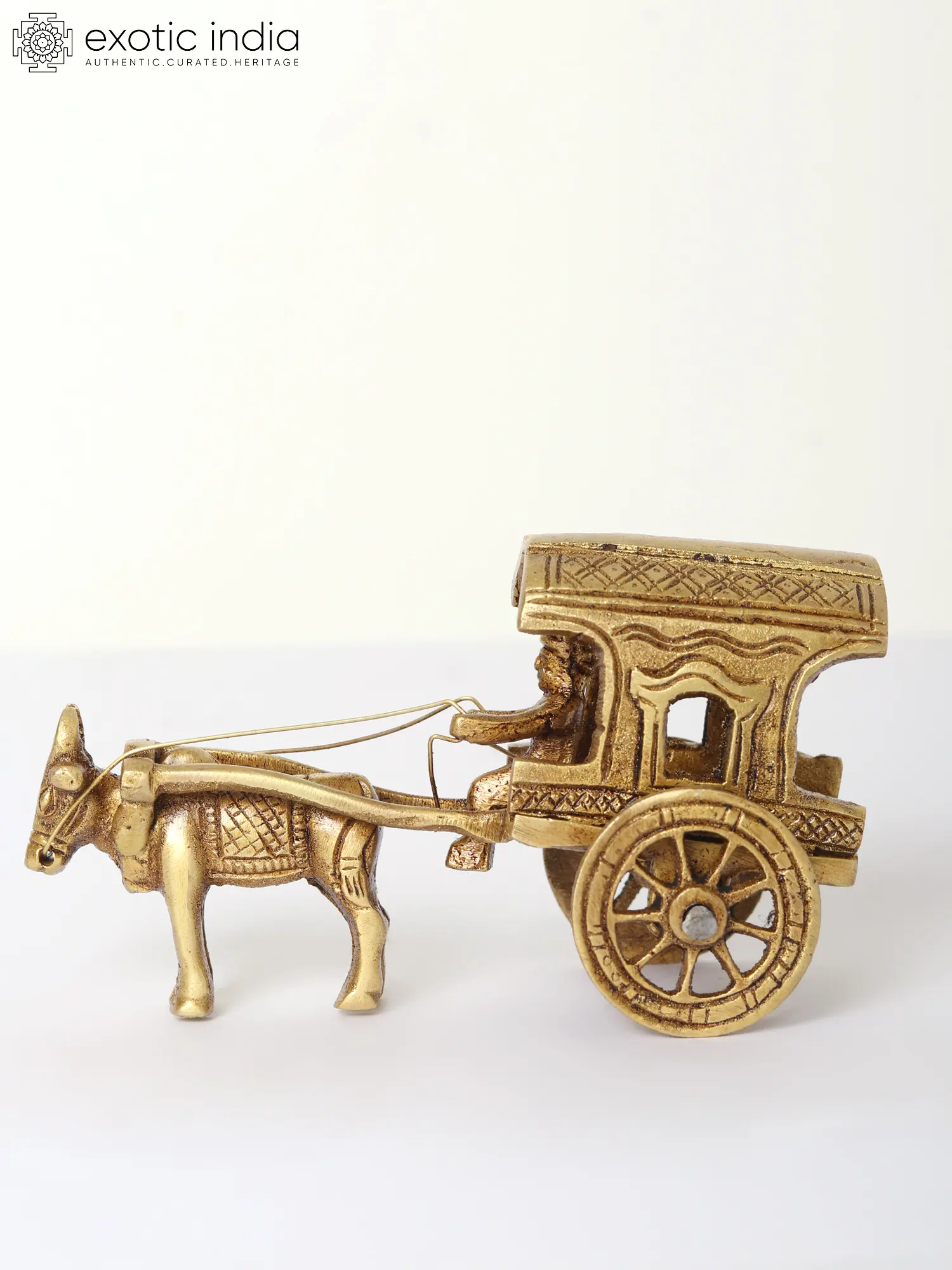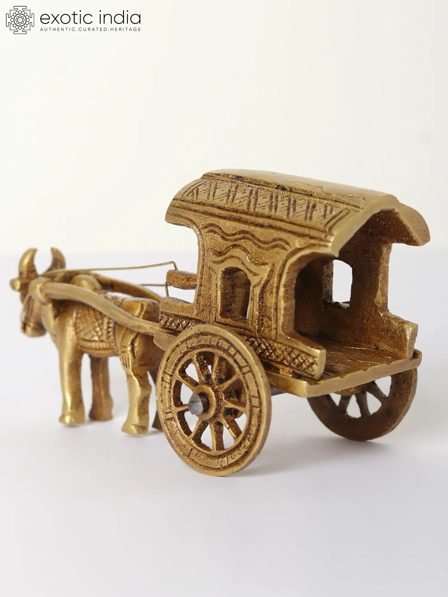 One of the first things to catch the eye of a visitor in the rural landscape of India is the bullock cart or Bail Gaadi, a traditional mode of transportation in villages of India and a symbol of the simple and sustainable lifestyle of the people. This brass decorative small bullock cart is an element of folk aesthetics for your space, bringing the mundane bullock cart to your center table or workspace, adding to it an exotic touch of India.