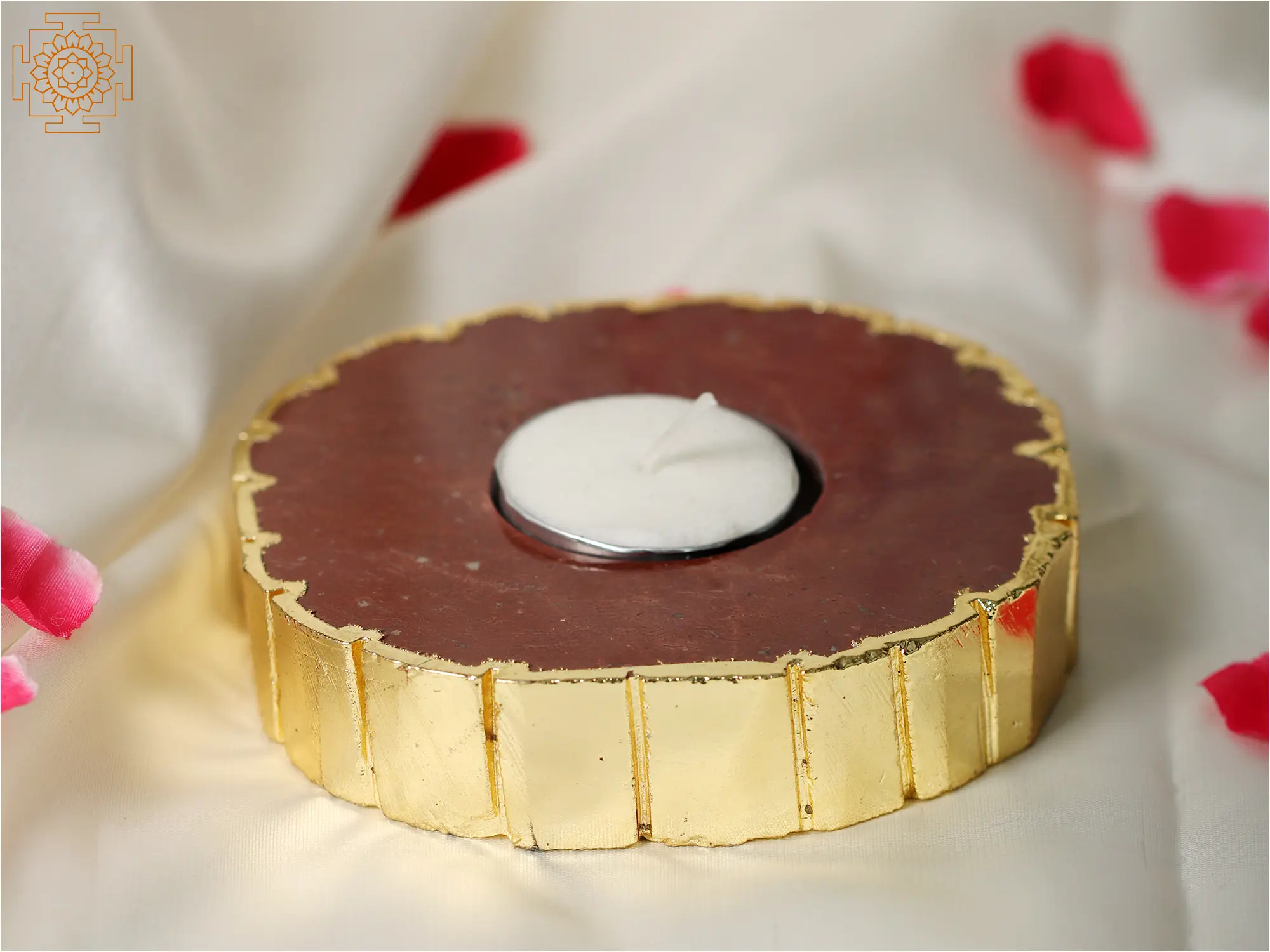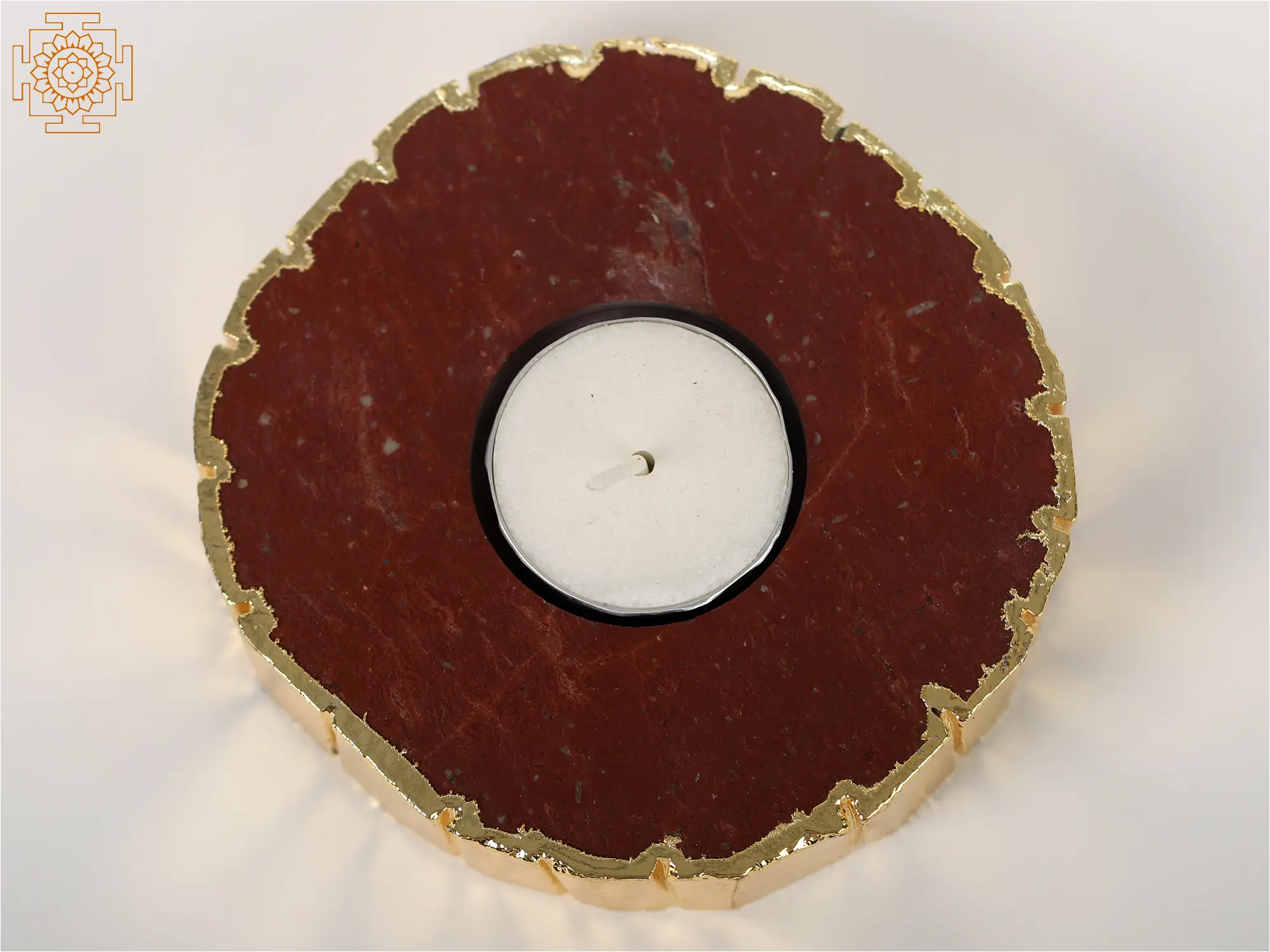 While the majority of people seek complexity, a small few prefer simple yet magnificent products. This Small Natural Red Jasper Crystal Candle Holder with Gold Edge is a simple yet elegant way to display candles. Although it looks like a simple pattern, it is difficult to manifest into a hard substance like Jasper Crystal. Its edge is polished in gold for a majestic look. This candle holder allows the light from the candle to spread across an internally elevated zone. This candle is a must-have for everyone who lives a royal life.
