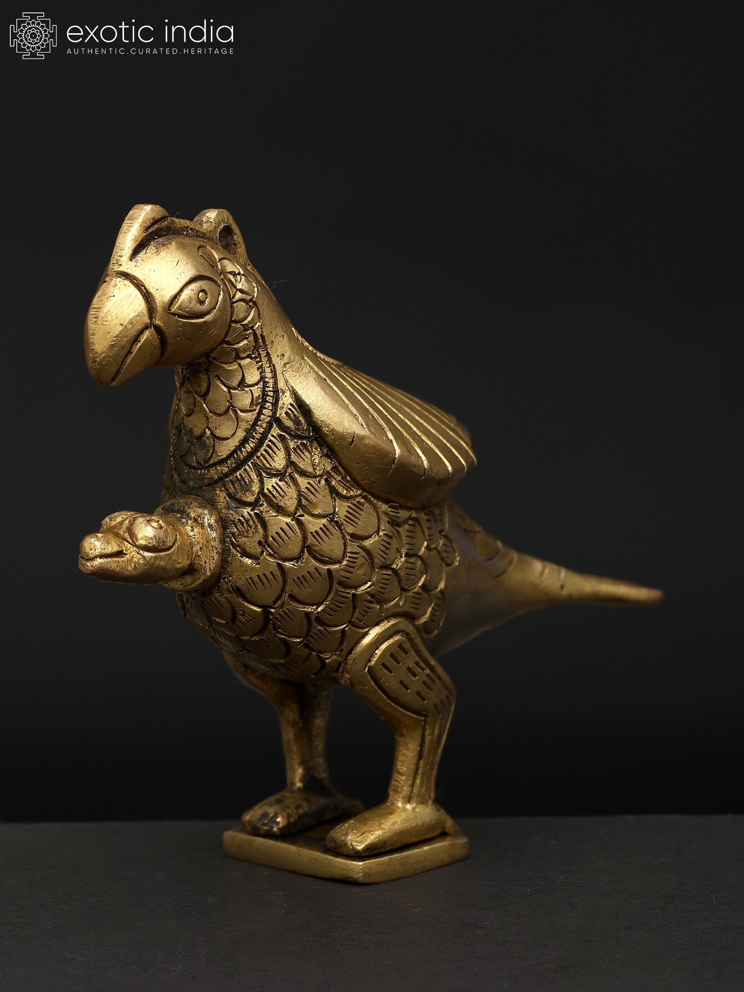 Crafted from high-quality brass, this statue is not only visually stunning but also built to last. The enduring nature of brass ensures the statue will retain its rich golden color and intricate details for many years. The dimensions of the parrot are perfectly proportioned, measuring 3.5 inches in height, 4.5 inches in width, and 1 inch in depth. This compact size allows for versatile placement options, ensuring it can find a perfect spot in any home or office setting. Its stable base makes it safe and secure for display, adding an extra layer of practicality to its artistic value. The material and size combine to create a collectible piece that perfectly balances artistry and functionality.