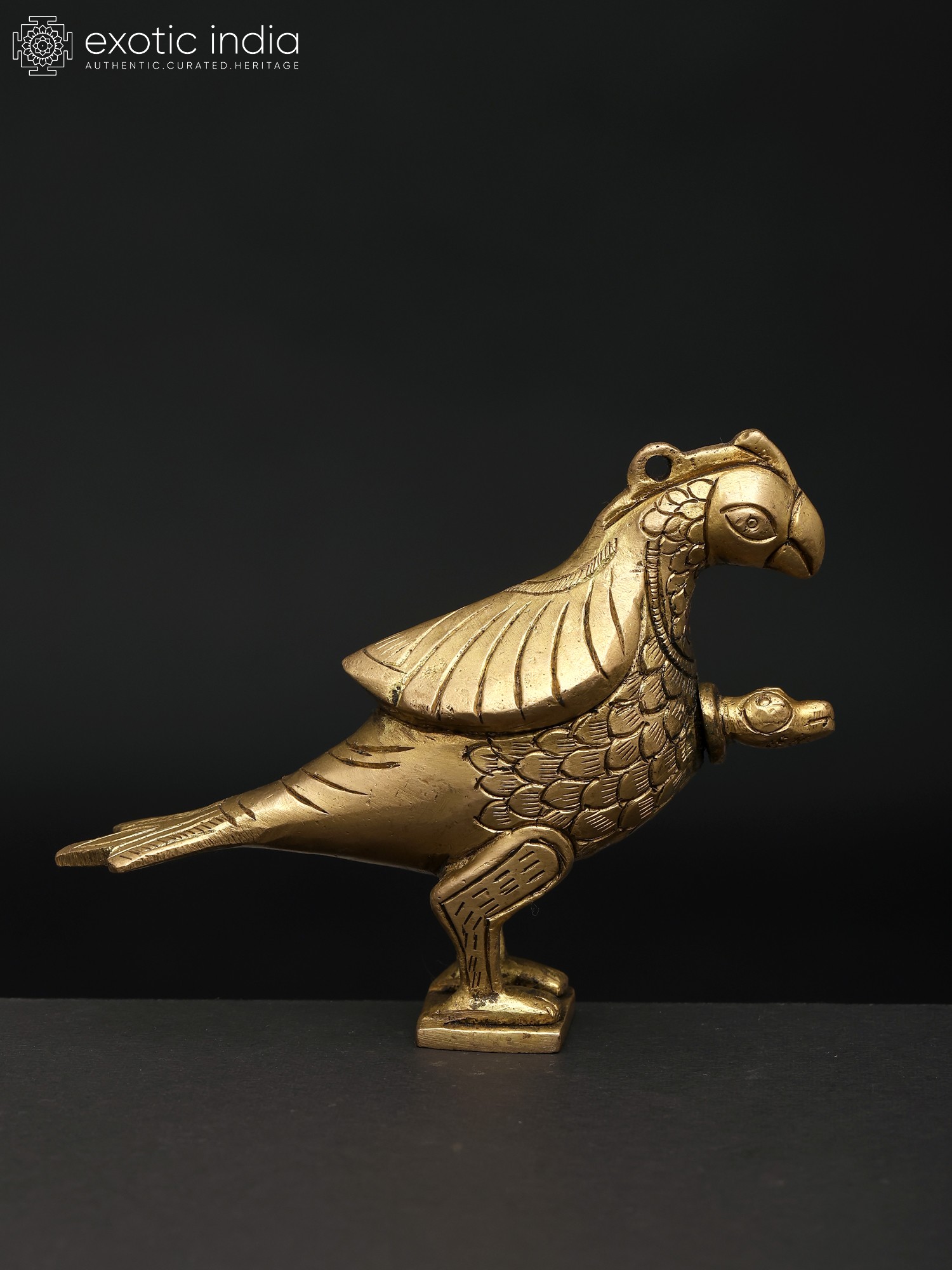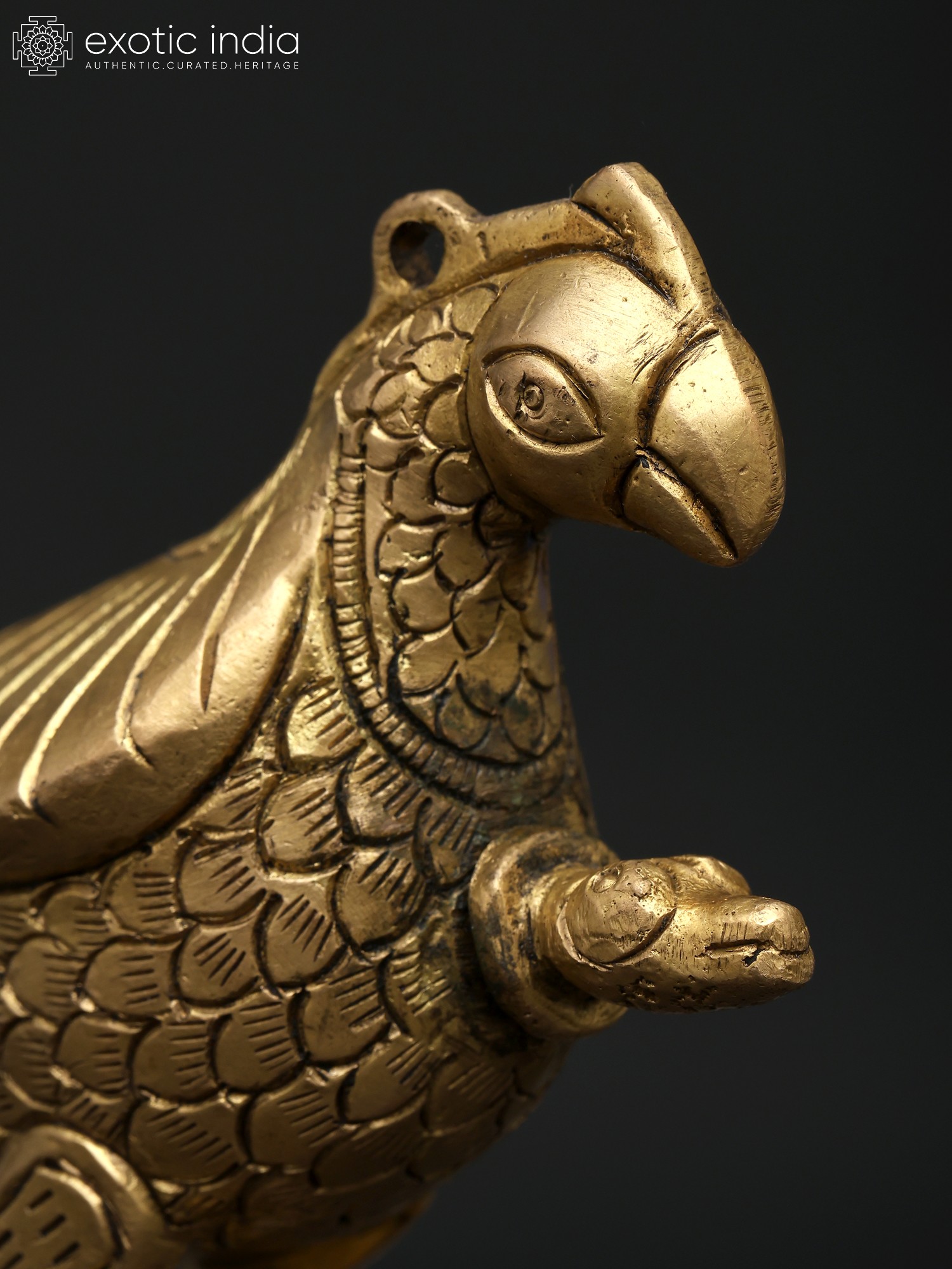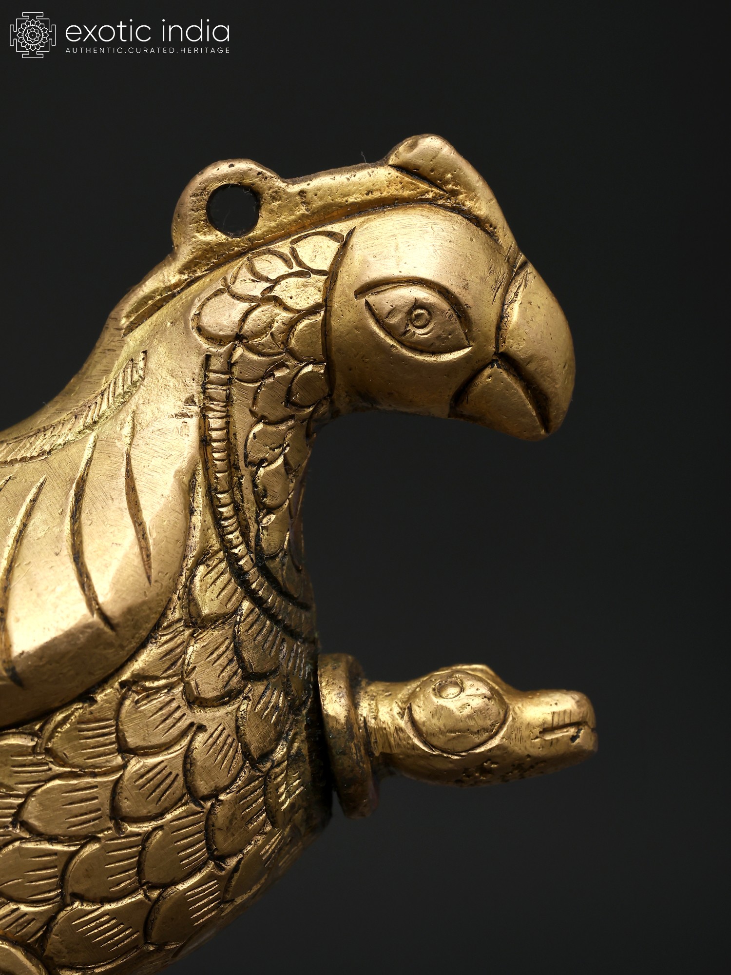 9" Pair of Parrots with Bell in Brass | Handmade | Made in India