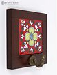 This 4" Wood Framed Ceramic Tile Wall Hook is more than just a functional piece; it’s a statement of refined taste and a celebration of Indian artistry. Meticulously crafted from high-quality ceramic, wood, and brass, this wall hook brings a unique charm to any space, adding a touch of exotic elegance to your home. The vibrant red ceramic tile, adorned with an intricate floral pattern in shades of green, yellow, and blue, is framed by rich, dark brown wood, creating a visually striking contrast. The antique brass hook adds a touch of vintage glamour, completing the piece's exquisite design.