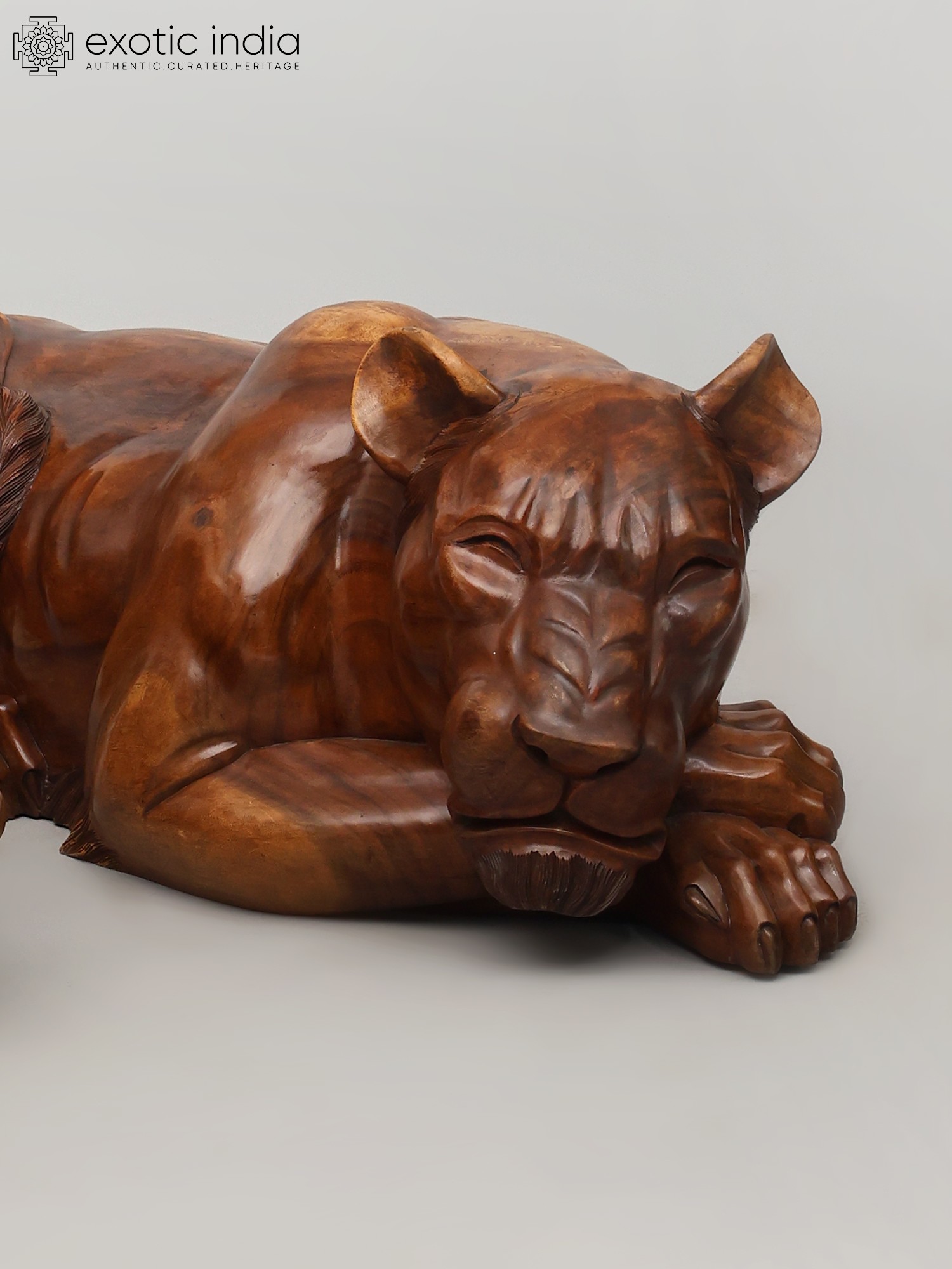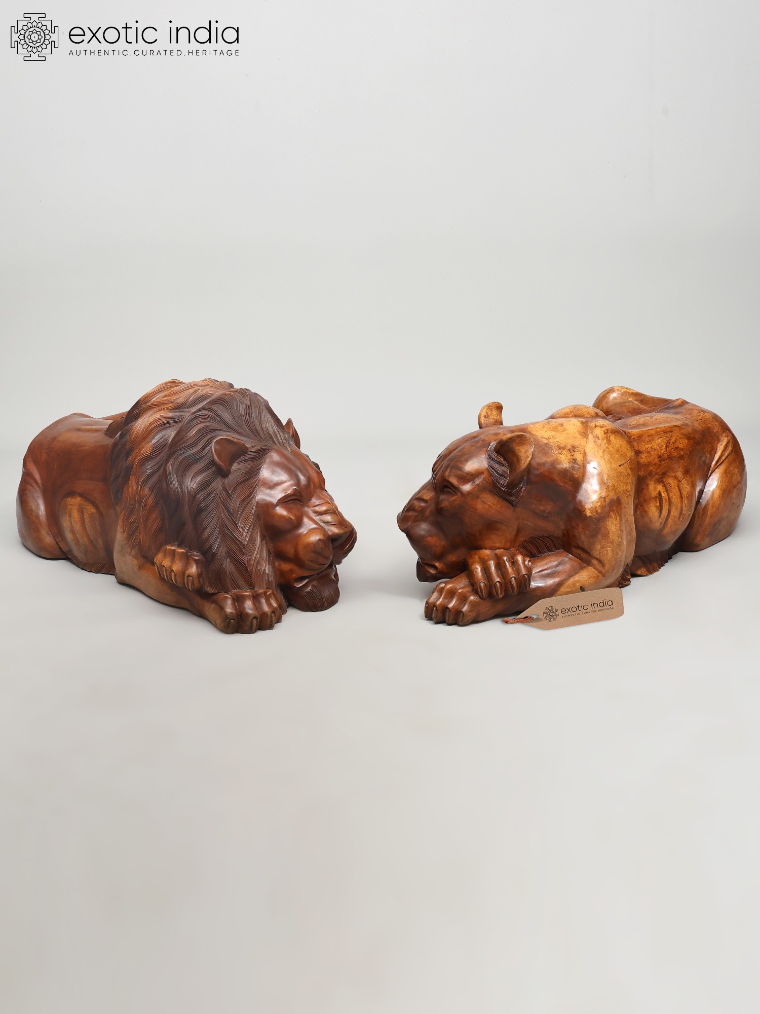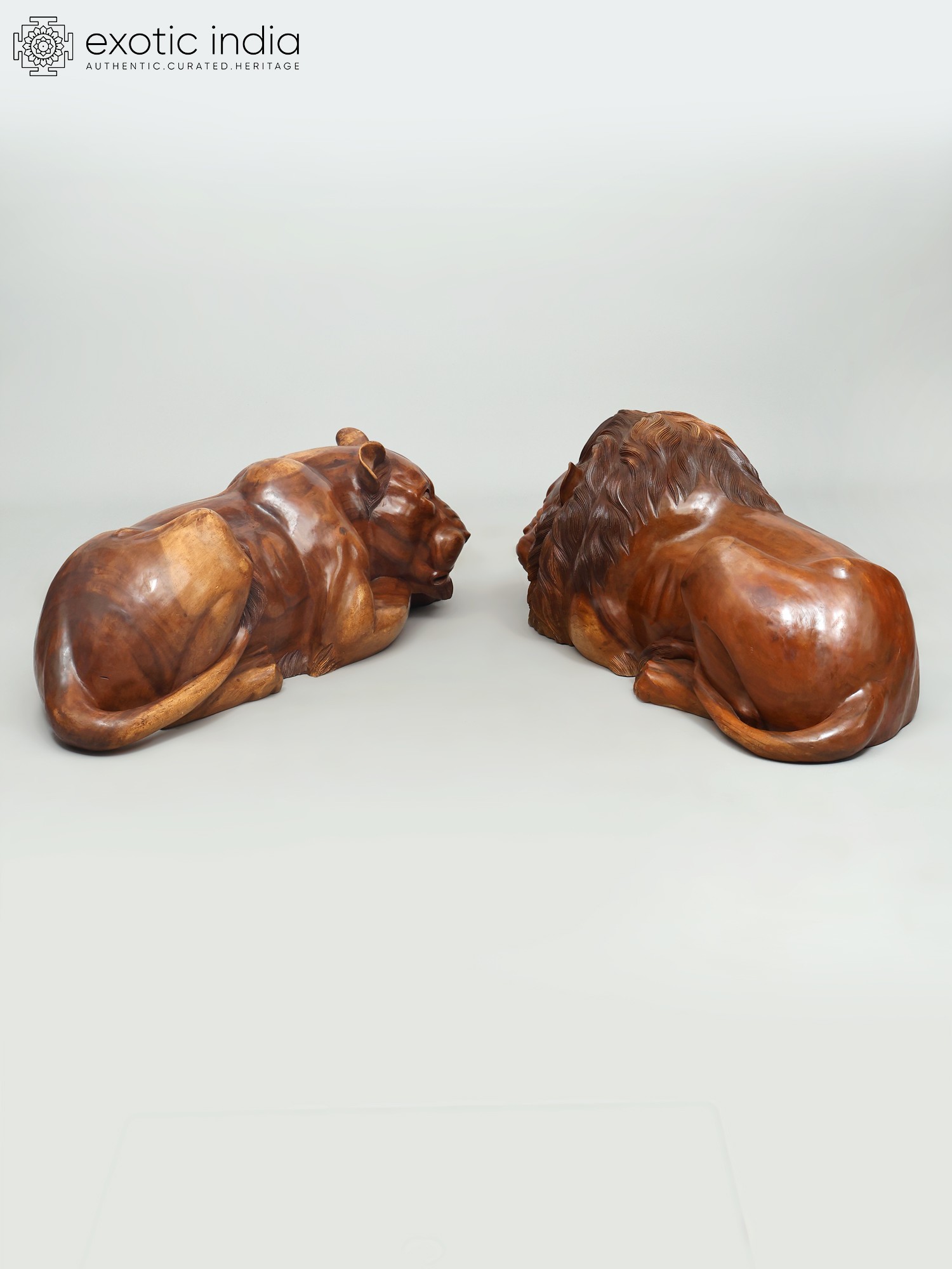 40" Regal King & Queen of The Jungle - Lion & Lioness Wooden Sculpture Set | Decorative Showpiece