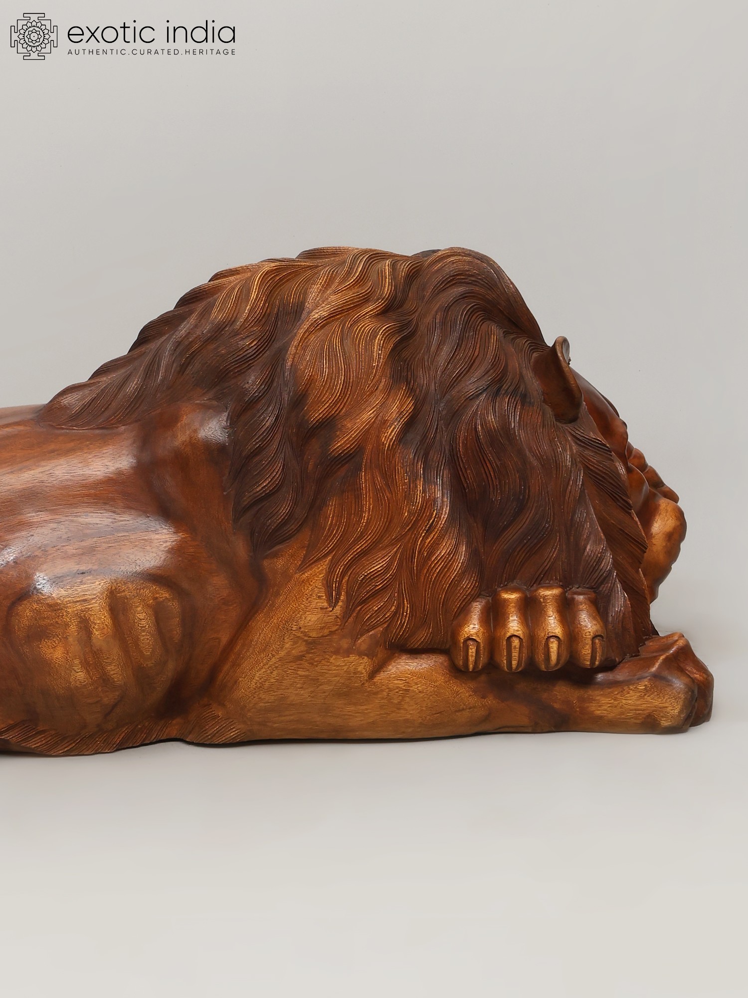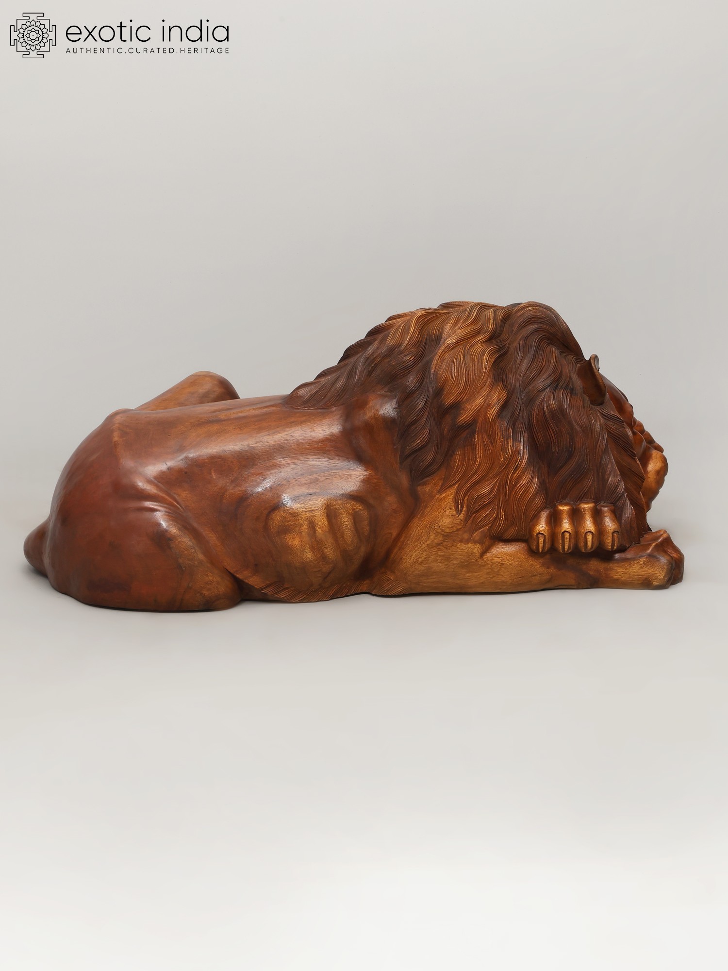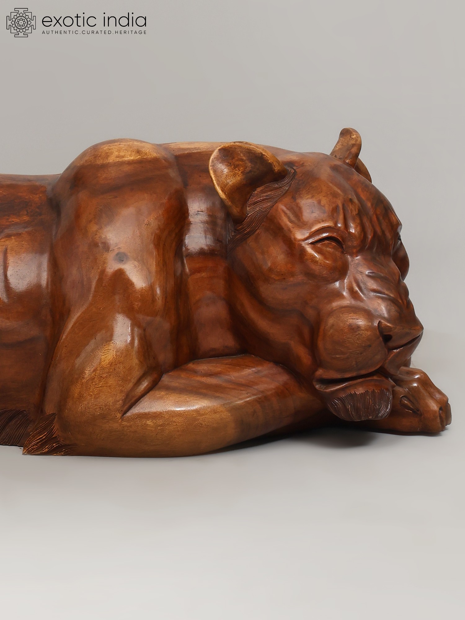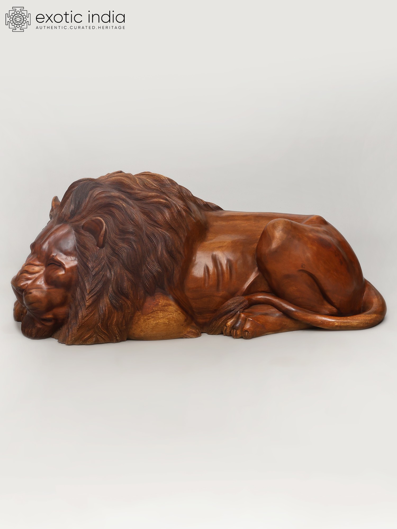 40" Regal King & Queen of The Jungle - Lion & Lioness Wooden Sculpture Set | Decorative Showpiece