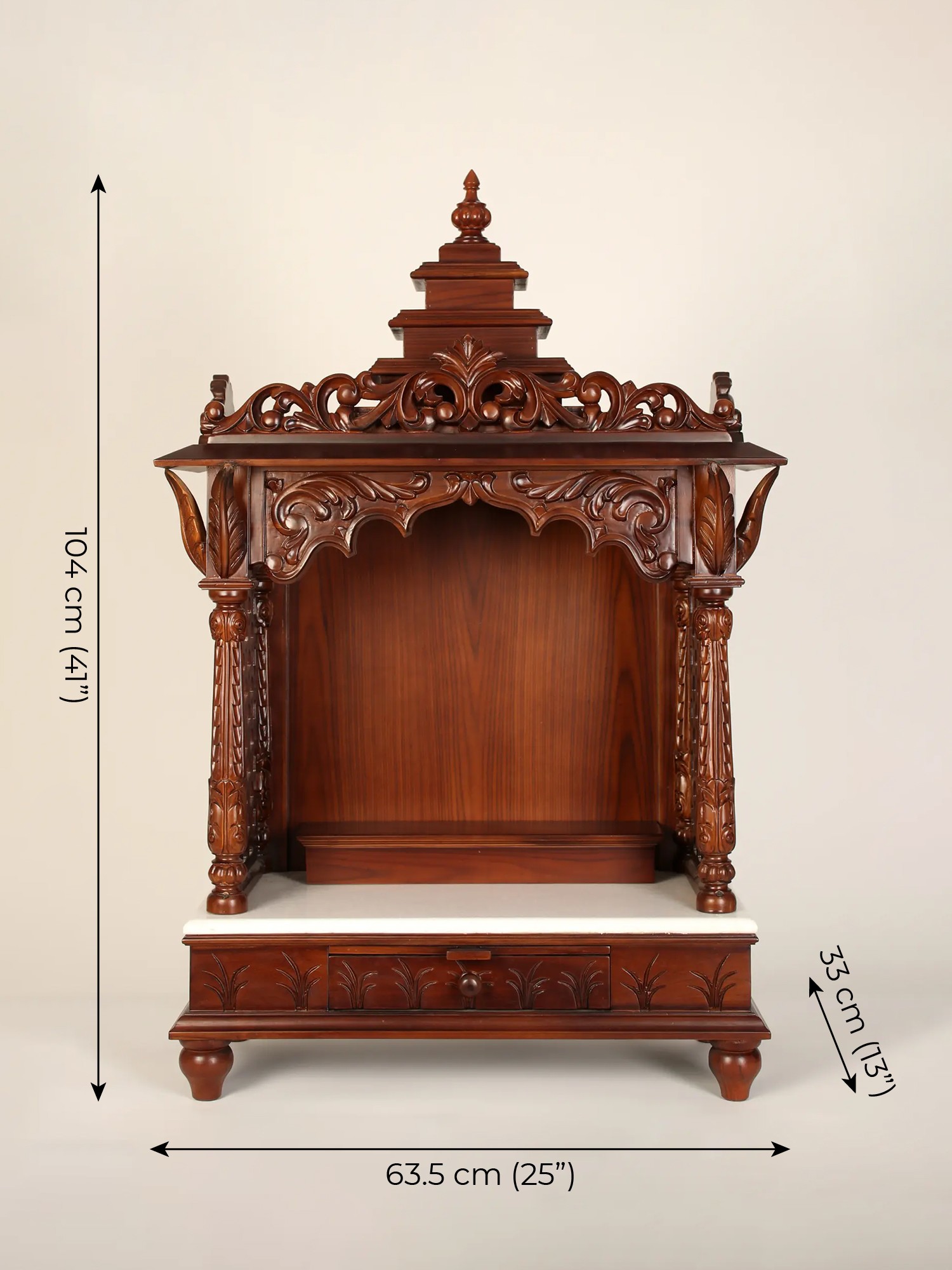 20" Temple-Altar with Prabhavali and a Drawer In Brass & Wood | Handmade