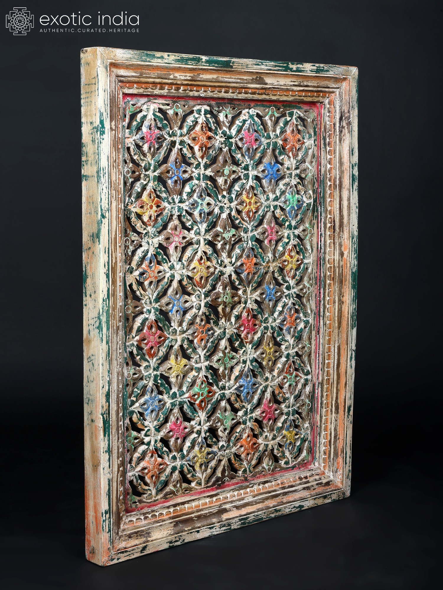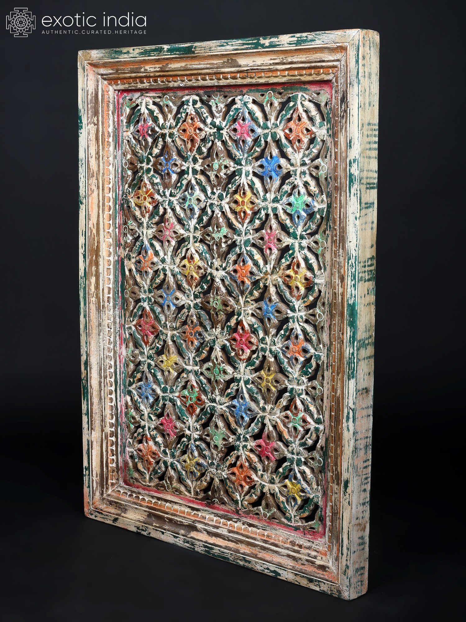 42" Wooden Jali Frame Wall Hanging Panel | Vintage Home Decor