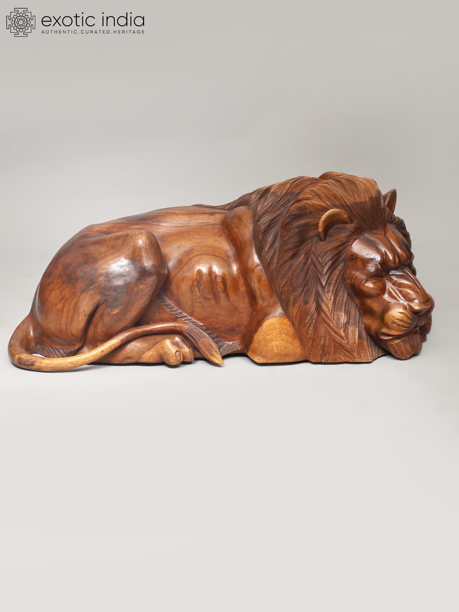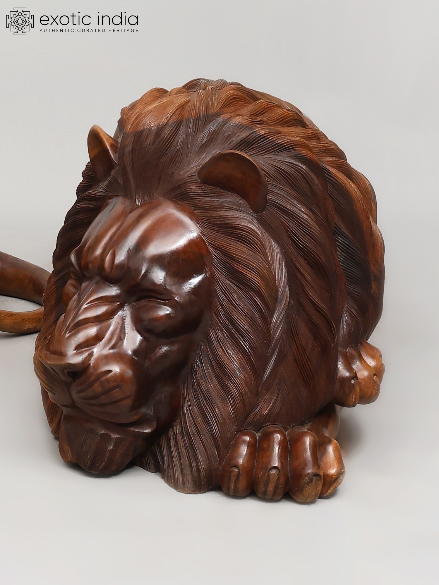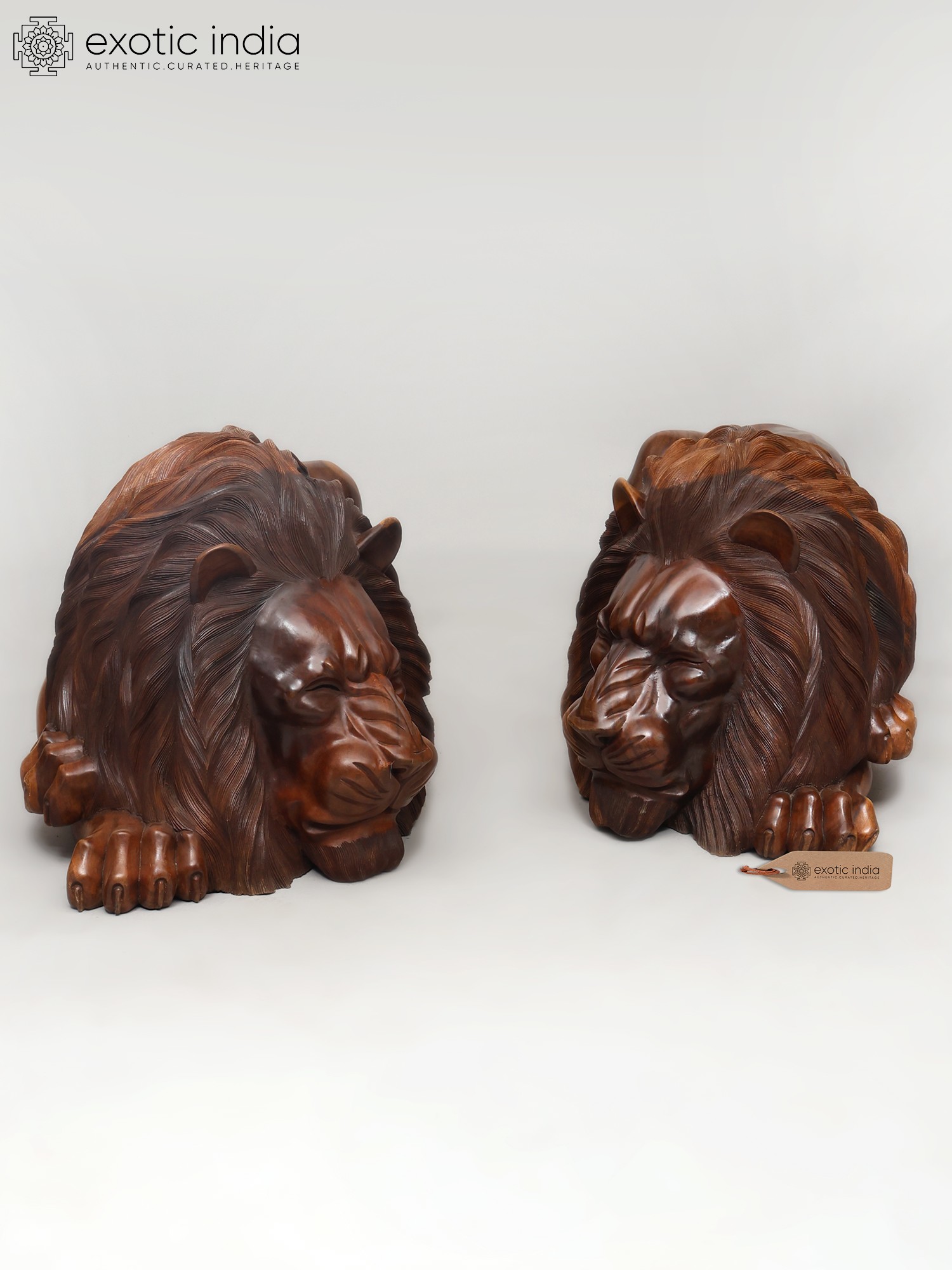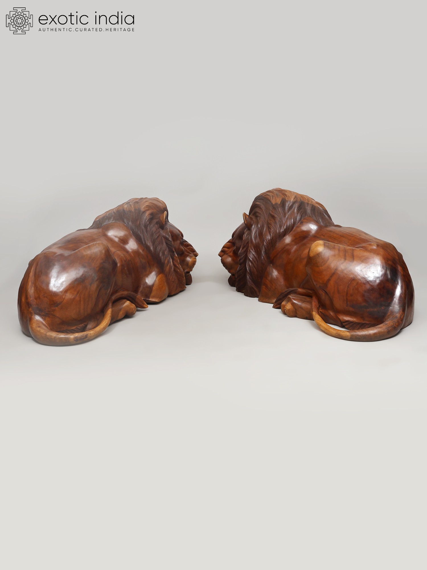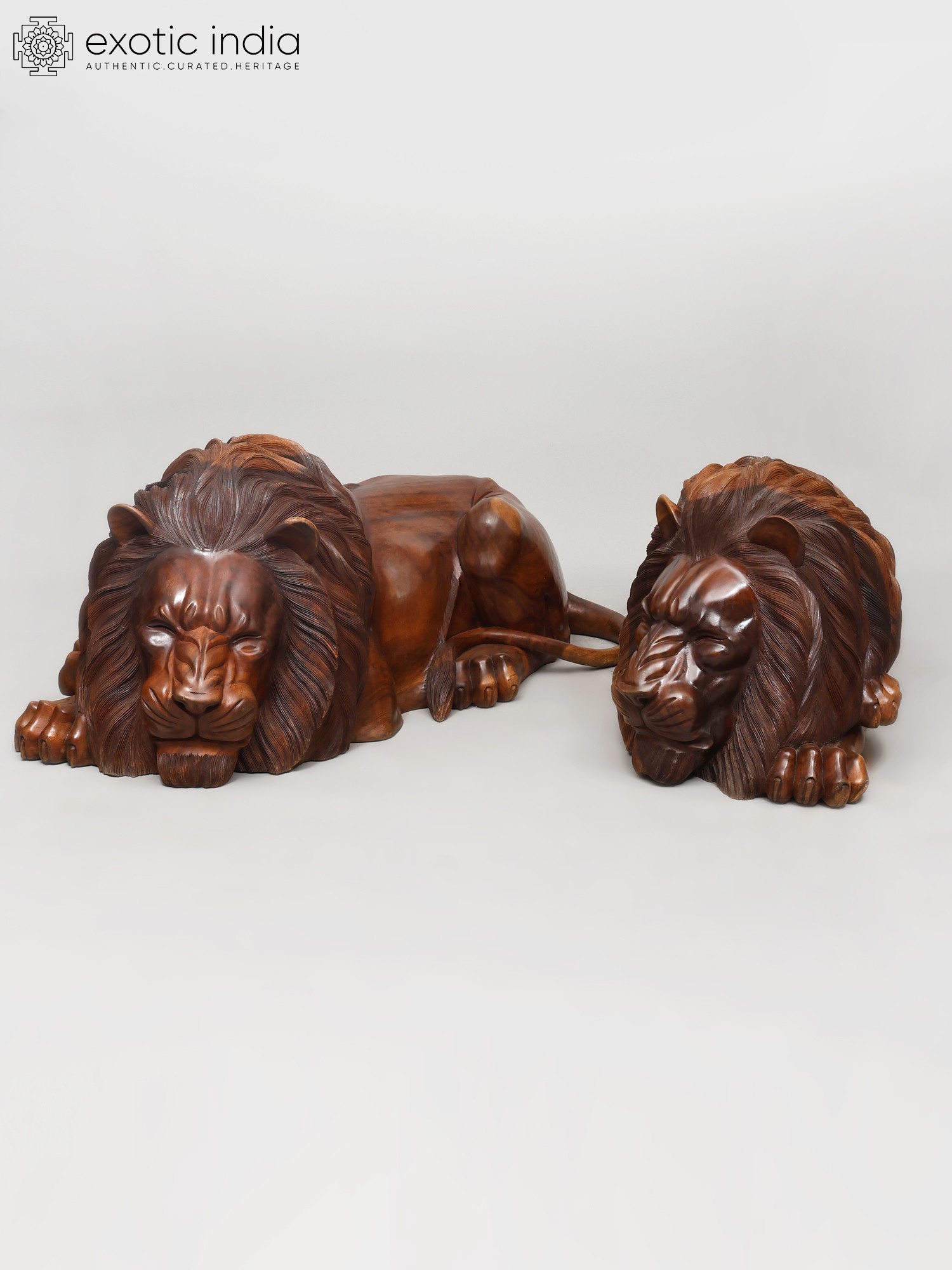 48" The King of Jungle: Large Size Pair of Lions | Wood Carved Statues | Home Decor
