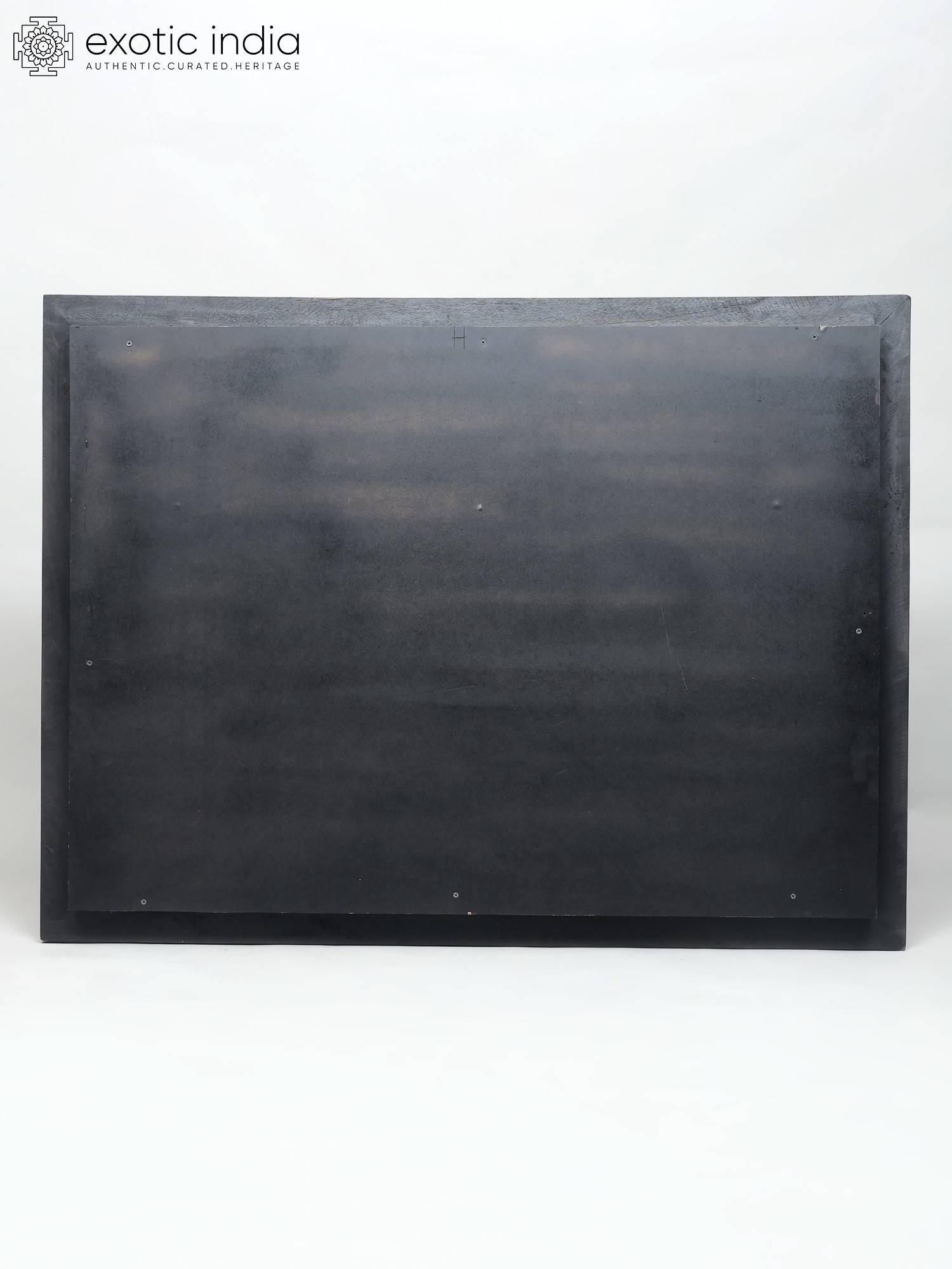 55" Pair of Kamadhenu Cow with Trishul | Wood Framed Brass Sculpture | Wall Hanging