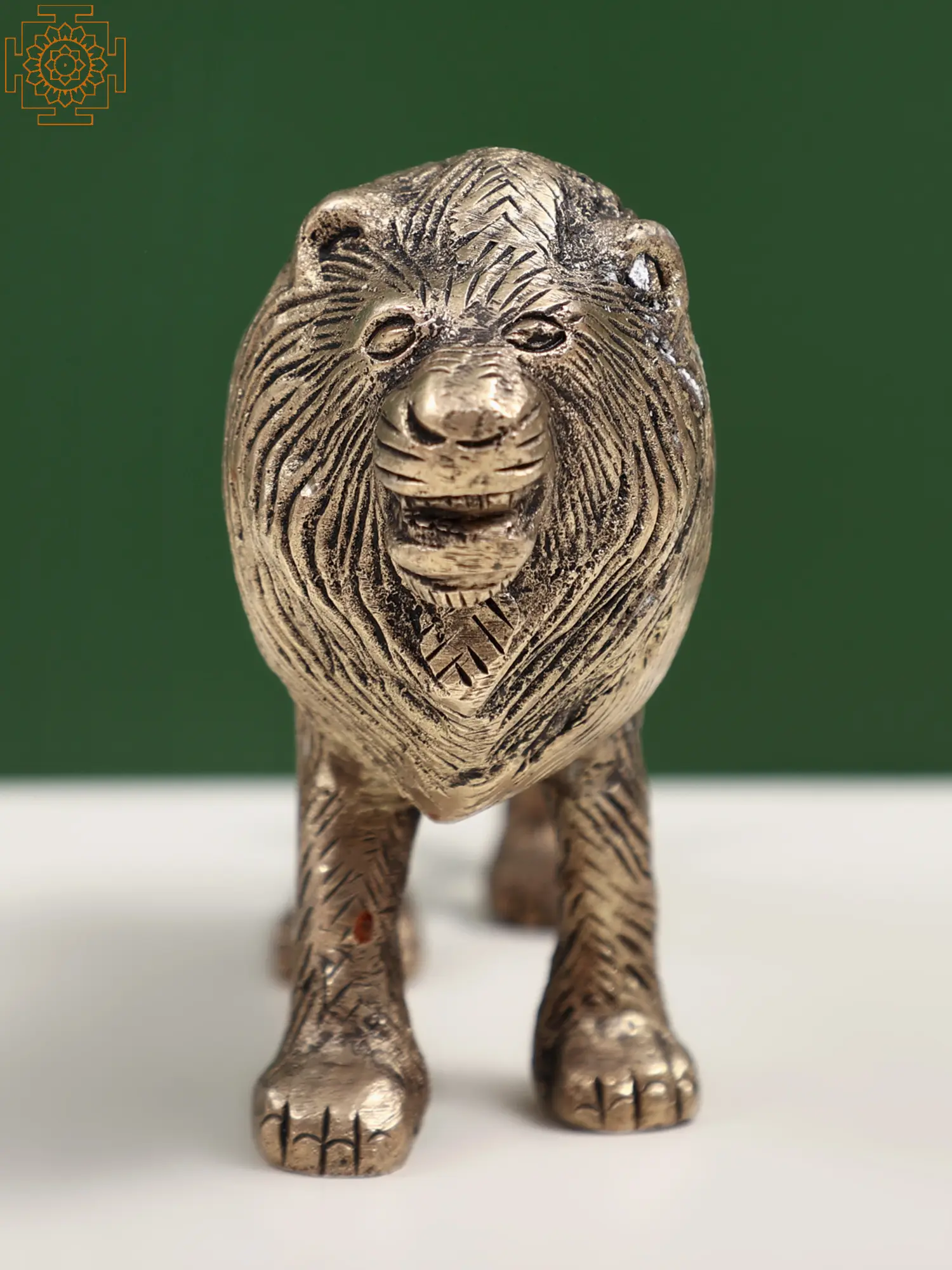 An embodiment of power, courage, and regal authority, this majestic lion captivates attention with its undeniable presence. Symbolizing strength and leadership, it serves as a tribute to the wild spirit within us all. Sculpted in brass, this artwork boasts durability and elegance, making it a perfect addition to any home or office space. Commanding admiration and inspiring greatness, this statue of the lion will surely adorn and enrich your space. Decorate your surroundings with this statue and awaken the inner lion within.