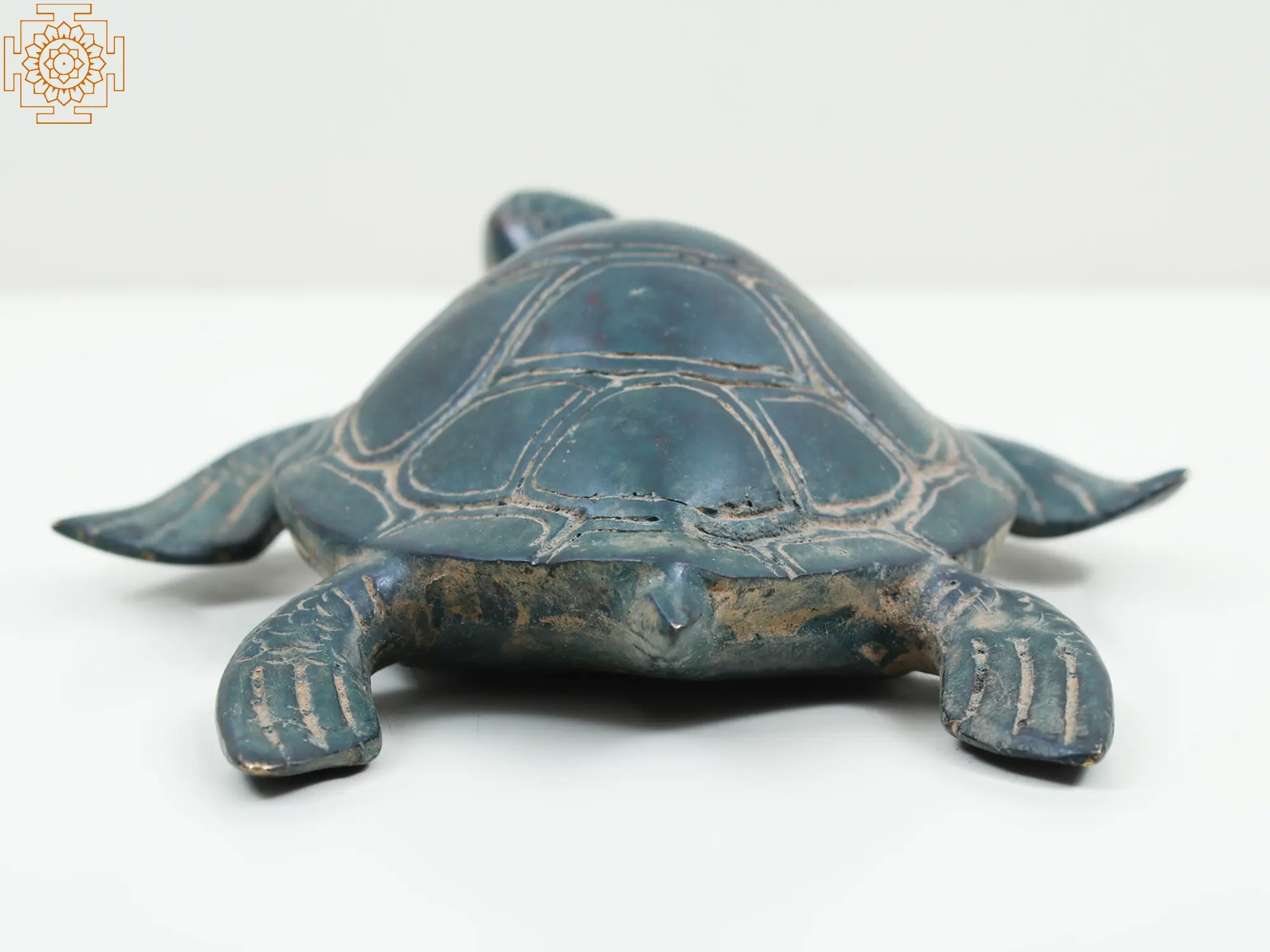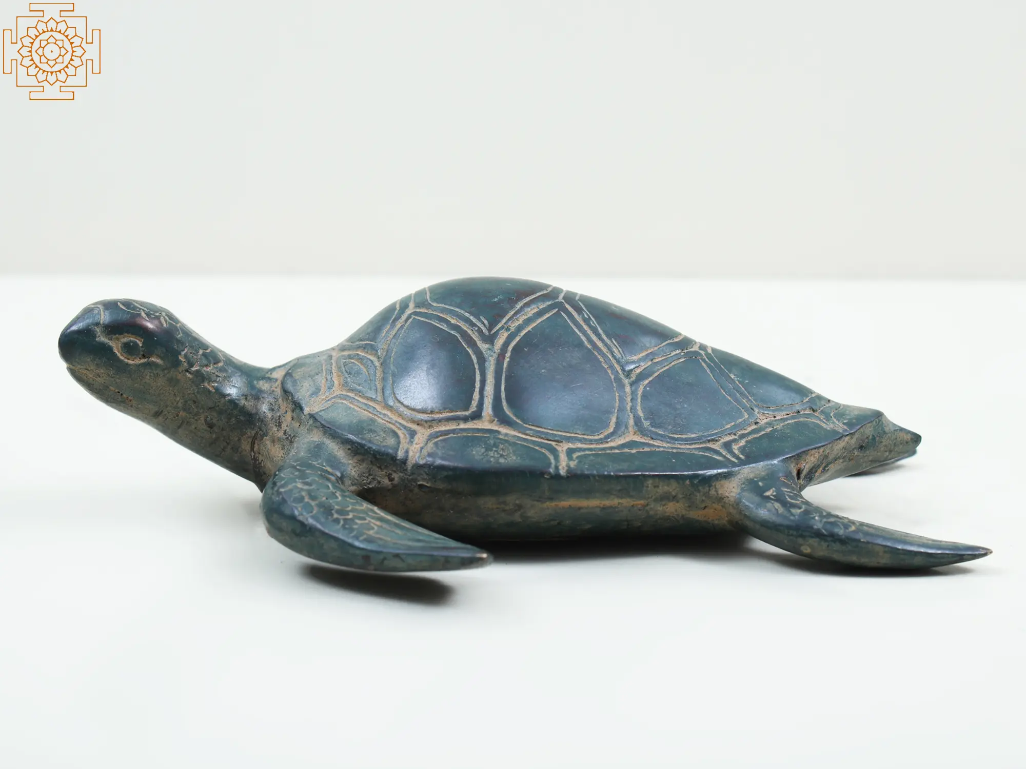 The turtle as a symbol tells us to be resolute and resilient in the face of adversity. The Hare and Tortoise tale by La Fontaine is well-known. It is an excellent illustration of the Tortoise's perseverance: in this narrative, we see not only his remarkable wisdom but also his strength and courage. The Turtle is also a symbol of balance in Hinduism and is known as the object that helped balance the mount Mandara during the Sagar Manthan. This Small Brass Turtle Figurine is created to keep people aware of the qualities of the Turle and be focused on their goal. The Vaastu Shatra advises keeping the Turtle statue in some areas of the house to bring balance and peace to the family.