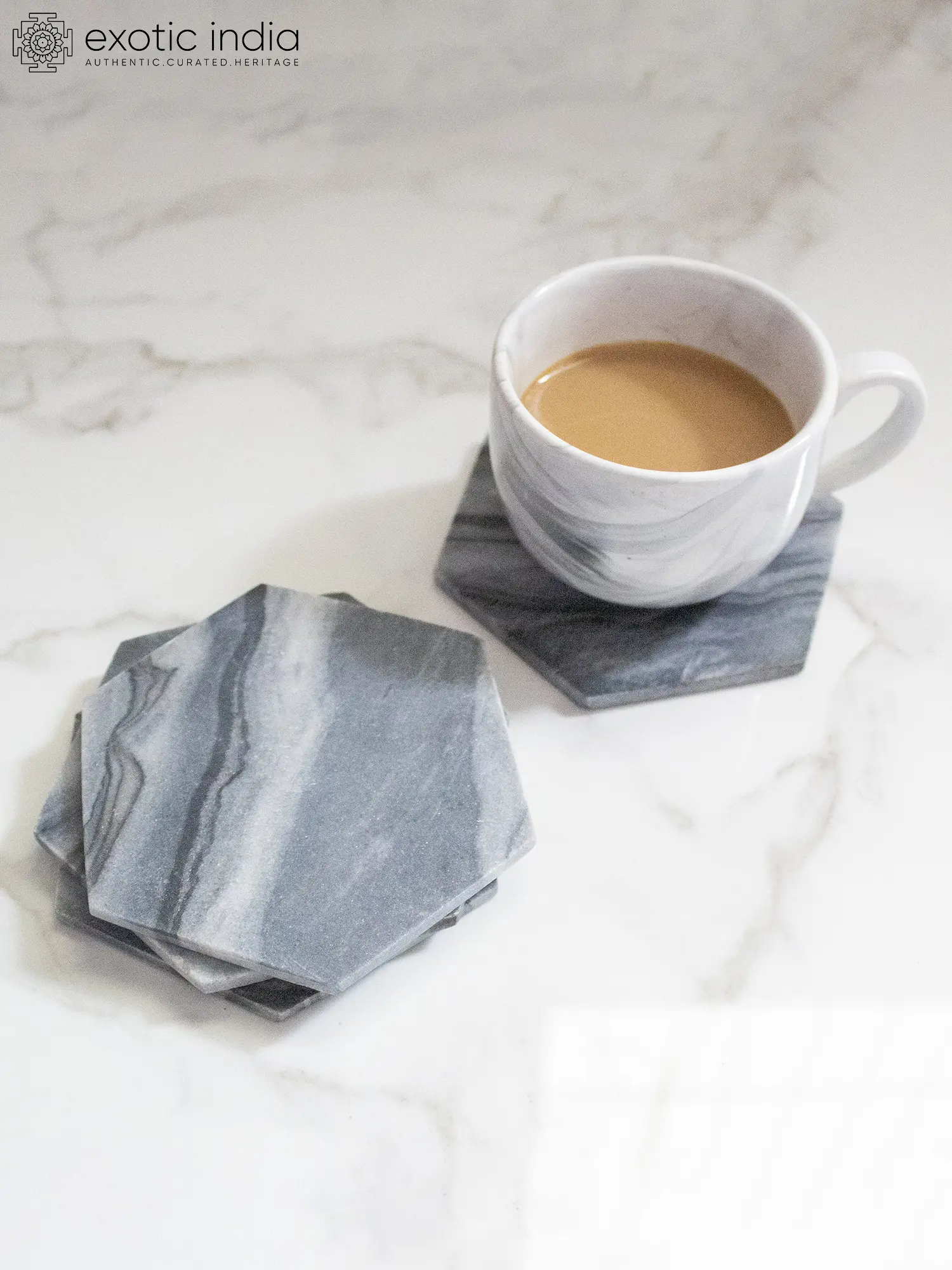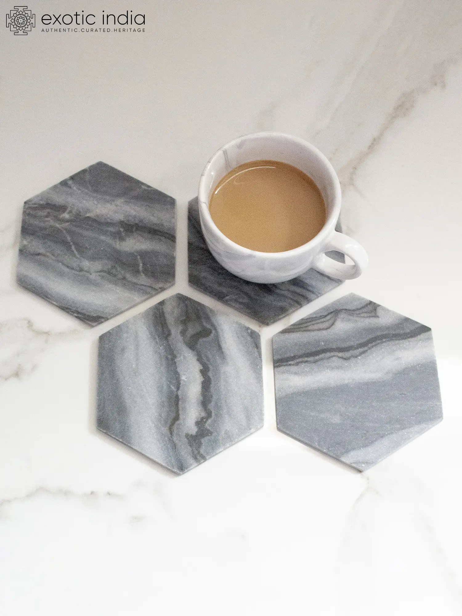 These coasters are not only visually appealing but also highly functional. Their purpose is to shield your furniture from unsightly water rings and heat damage, ensuring your tables and countertops remain pristine for years to come. The solid marble construction provides a stable and secure base for your glasses, mugs, and pitchers. The hexagonal shape adds a touch of modern geometric interest, making them a stylish addition to any coffee table, dining table, or bar area. This unique form factor gives them a contemporary edge, distinguishing them from traditional square or round coasters.