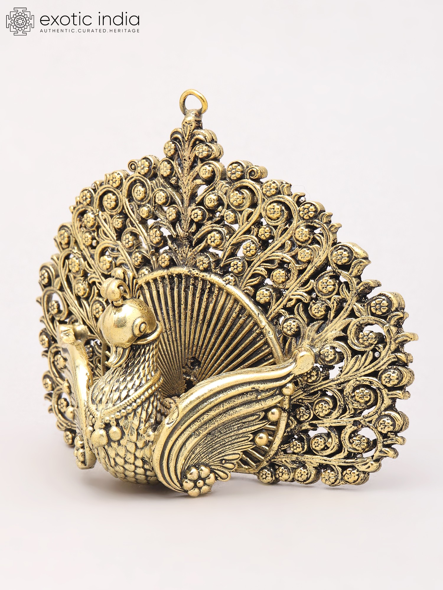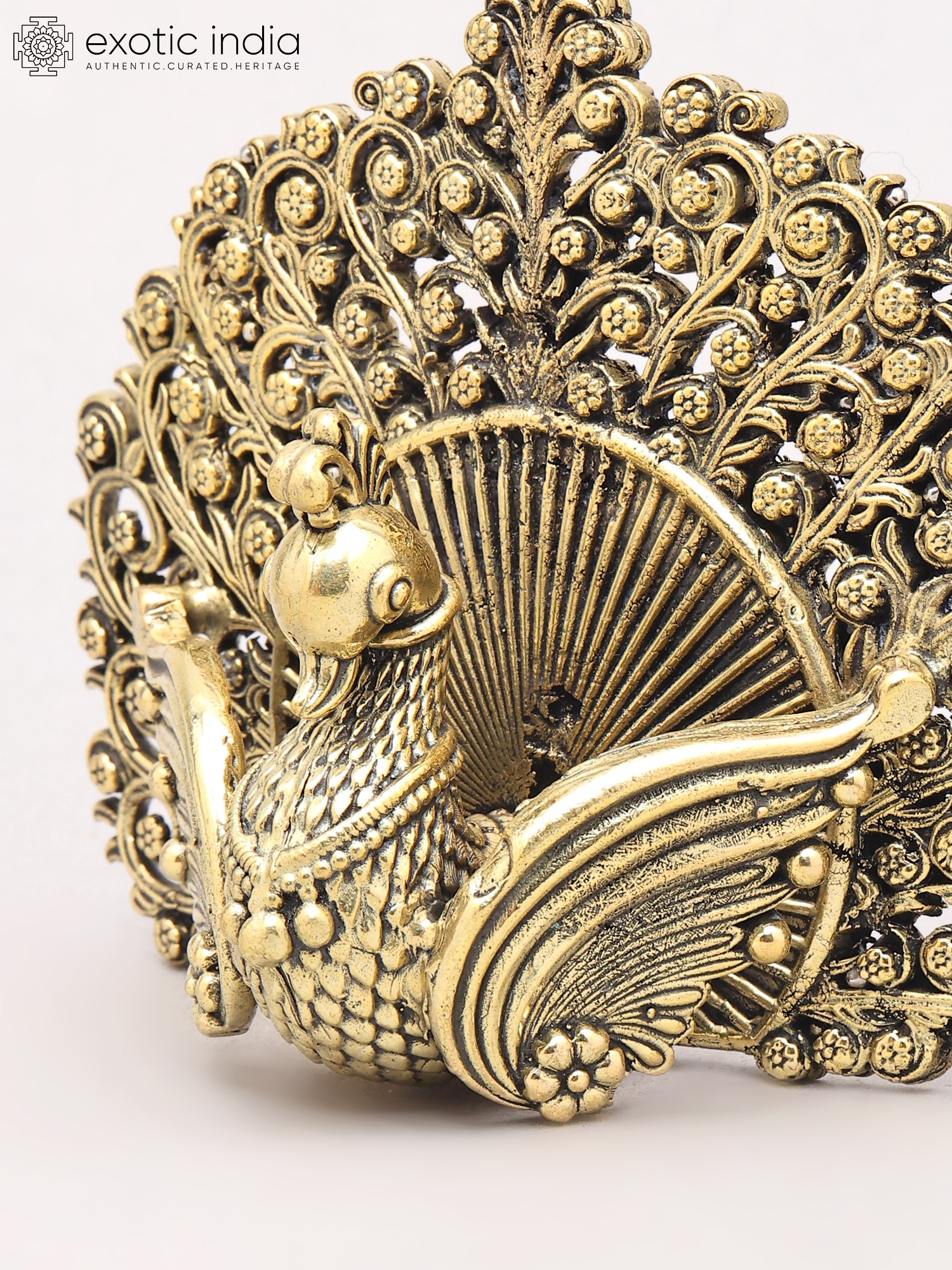 41" Peacock Urli with Lamp and Bells | Brass with Inlay Art