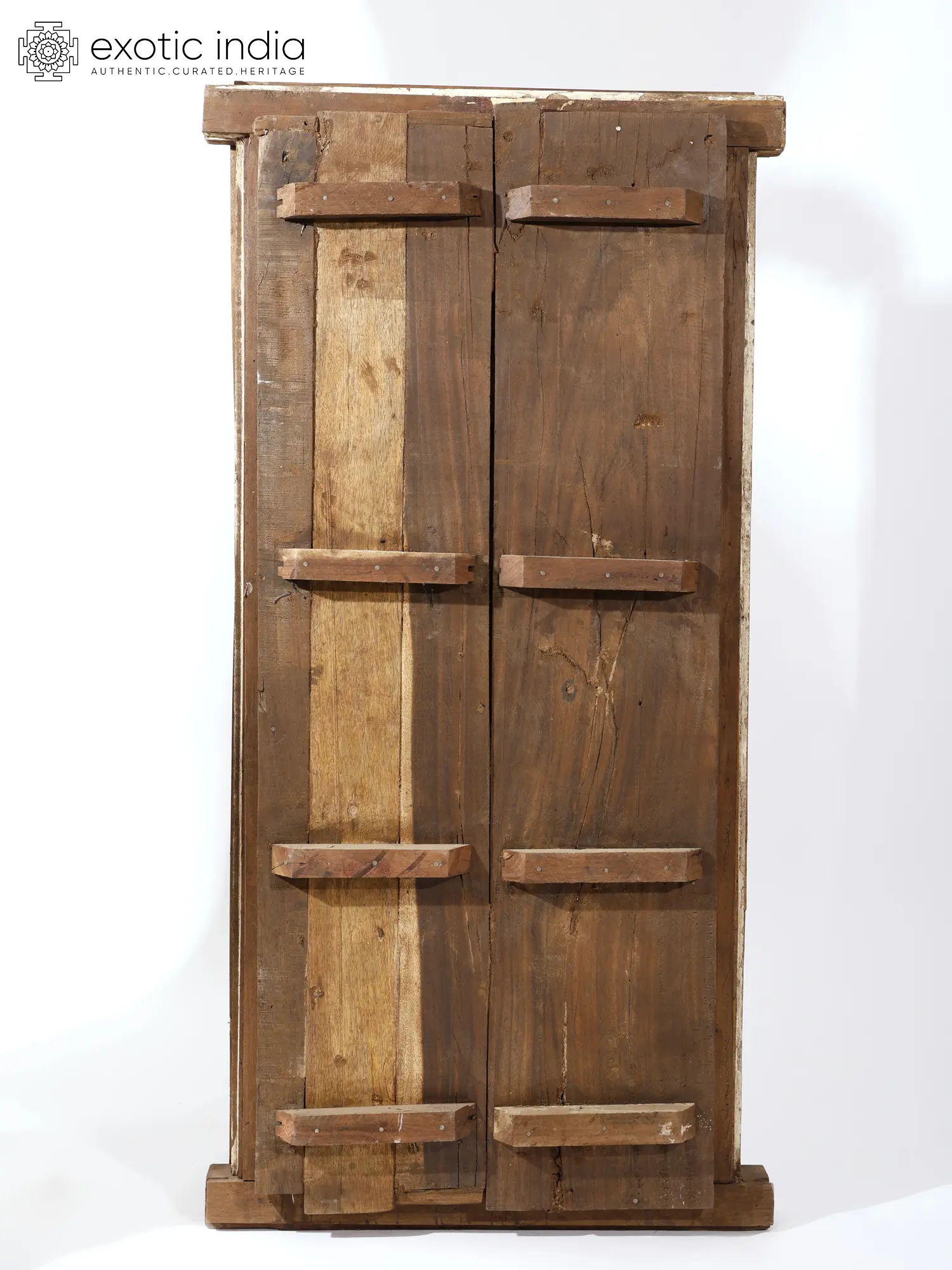 Designed from a blend of rom a blend of wood, iron, and brass, this vintage Indian door is a masterpiece that reflects the rich cultural heritage and artistic mastery of ancient times.