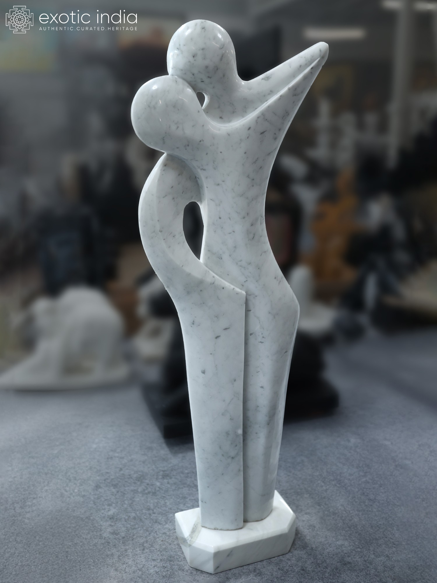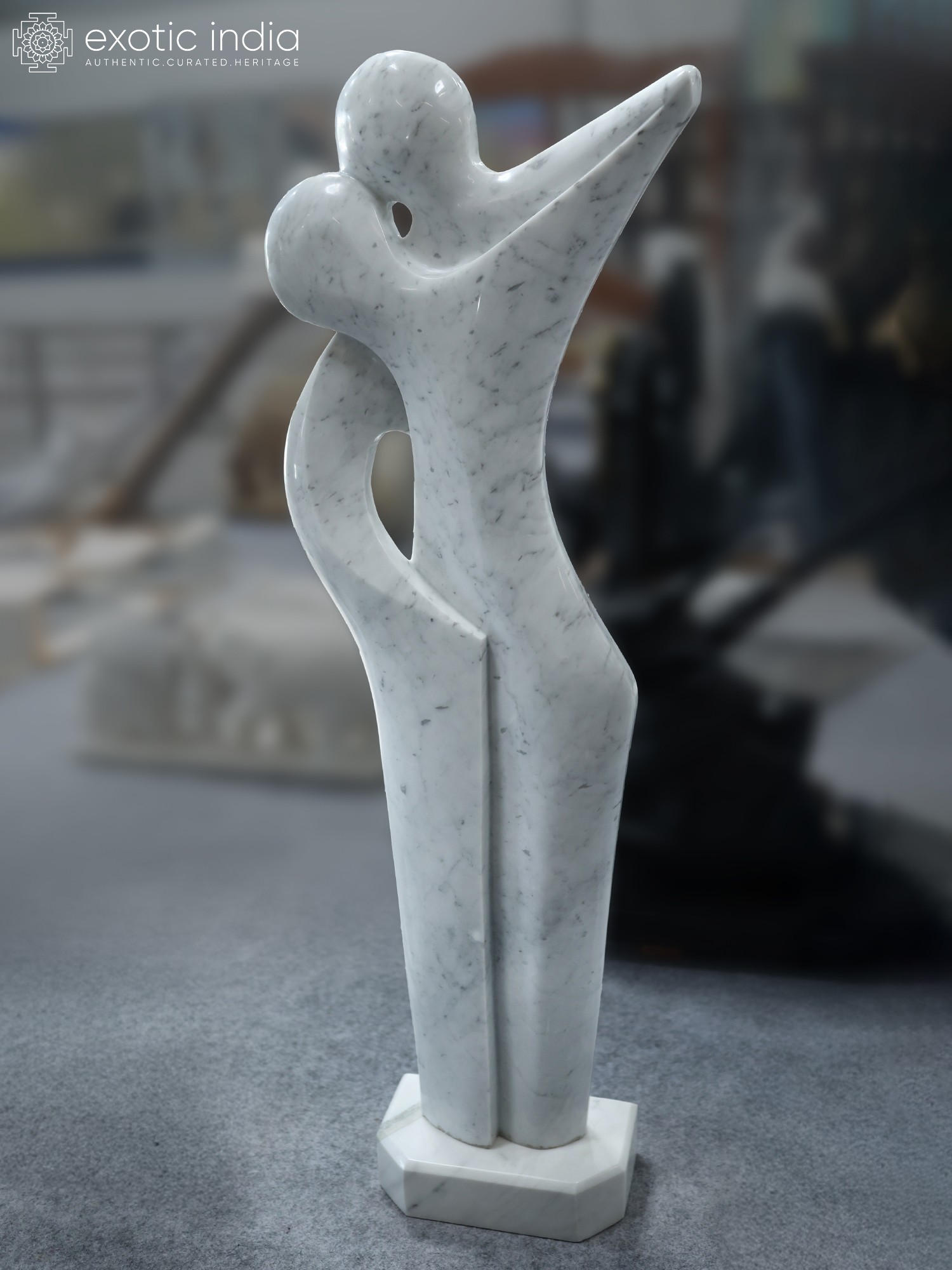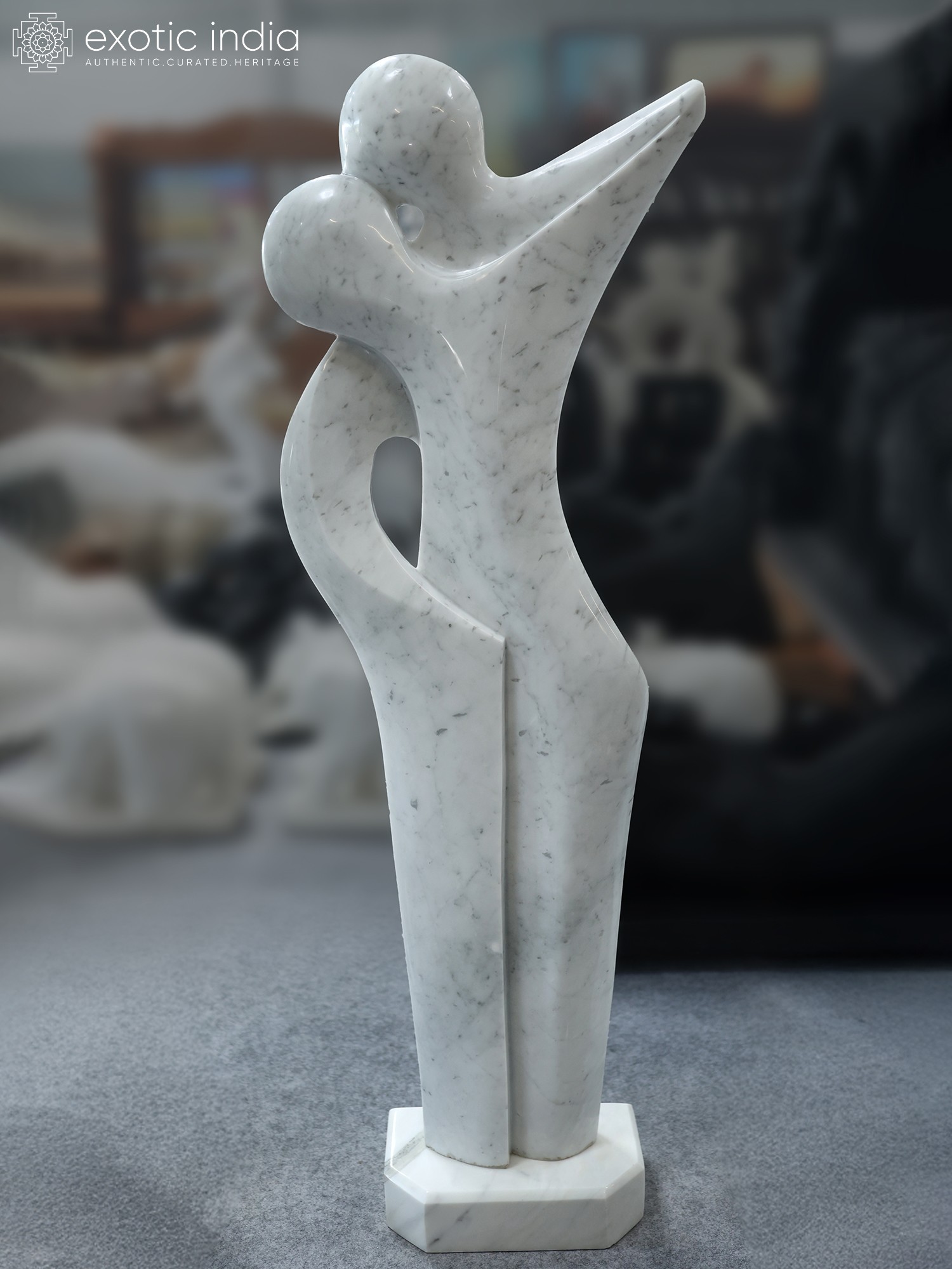 47" Happy Family | Abstract Modern Art | White Marble Sculpture