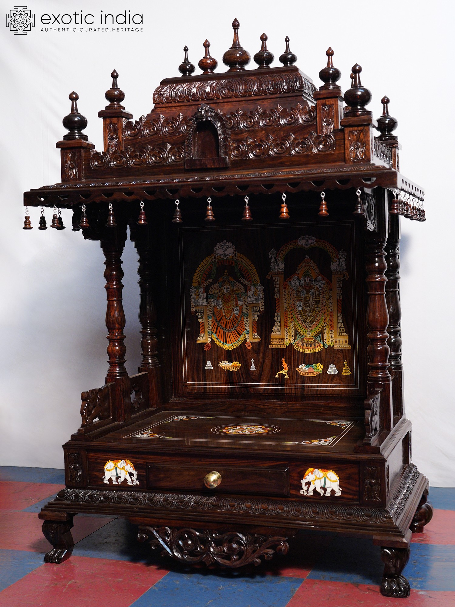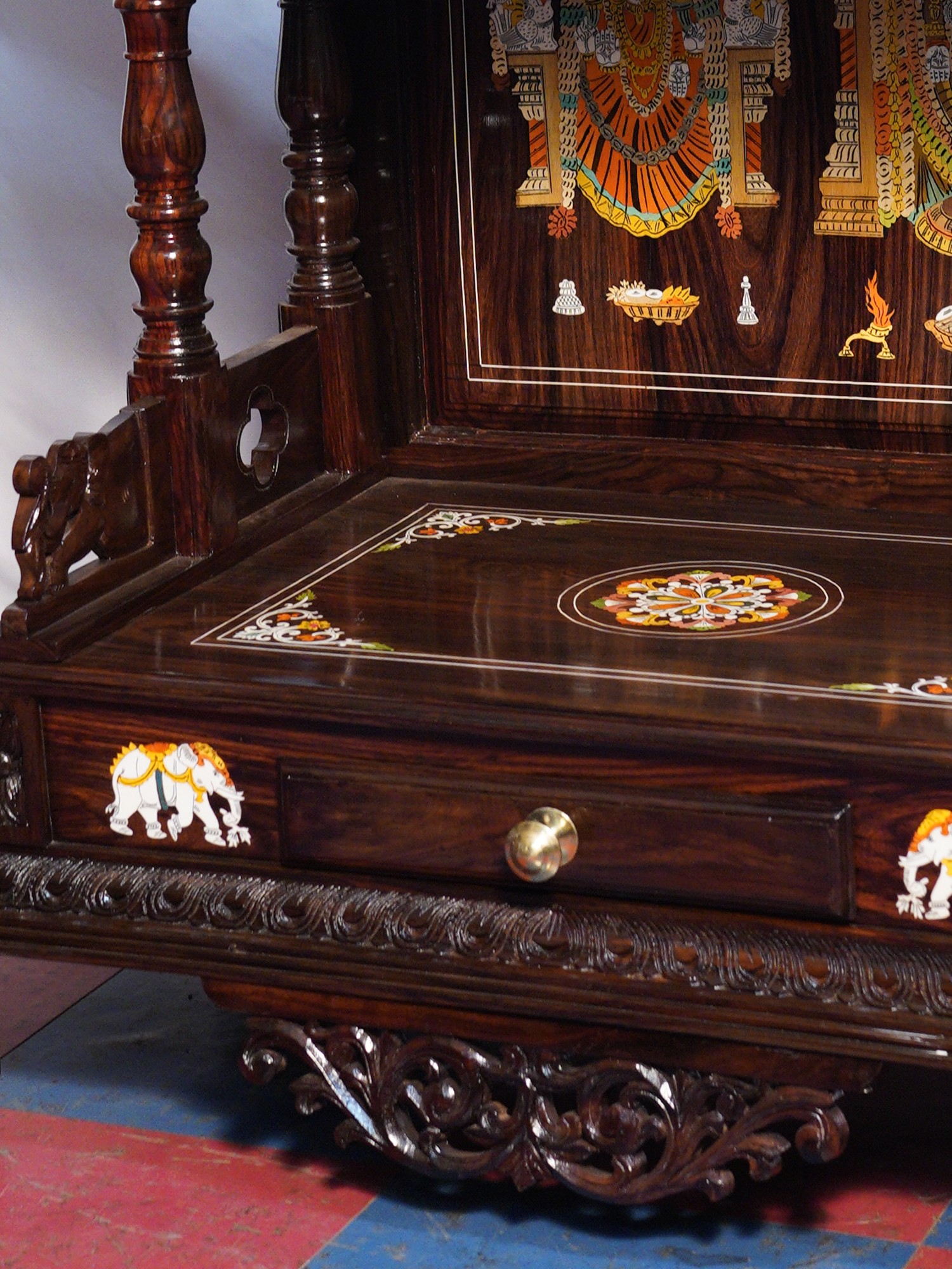 Built from robust rosewood, this temple is designed to be a lasting heirloom, passed down through generations. The quality of the materials and the meticulous construction ensure its durability and longevity. The rich wood grain adds character and depth, making each piece unique. Embrace the tradition of faith and artistry with this exceptional puja temple, a timeless addition to your home and spiritual life.