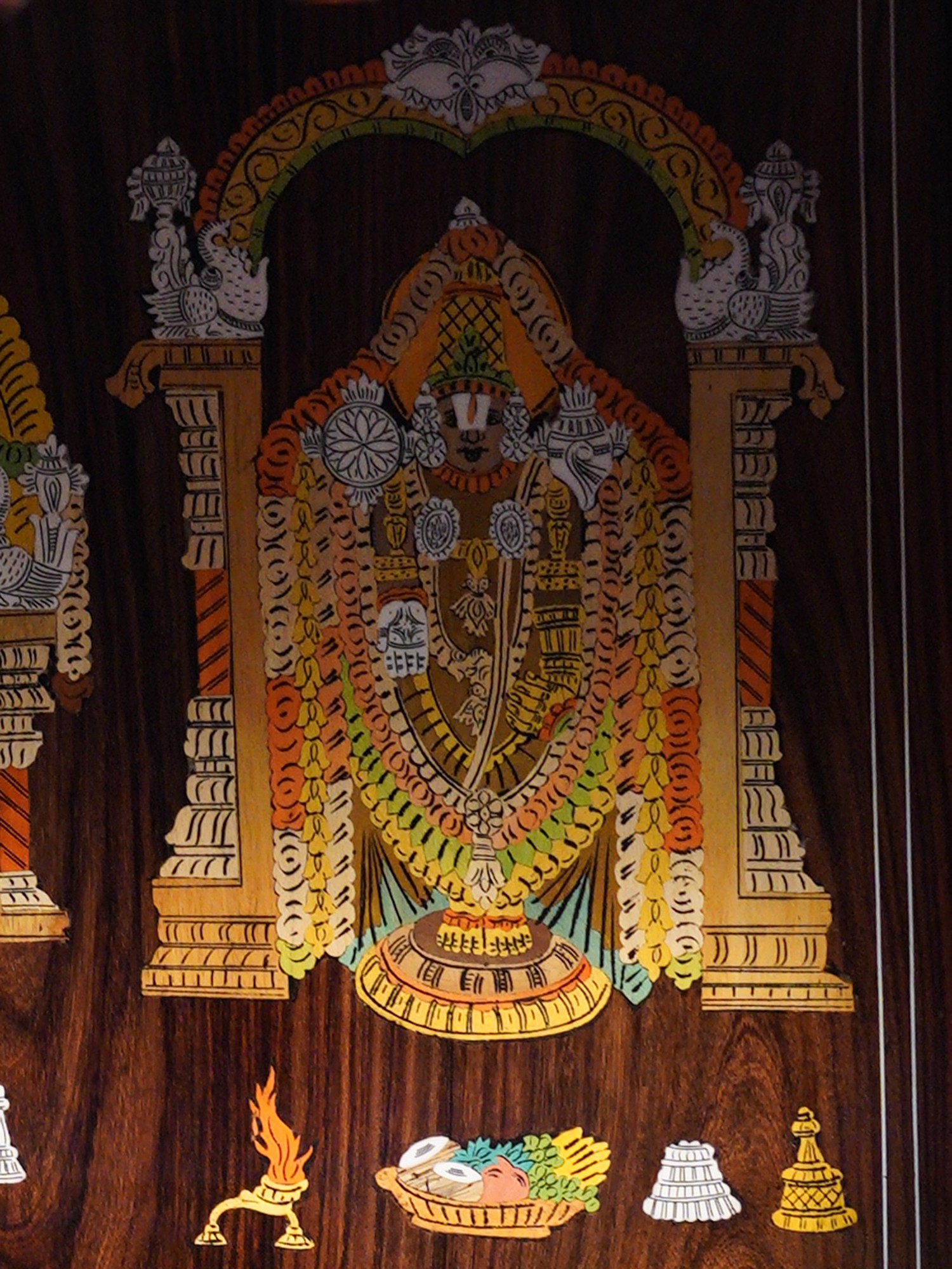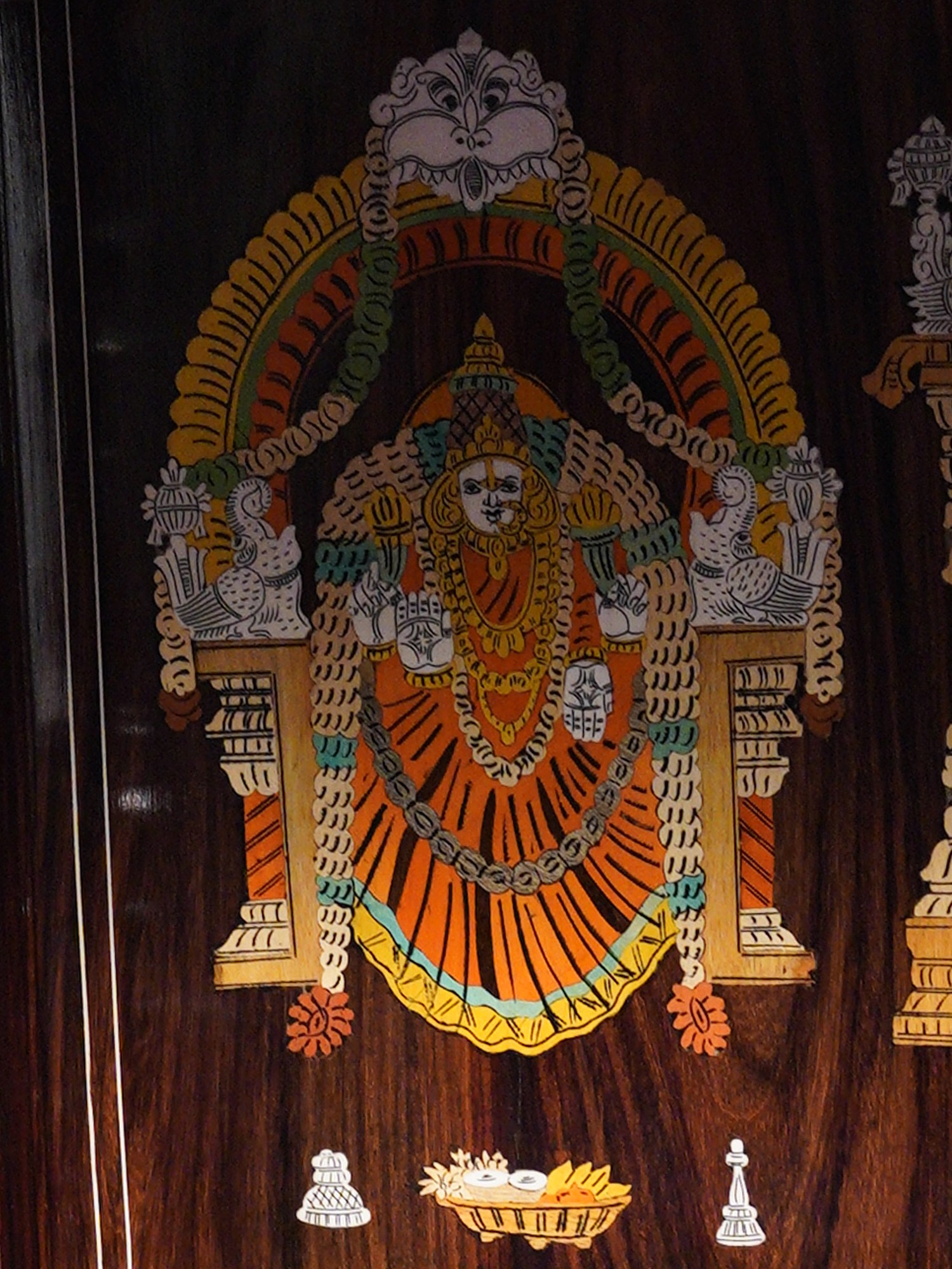 54" Designer Wood Carved Temple with Vaishnava Symbols