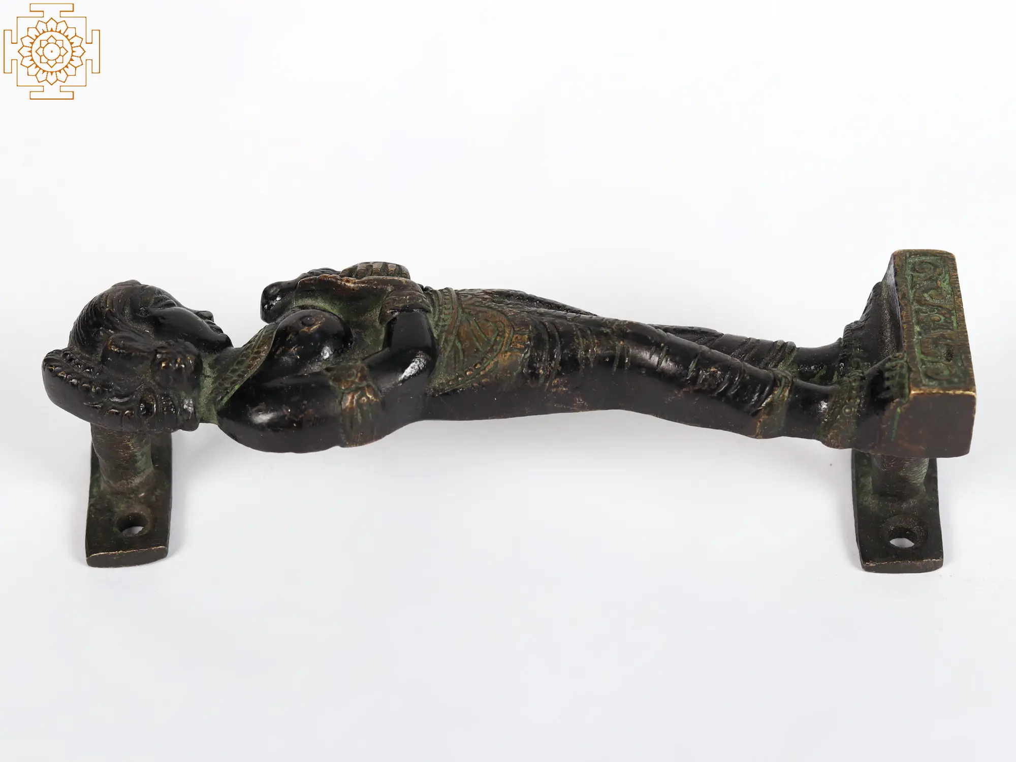 This Brass Khajuraho Parrot Lady Door Handle is a stunning testament to artistic craftsmanship and aesthetic appeal. Having brass as the base material, the piece has guaranteed longevity.  Its intricate design featuring a parrot and lady motif from the Khajuraho temples adds a touch of elegance and sophistication to any door.