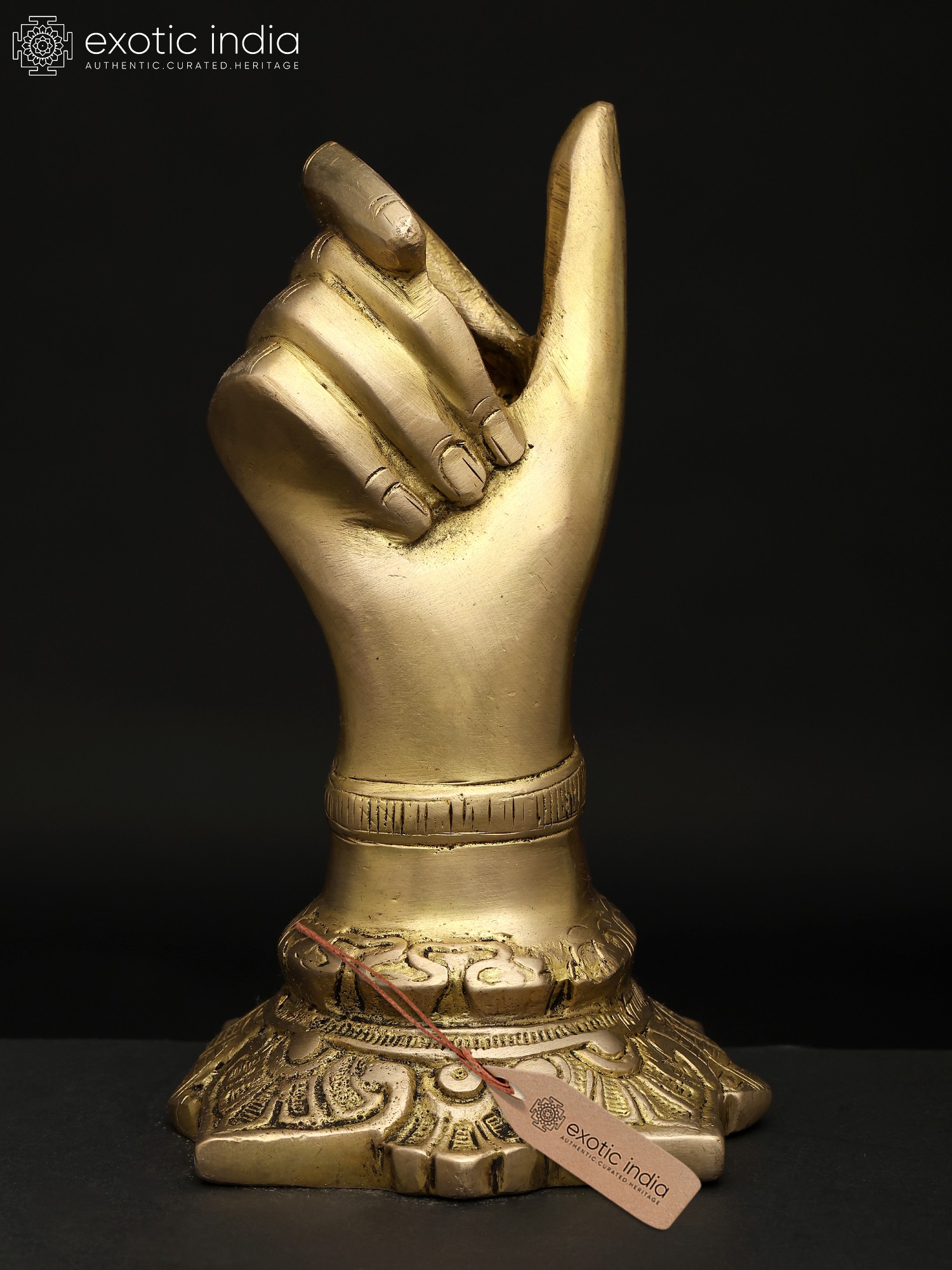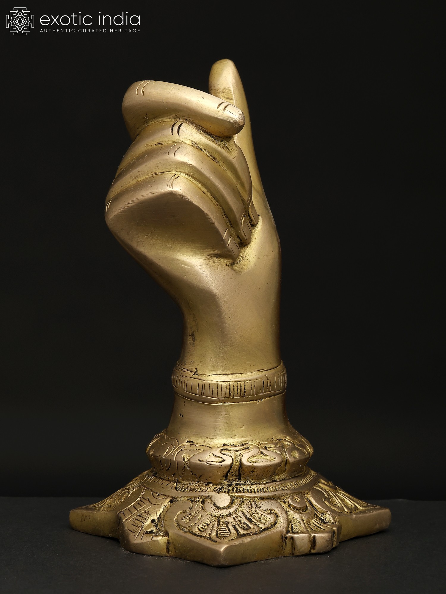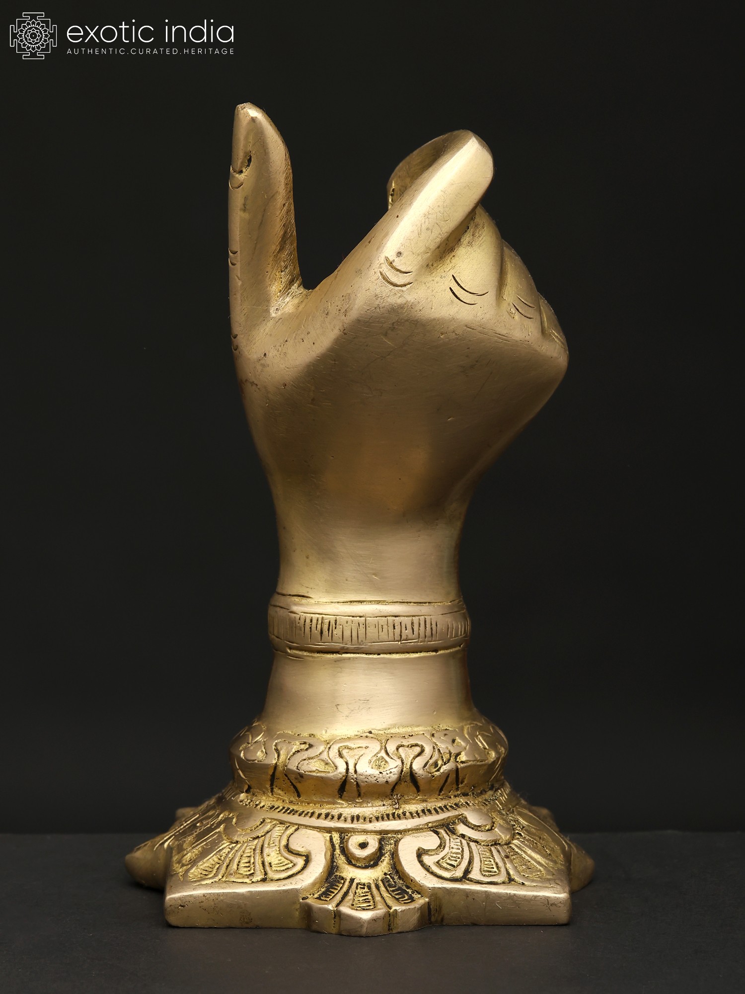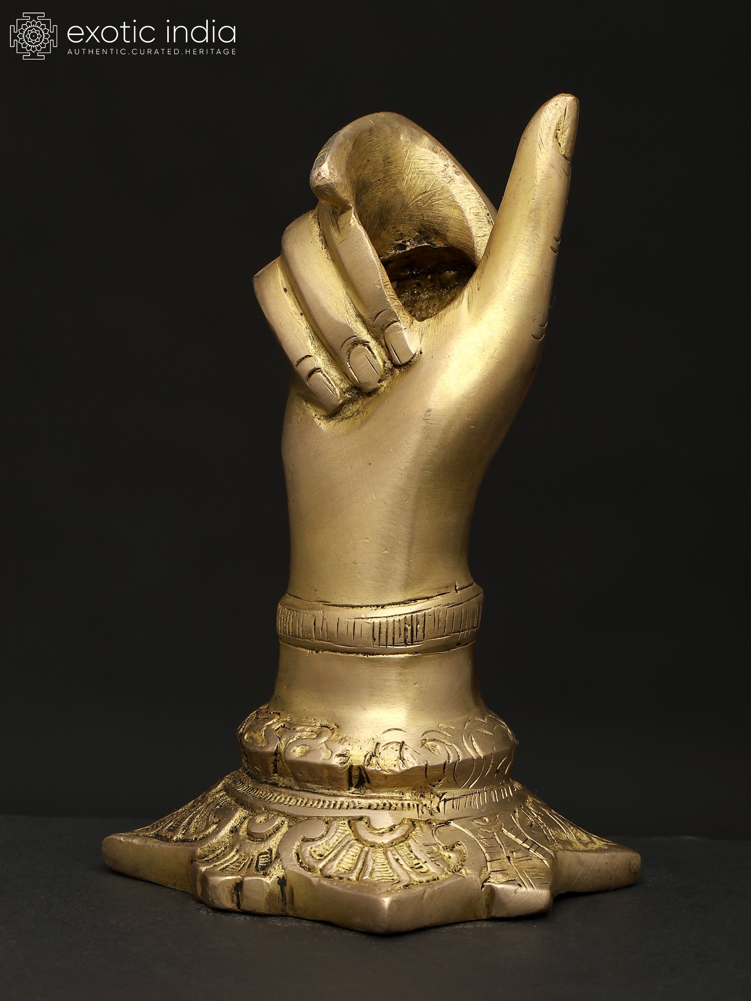Elevate your home décor with this exquisitely crafted 6-inch brass hand-shaped pen holder. More than just a functional item, it's a captivating piece of art that adds a touch of sophistication and intrigue to any table or desk. The intricate detailing and unique design make it a conversation starter, guaranteed to impress guests and enhance the ambiance of your space. This pen holder seamlessly blends functionality and aesthetics, making it a perfect addition to your home. The warm golden hue of the brass adds a touch of elegance, complementing various interior design styles.