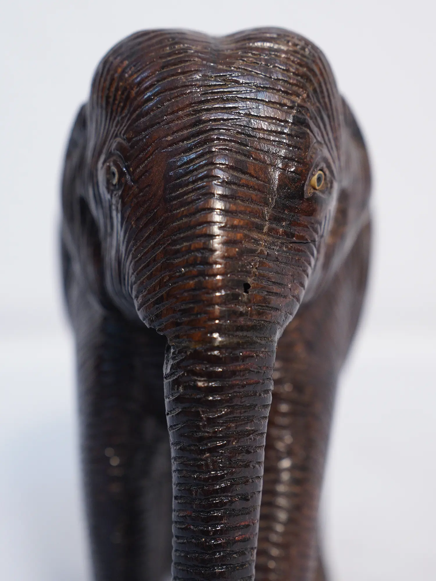 Bring the serene beauty of the natural world into your living space with this charming elephant figurine. A testament to skilled craftsmanship, this piece captures the majestic presence of an elephant in a poised, standing position. The rich, warm tones of the rosewood create a sense of earthiness and tranquility, making it a captivating addition to any home decor style.