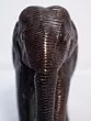 Every curve and contour of this piece has been meticulously hand-carved, showcasing the dedication and expertise of the artisan. Notice the fine lines etched across the elephant's body, mimicking the natural texture of its skin. The careful attention to detail extends to the delicate features of the face and the gentle curve of its trunk, creating a realistic and expressive representation of this magnificent creature. The sculpture's smooth finish highlights the natural grain of the rosewood, giving it a unique and organic feel.