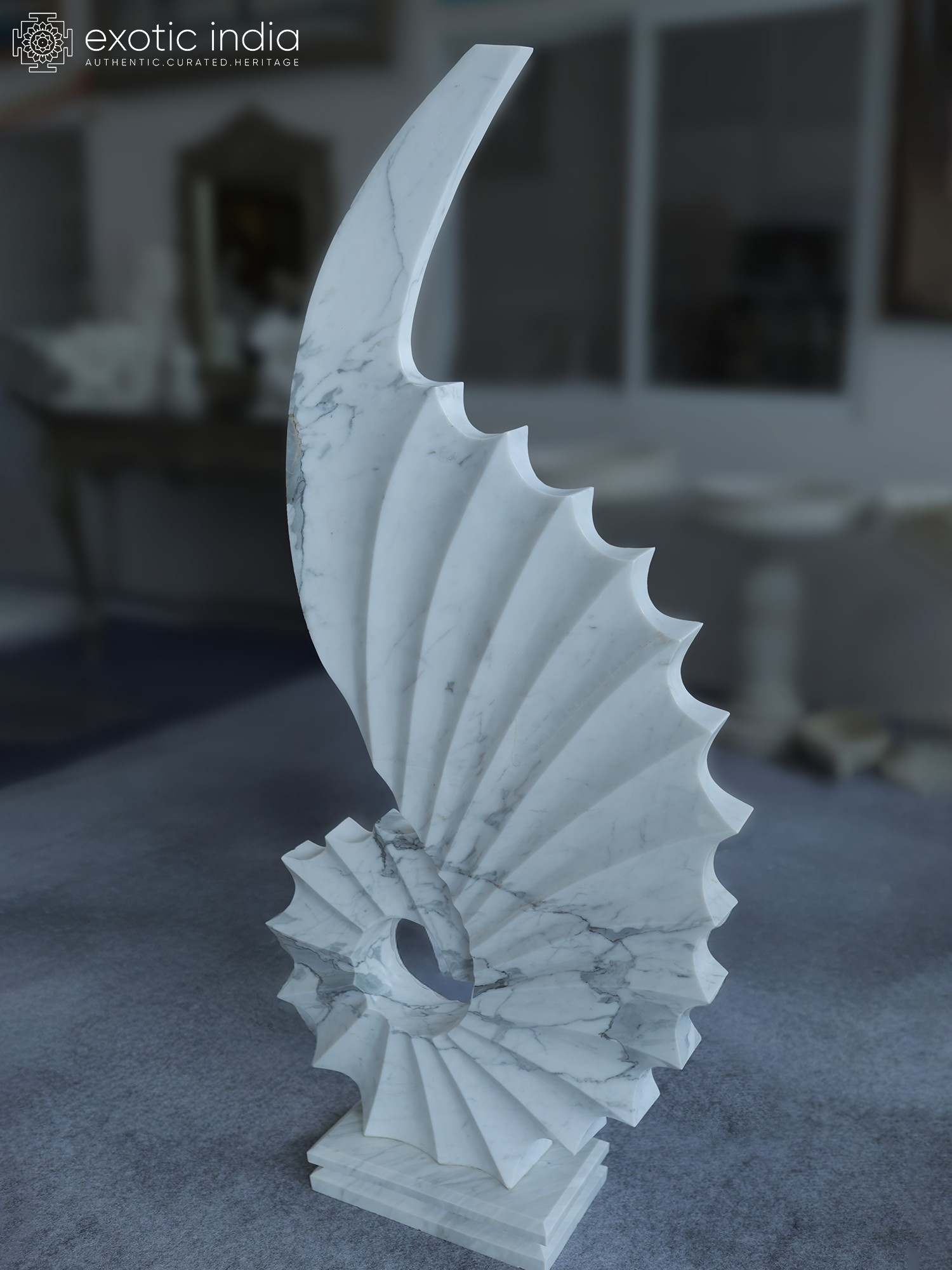 34" White Fossil | Abstract Modern Art | Marble Sculpture | Exquisite Indian Art