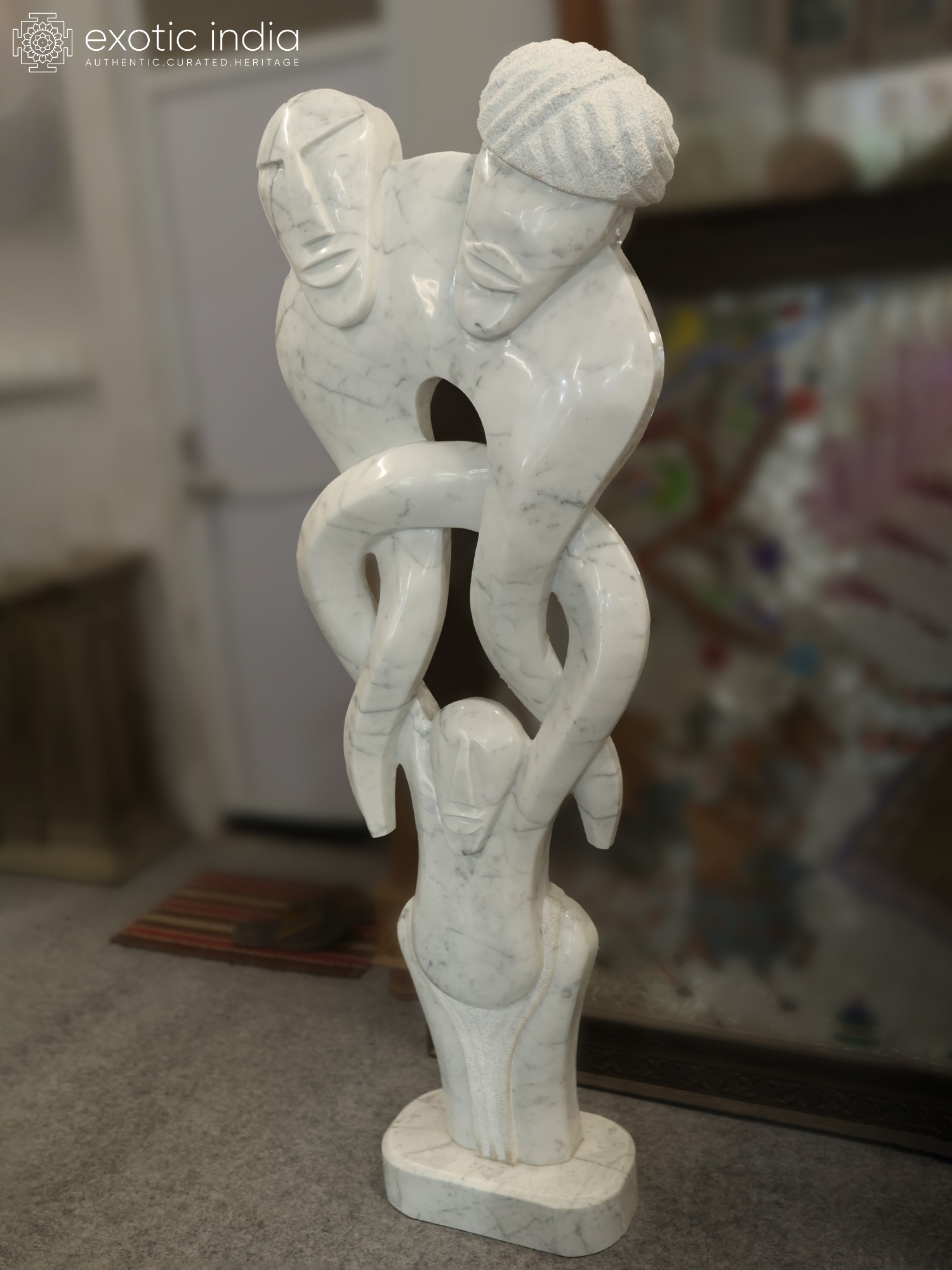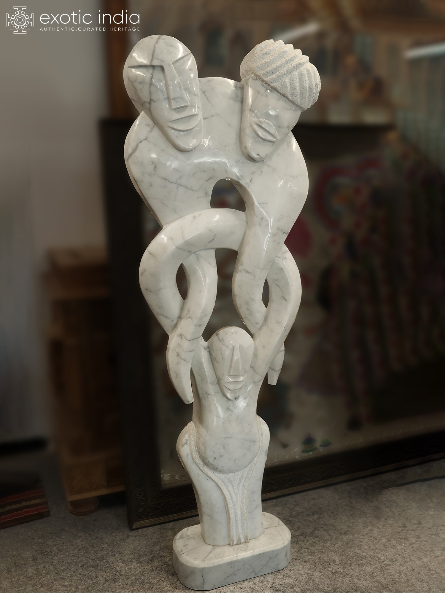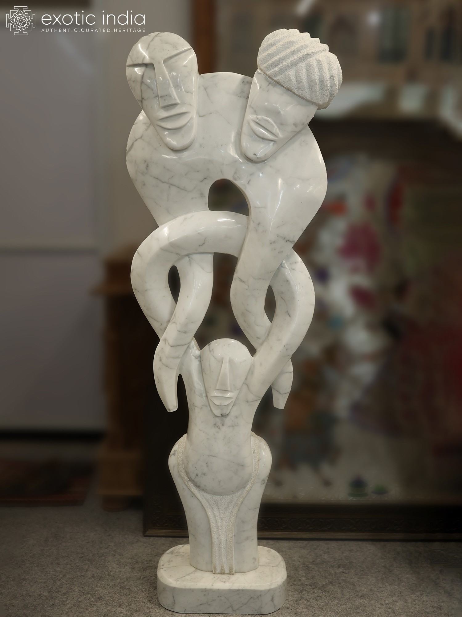 Bound by Family Spirit | Modern Art Statue | White Marble | Exquisite Indian Art