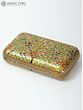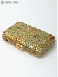 This exquisite 7-inch clutch is more than just an accessory; it's a wearable piece of art, handcrafted in the heart of Kashmir. Each clutch is lovingly hand-painted, showcasing a vibrant design of colorful birds nestled amongst flourishing foliage on a rich, golden background. The intricate detail and artistry are evident in every stroke, making this clutch a true treasure. The wood-based papier-mâché construction gives it a unique texture and lightweight feel, perfect for carrying your essentials in style. The gleaming gold chain adds a touch of elegance, completing the sophisticated look. This clutch is a perfect gift for yourself or a loved one.