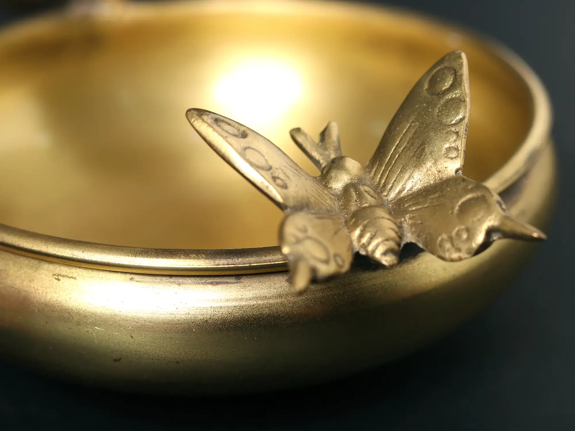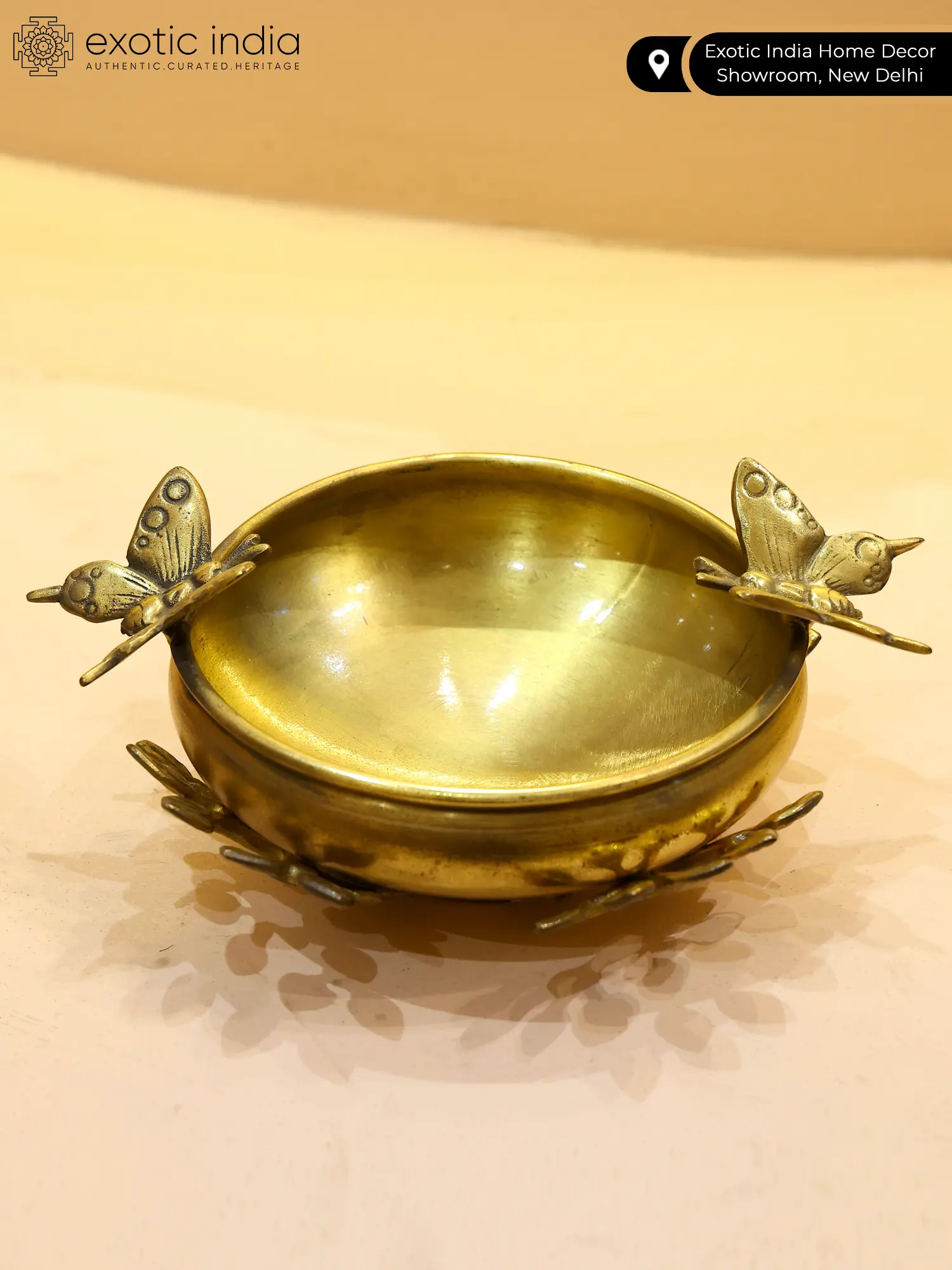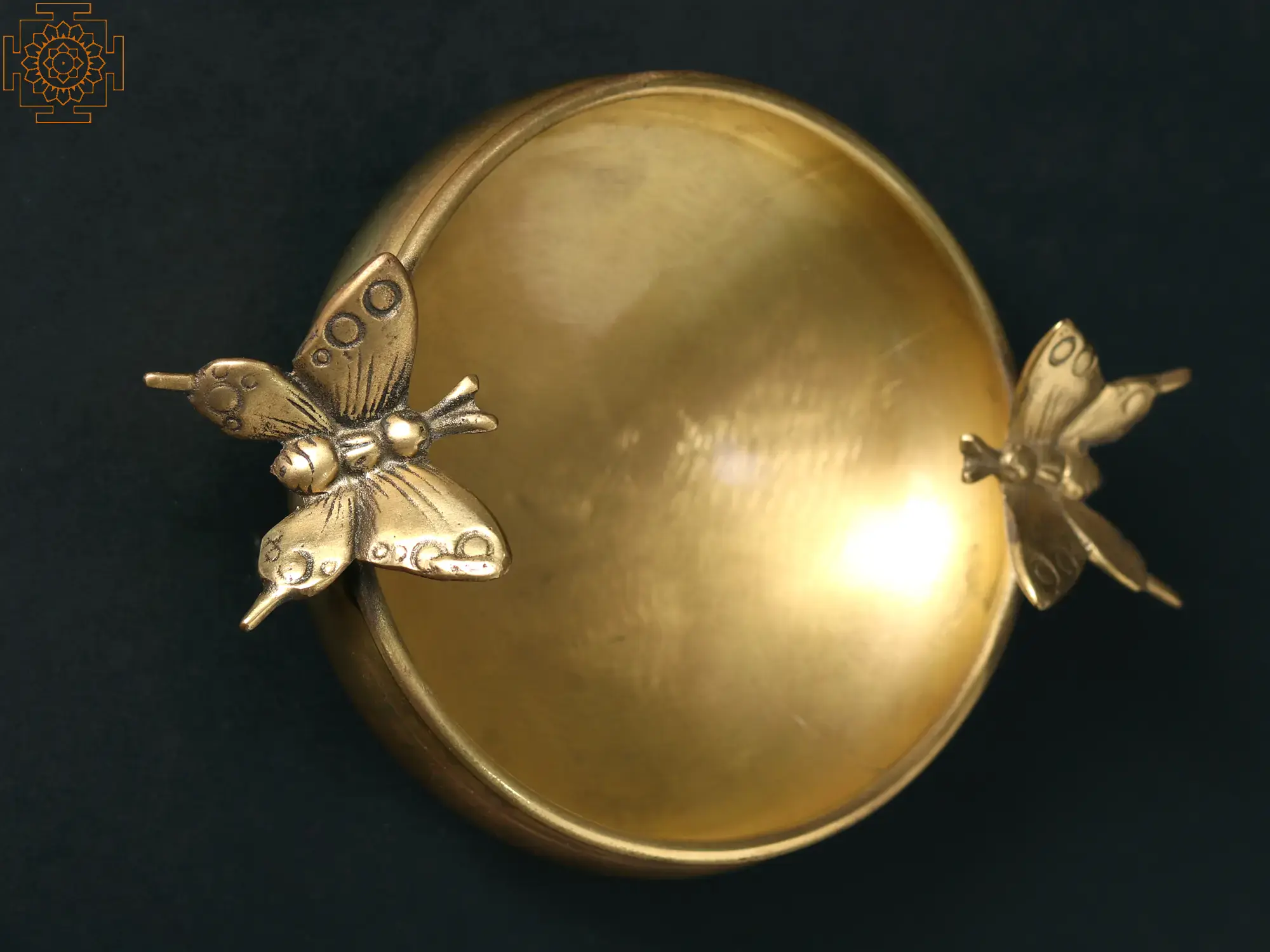 This brass Urli with a simple main body combines symbolic elegance with simplicity. The main body of the Urli features a simple and modest design that highlights the inherent beauty of brass. Two gorgeous butterflies sit delicately on the Urli's outer ring, symbolizing metamorphosis and freedom while also giving a whimsical touch. This lovely brass Urli set, with its basic design and butterfly embellishment, exudes a calm and attractive presence, inviting spectators to enjoy the harmonious marriage of nature and art.